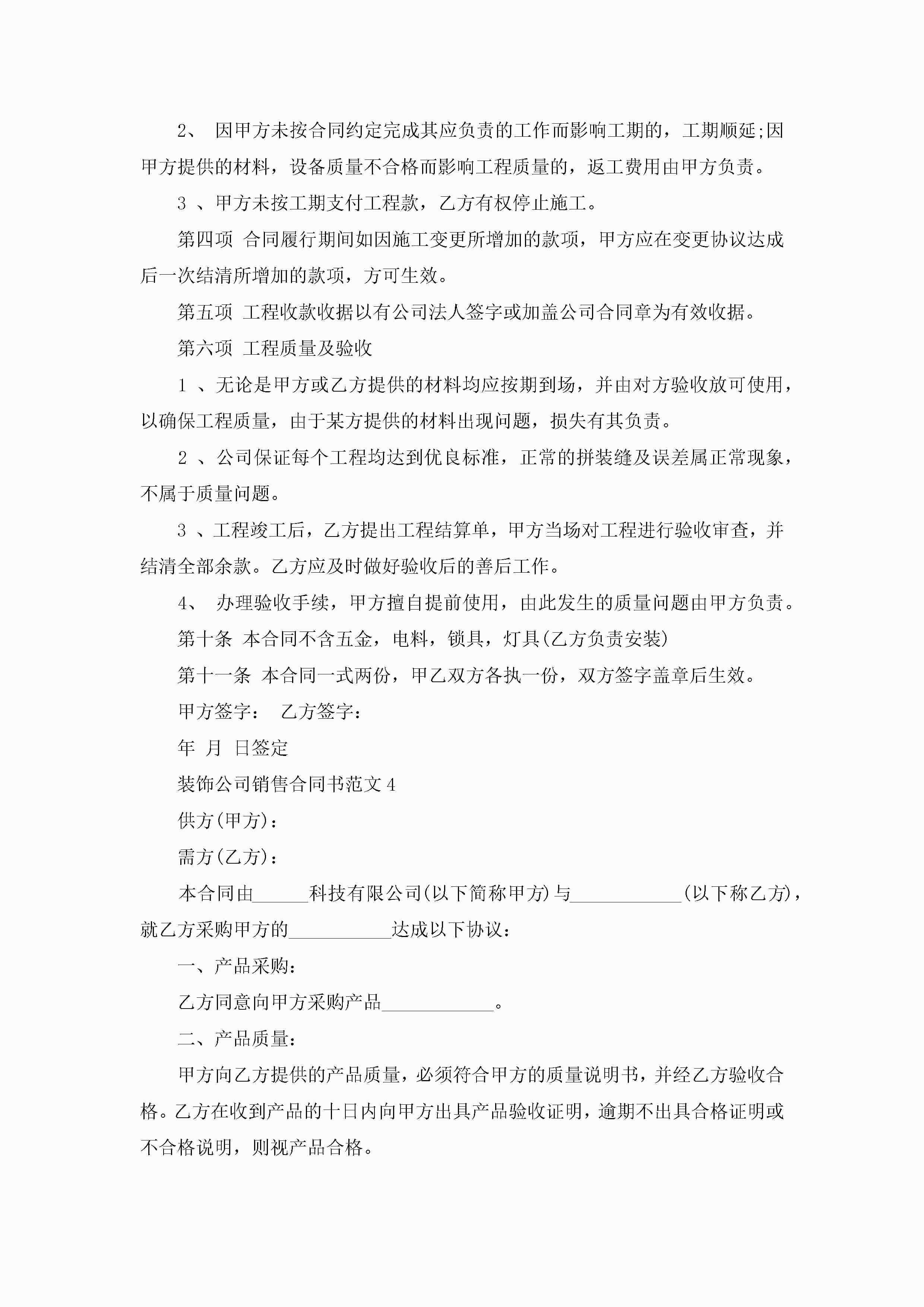 装饰公司销售合同书范文5篇jugei3月23日 01:39发布关注193 装饰公司销售合同书范文5篇此内容为付费资源,请付费后查看¥10.9 单篇文档限时特惠¥15个人会员开通企业会员开通立即下载无需登陆!可直接快捷下载单个模板付费资源© 版权声明THE ENDWord模板# 实用文档# 实用模板# 合同模板# 销售合同 如有问题,可点击最底部“联系我们”联系客服 分享QQ空间微博QQ好友海报分享复制链接收藏