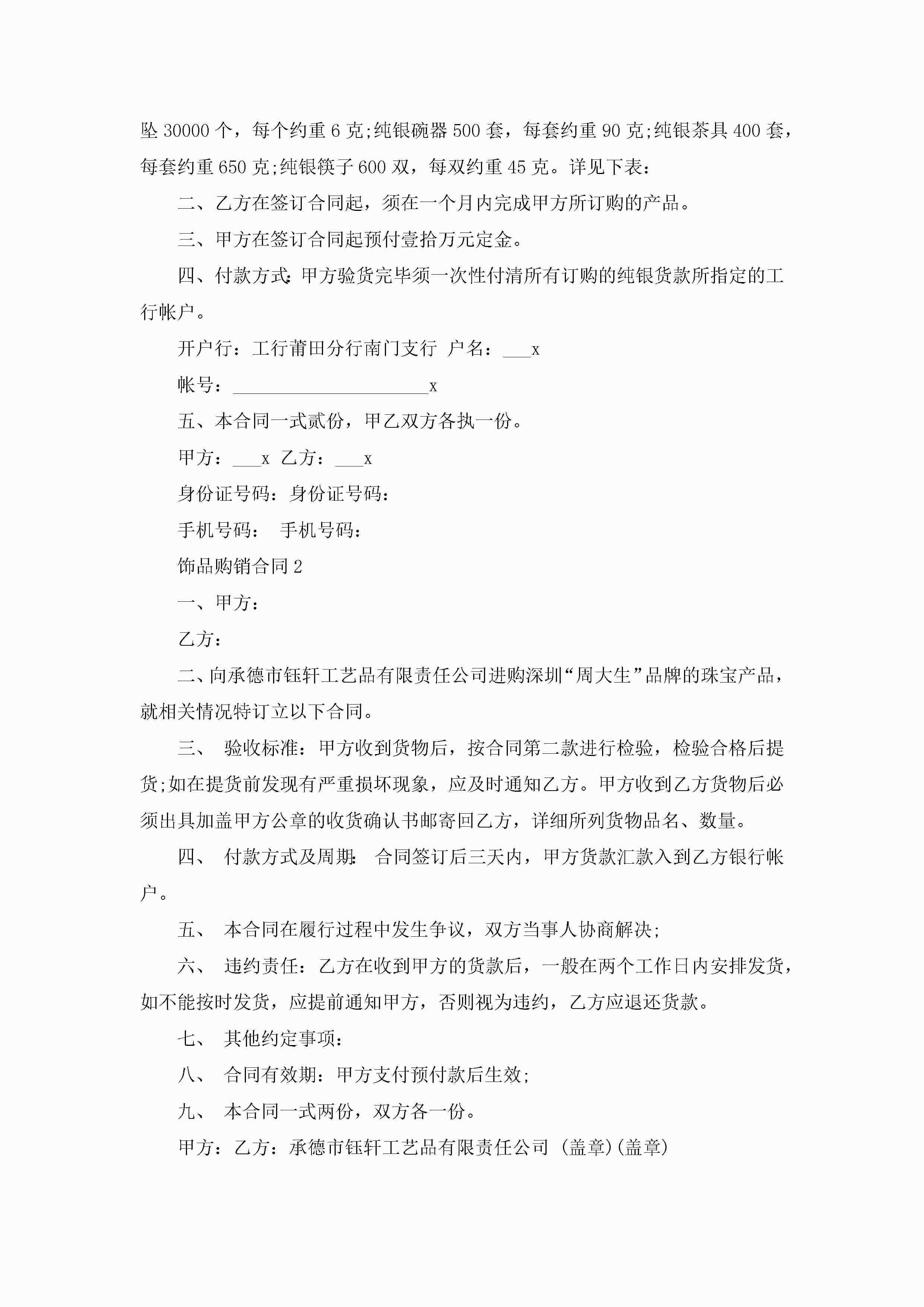 珠宝首饰销售合同书范文5篇jugei3月23日 01:39发布关注193 珠宝首饰销售合同书范文5篇此内容为付费资源,请付费后查看¥10.9 单篇文档限时特惠¥15个人会员开通企业会员开通立即下载无需登陆!可直接快捷下载单个模板付费资源© 版权声明THE ENDWord模板# 实用文档# 实用模板# 合同模板# 销售合同 如有问题,可点击最底部“联系我们”联系客服 分享QQ空间微博QQ好友海报分享复制链接收藏