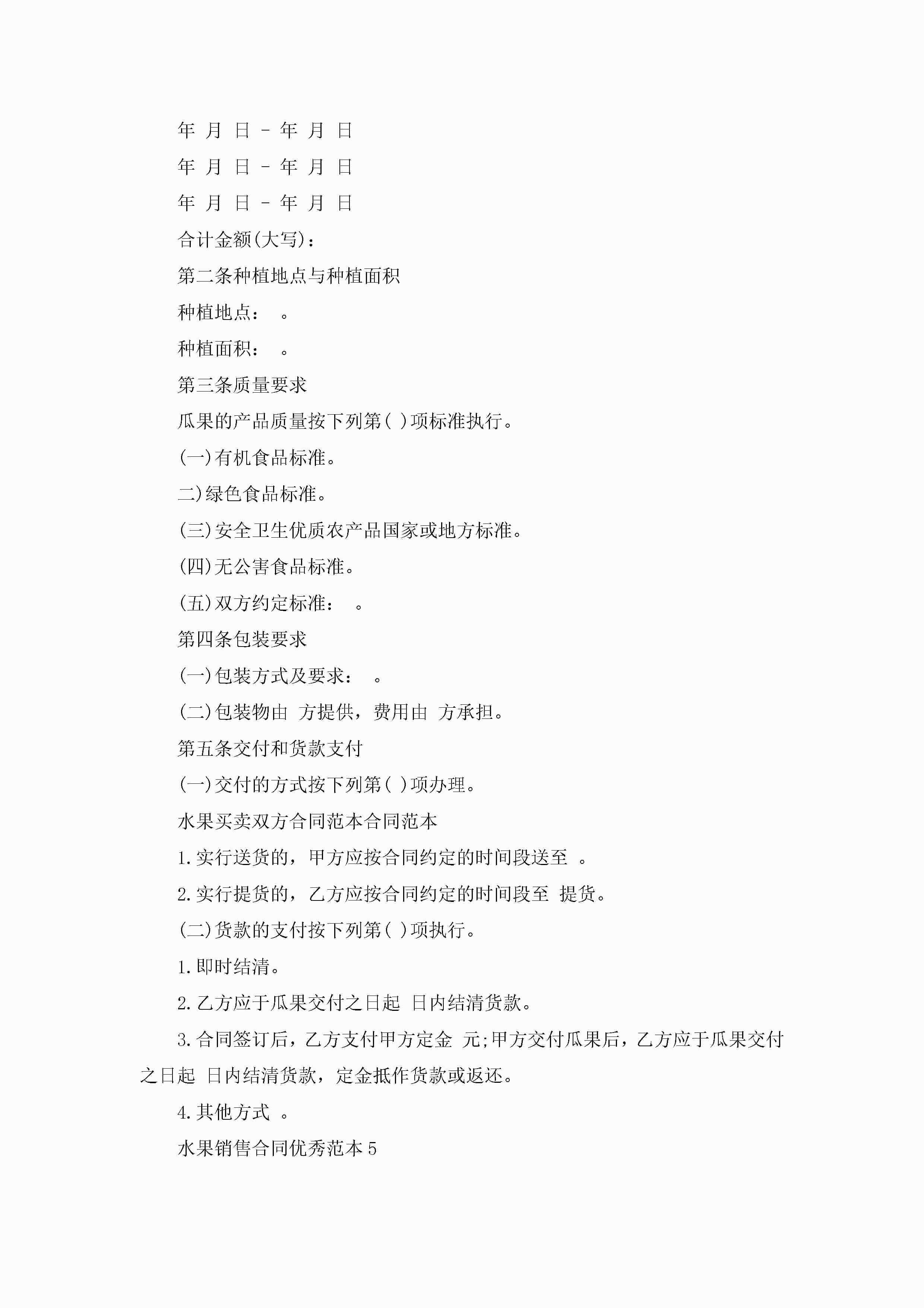 水果销售合同优秀范本5篇jugei3月23日 01:39发布关注451 水果销售合同优秀范本5篇此内容为付费资源,请付费后查看¥10.9 单篇文档限时特惠¥15个人会员开通企业会员开通立即下载无需登陆!可直接快捷下载单个模板付费资源© 版权声明THE ENDWord模板# 实用文档# 实用模板# 合同模板# 销售合同 如有问题,可点击最底部“联系我们”联系客服 分享QQ空间微博QQ好友海报分享复制链接收藏
