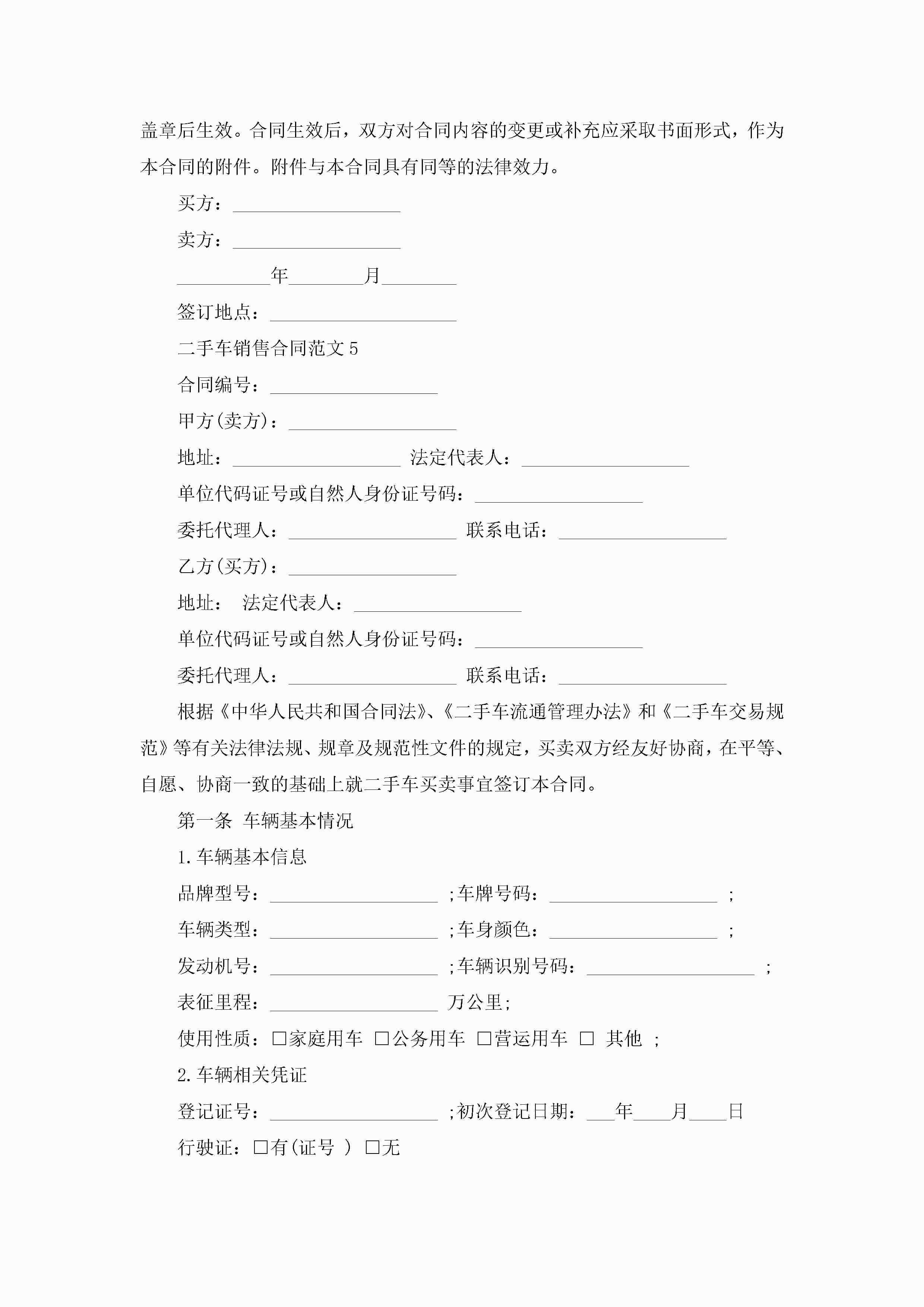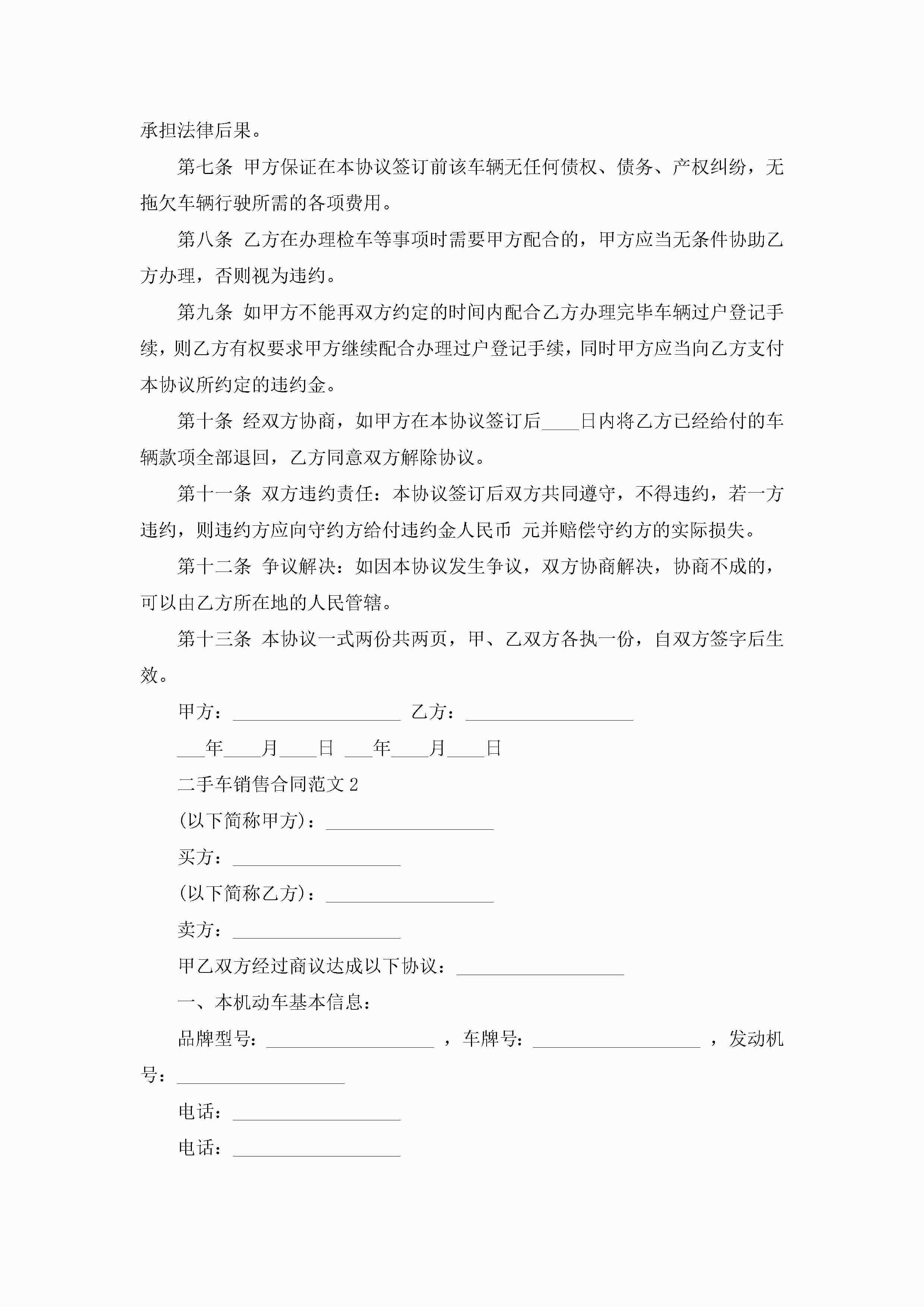 二手车销售合同范文5篇jugei3月23日 01:39发布关注243 二手车销售合同范文5篇此内容为付费资源,请付费后查看¥10.9 单篇文档限时特惠¥15个人会员开通企业会员开通立即下载无需登陆!可直接快捷下载单个模板付费资源© 版权声明THE ENDWord模板# 实用文档# 实用模板# 合同模板# 销售合同 如有问题,可点击最底部“联系我们”联系客服 分享QQ空间微博QQ好友海报分享复制链接收藏