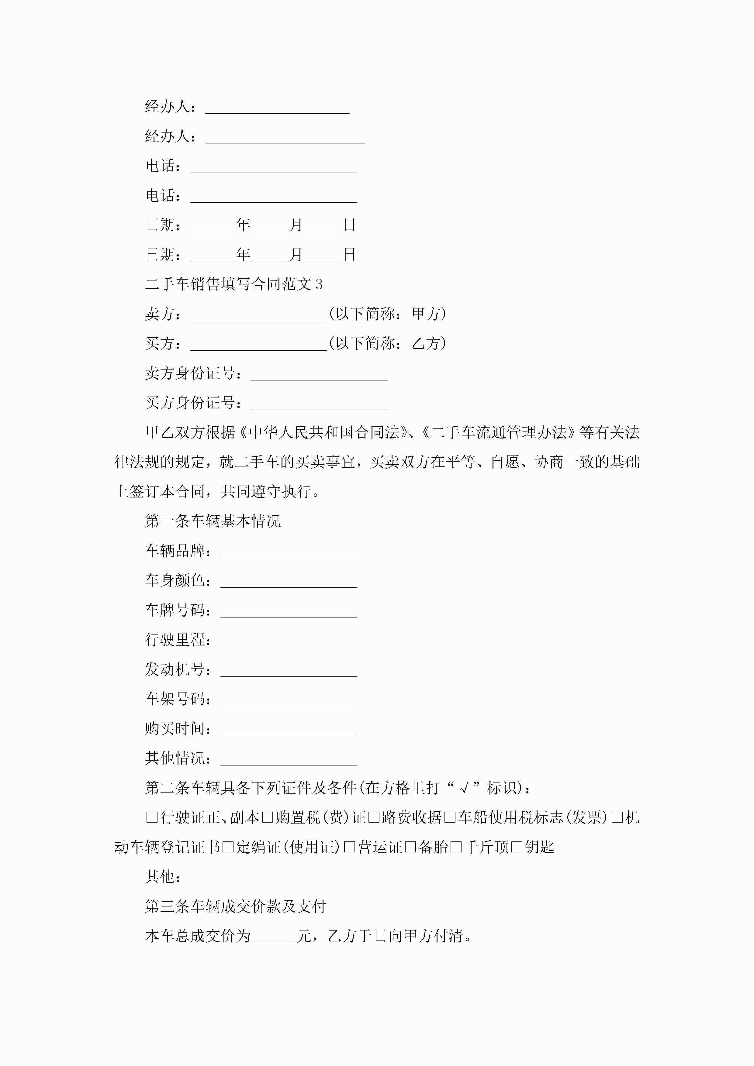 二手车销售填写合同范文5篇jugei3月23日 01:39发布关注193 二手车销售填写合同范文5篇此内容为付费资源,请付费后查看¥10.9 单篇文档限时特惠¥15个人会员开通企业会员开通立即下载无需登陆!可直接快捷下载单个模板付费资源© 版权声明THE ENDWord模板# 实用文档# 实用模板# 合同模板# 销售合同 如有问题,可点击最底部“联系我们”联系客服 分享QQ空间微博QQ好友海报分享复制链接收藏