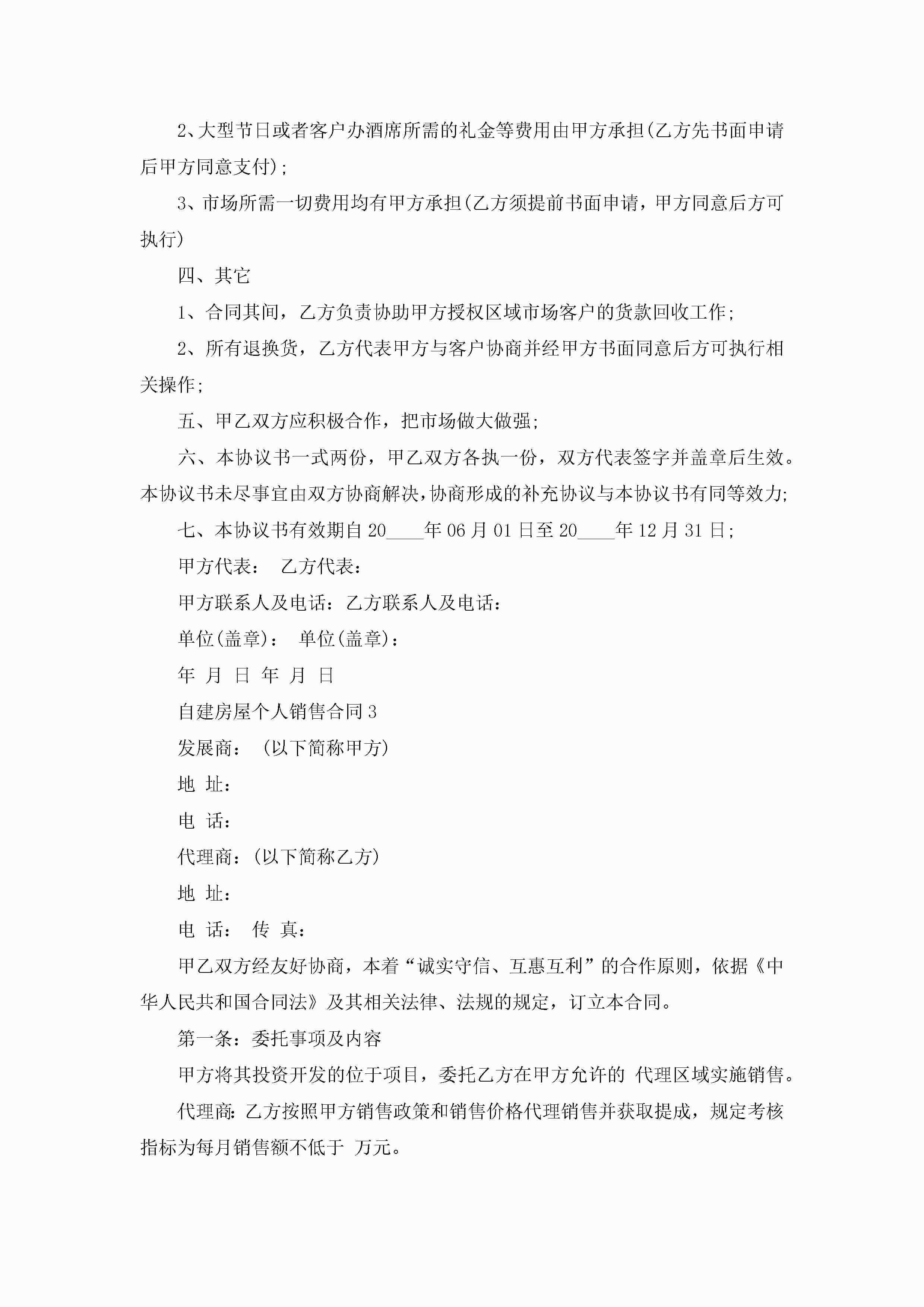 自建房屋个人销售合同5篇jugei3月23日 01:39发布关注339 自建房屋个人销售合同5篇此内容为付费资源,请付费后查看¥10.9 单篇文档限时特惠¥15个人会员开通企业会员开通立即下载无需登陆!可直接快捷下载单个模板付费资源© 版权声明THE ENDWord模板# 实用文档# 实用模板# 合同模板# 销售合同 如有问题,可点击最底部“联系我们”联系客服 分享QQ空间微博QQ好友海报分享复制链接收藏