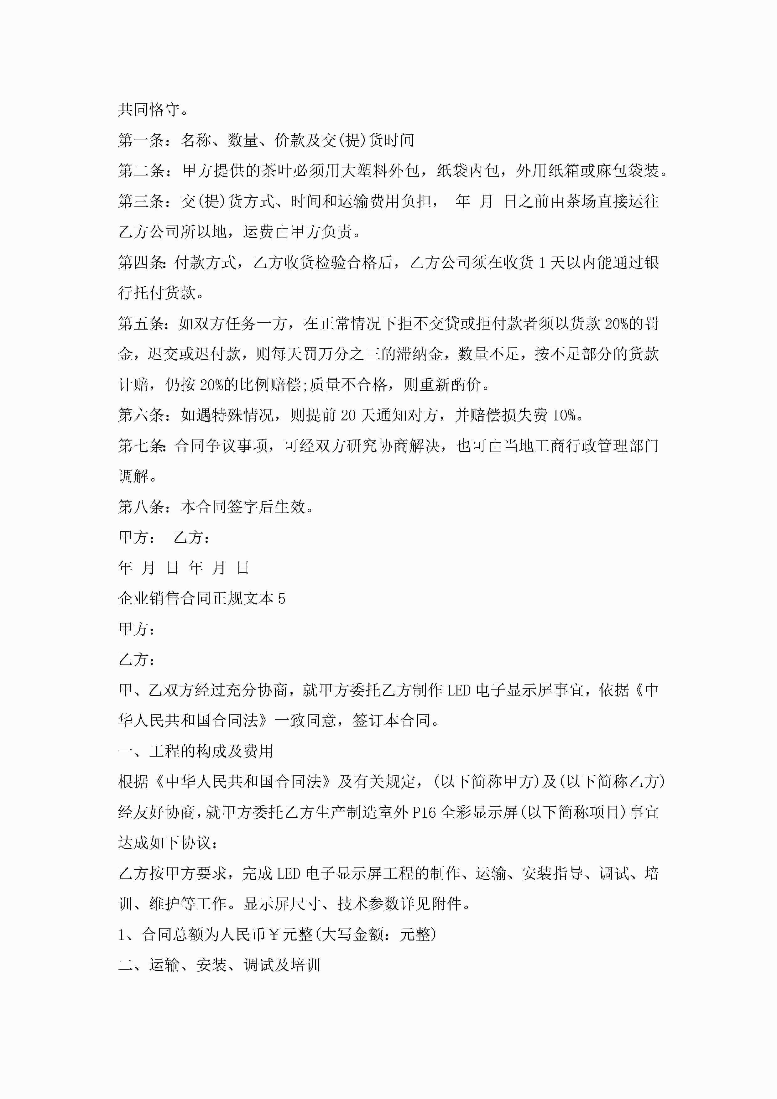 企业销售合同正规文本5篇jugei3月23日 01:39发布关注193 企业销售合同正规文本5篇此内容为付费资源,请付费后查看¥10.9 单篇文档限时特惠¥15个人会员开通企业会员开通立即下载无需登陆!可直接快捷下载单个模板付费资源© 版权声明THE ENDWord模板# 实用文档# 实用模板# 合同模板# 销售合同 如有问题,可点击最底部“联系我们”联系客服 分享QQ空间微博QQ好友海报分享复制链接收藏