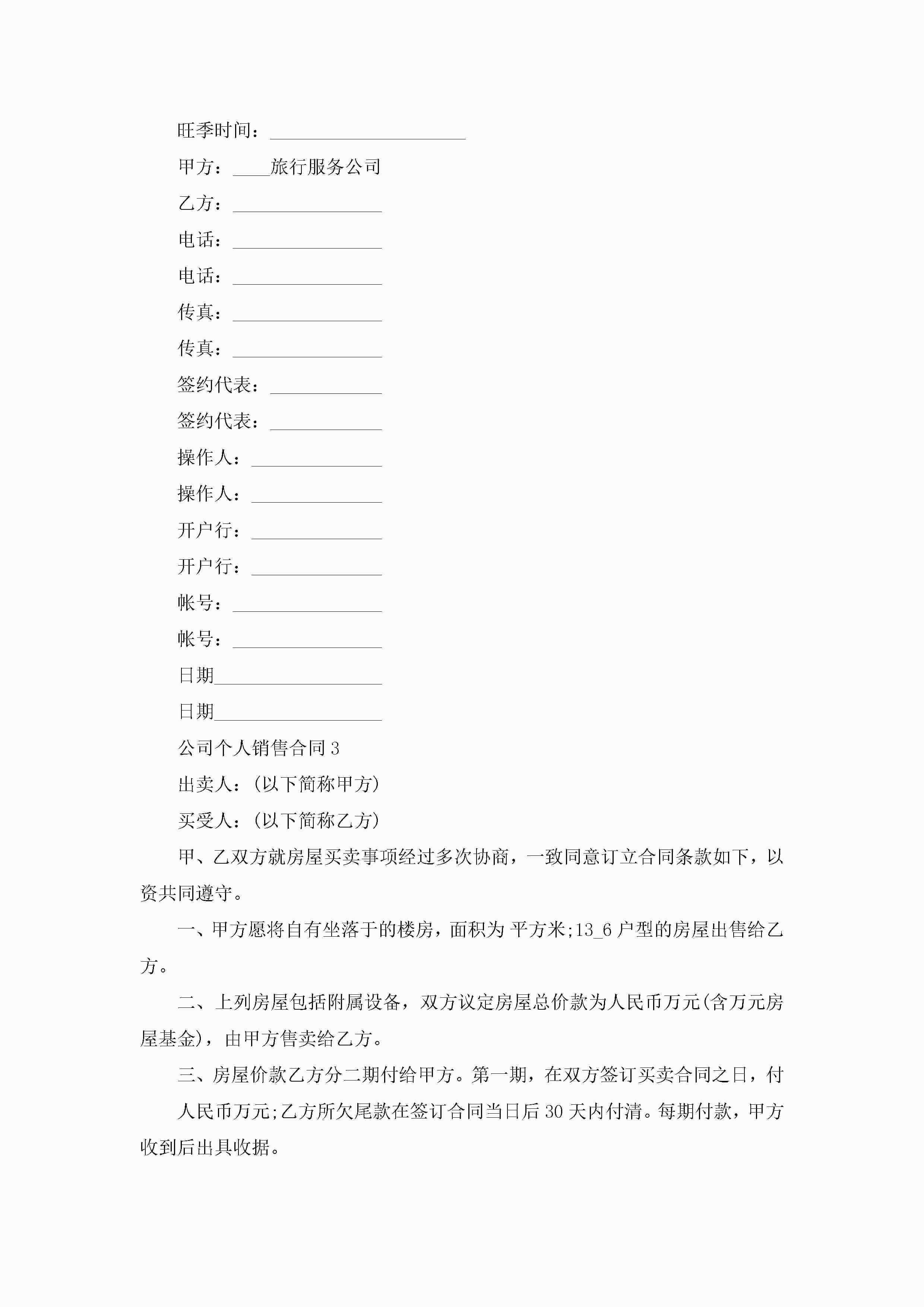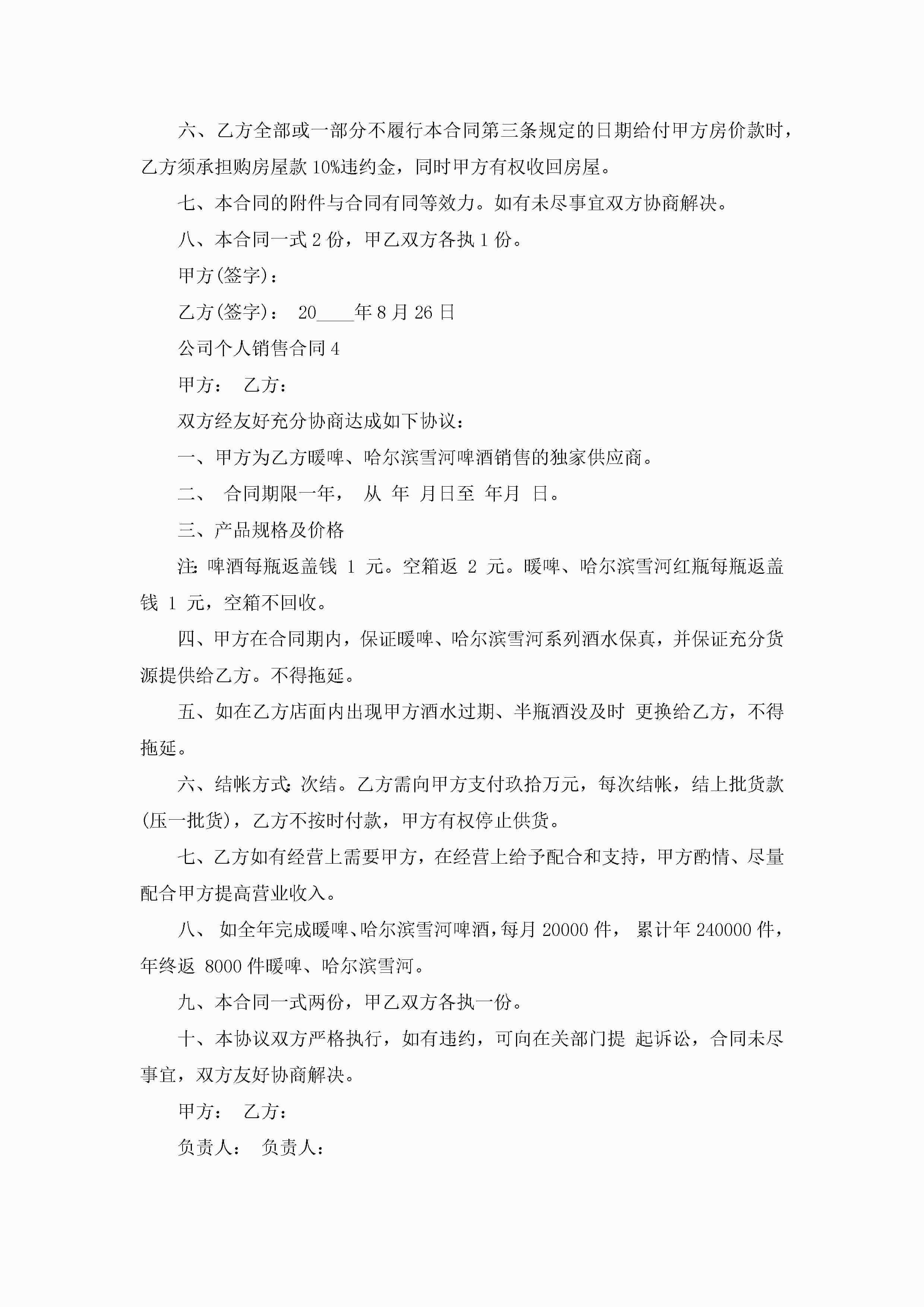 公司个人销售合同5篇jugei3月23日 01:39发布关注254 公司个人销售合同5篇此内容为付费资源,请付费后查看¥10.9 单篇文档限时特惠¥15个人会员开通企业会员开通立即下载无需登陆!可直接快捷下载单个模板付费资源© 版权声明THE ENDWord模板# 实用文档# 实用模板# 合同模板# 销售合同 如有问题,可点击最底部“联系我们”联系客服 分享QQ空间微博QQ好友海报分享复制链接收藏