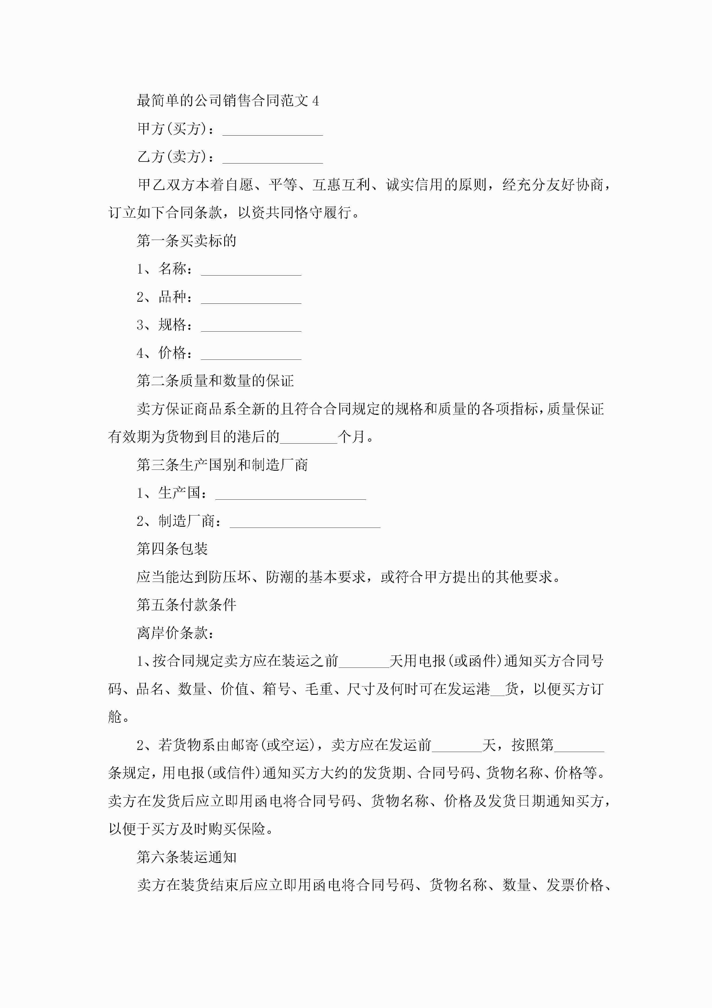 最简单的公司销售合同范文5篇jugei3月23日 01:39发布关注194 最简单的公司销售合同范文5篇此内容为付费资源,请付费后查看¥10.9 单篇文档限时特惠¥15个人会员开通企业会员开通立即下载无需登陆!可直接快捷下载单个模板付费资源© 版权声明THE ENDWord模板# 实用文档# 实用模板# 合同模板# 销售合同 如有问题,可点击最底部“联系我们”联系客服 分享QQ空间微博QQ好友海报分享复制链接收藏