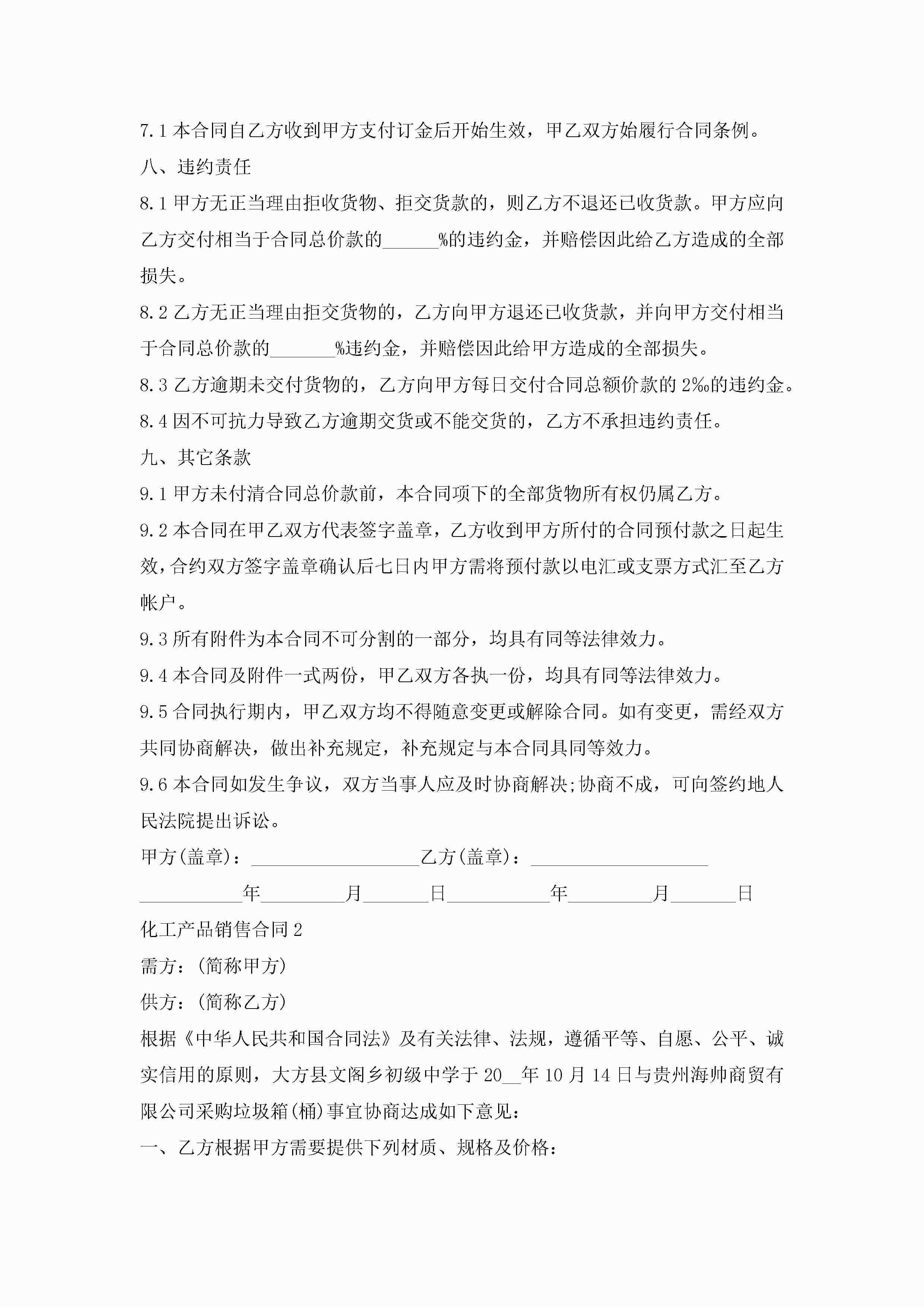 关于化工产品销售合同5篇jugei3月23日 01:39发布关注219 关于化工产品销售合同5篇此内容为付费资源,请付费后查看¥10.9 单篇文档限时特惠¥15个人会员开通企业会员开通立即下载无需登陆!可直接快捷下载单个模板付费资源© 版权声明THE ENDWord模板# 实用文档# 实用模板# 合同模板# 销售合同 如有问题,可点击最底部“联系我们”联系客服 分享QQ空间微博QQ好友海报分享复制链接收藏