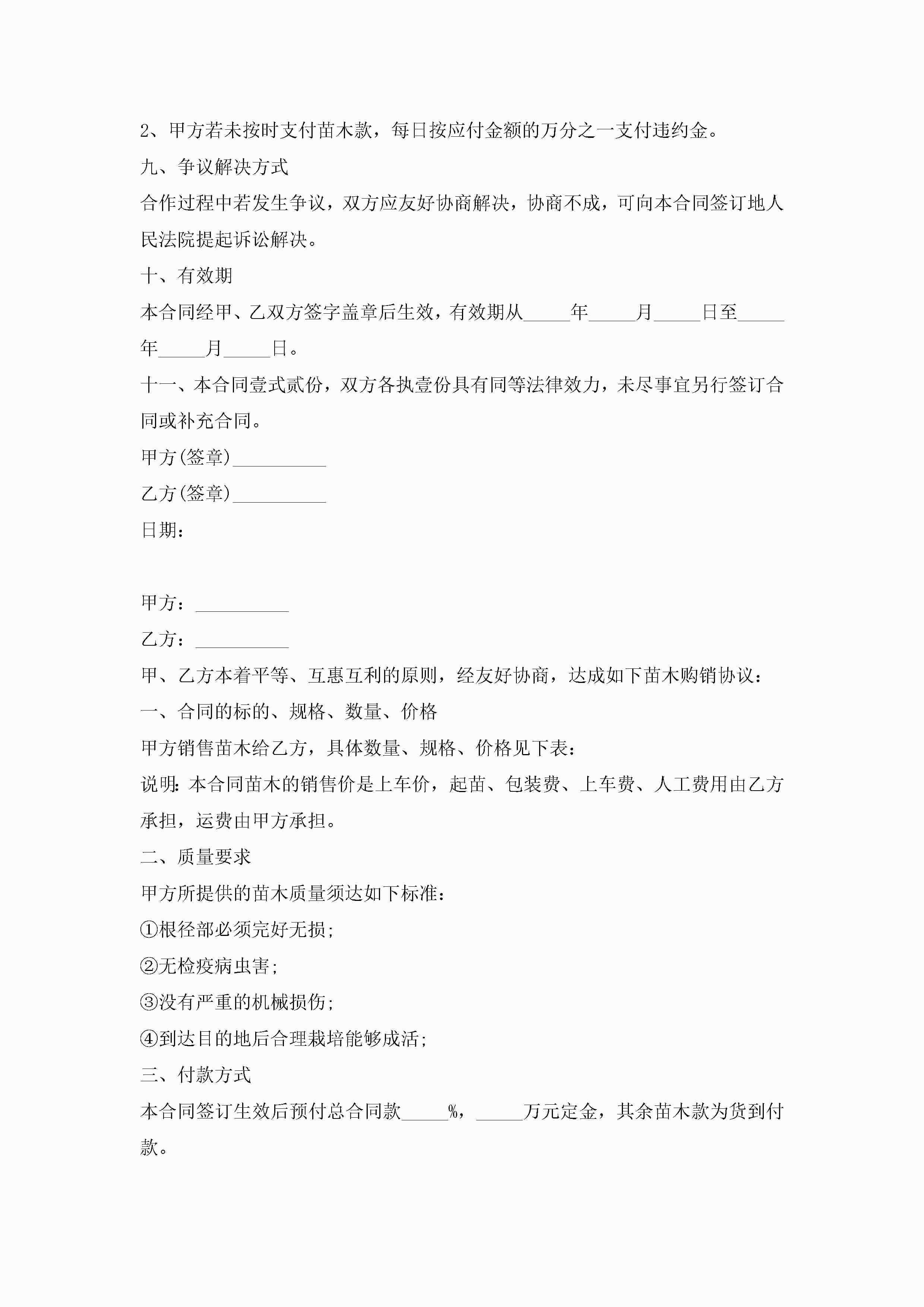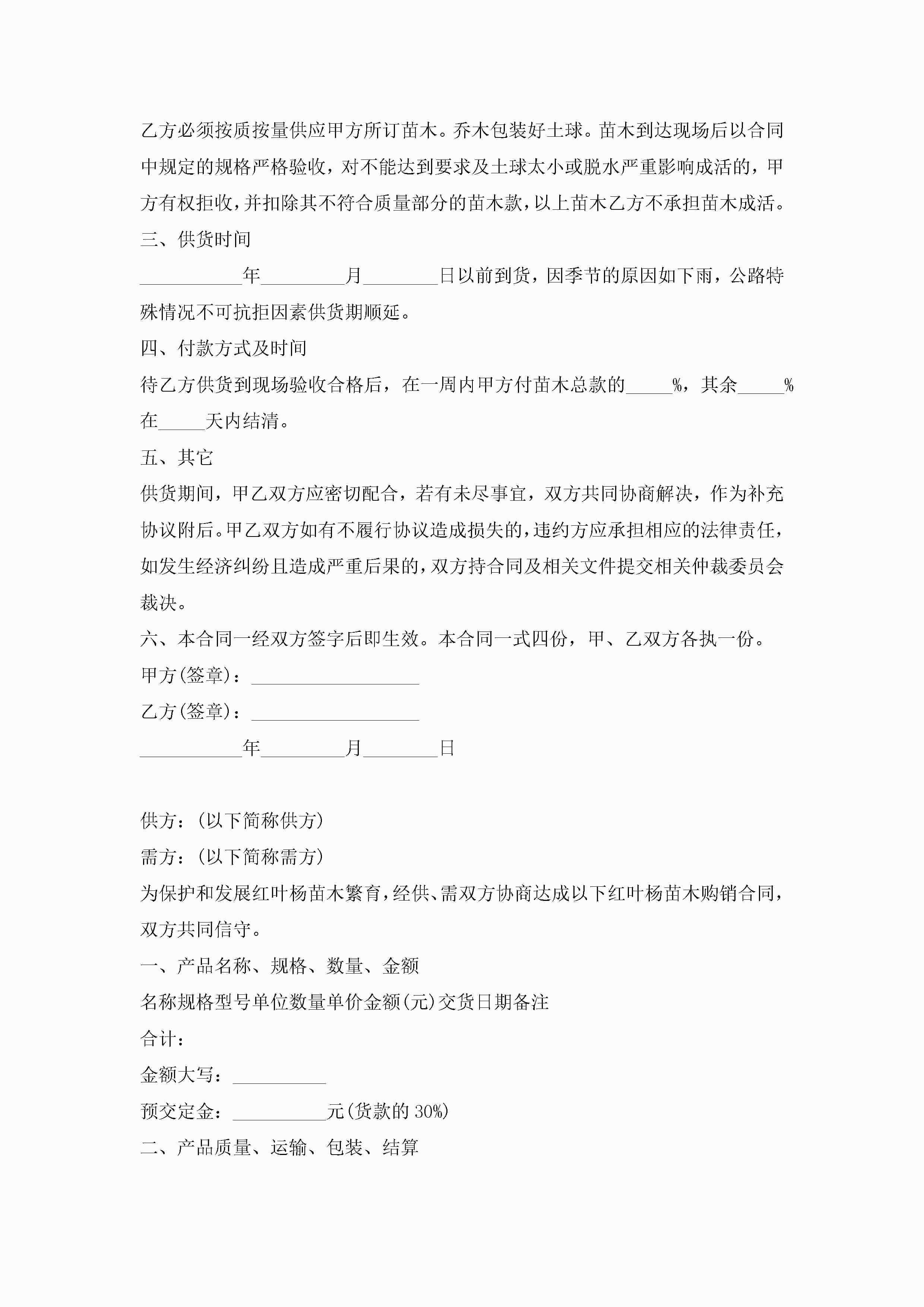 园林苗木销售合同范文5篇jugei3月23日 01:40发布关注199 园林苗木销售合同范文5篇此内容为付费资源,请付费后查看¥10.9 单篇文档限时特惠¥15个人会员开通企业会员开通立即下载无需登陆!可直接快捷下载单个模板付费资源© 版权声明THE ENDWord模板# 实用文档# 实用模板# 合同模板# 销售合同 如有问题,可点击最底部“联系我们”联系客服 分享QQ空间微博QQ好友海报分享复制链接收藏