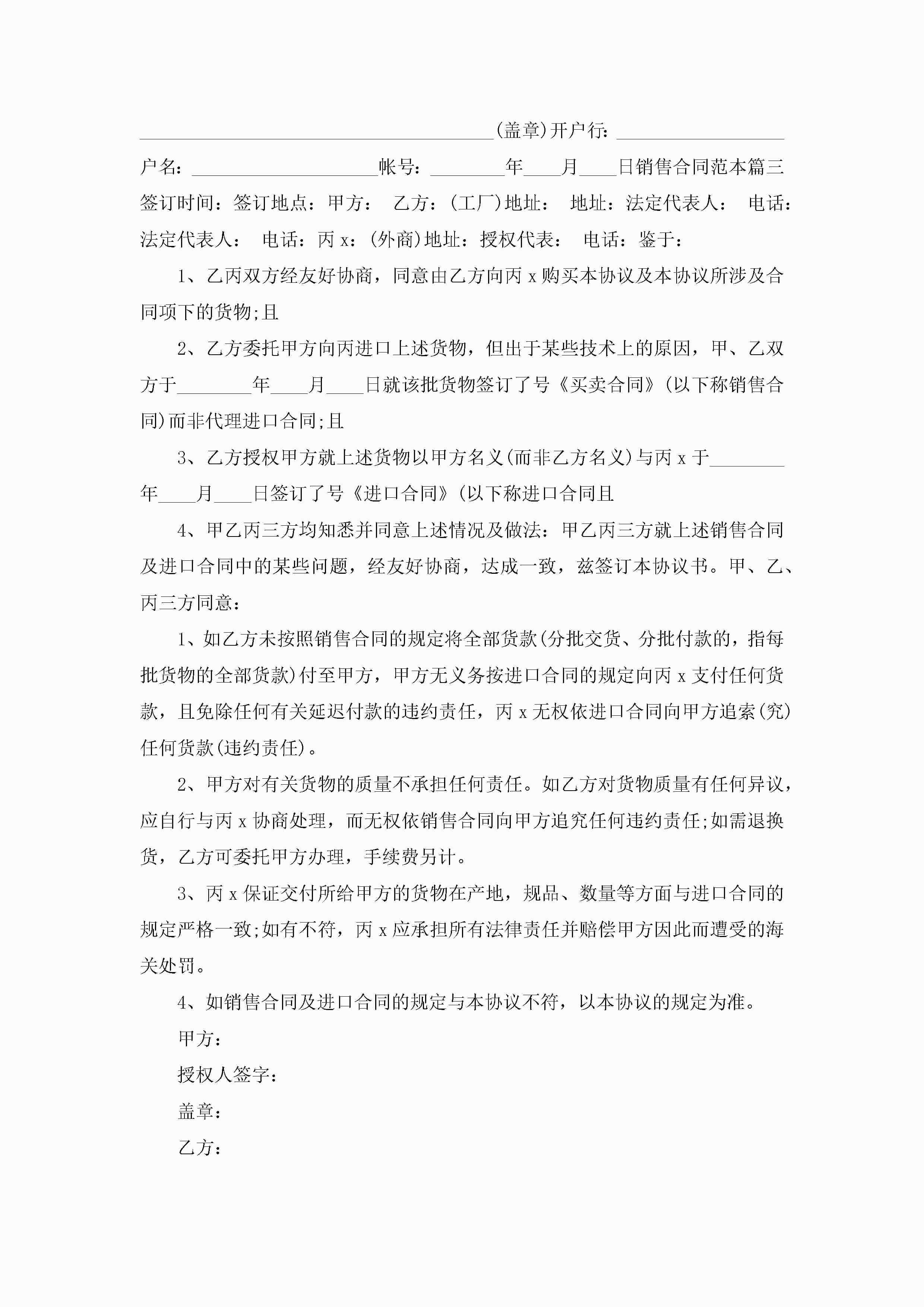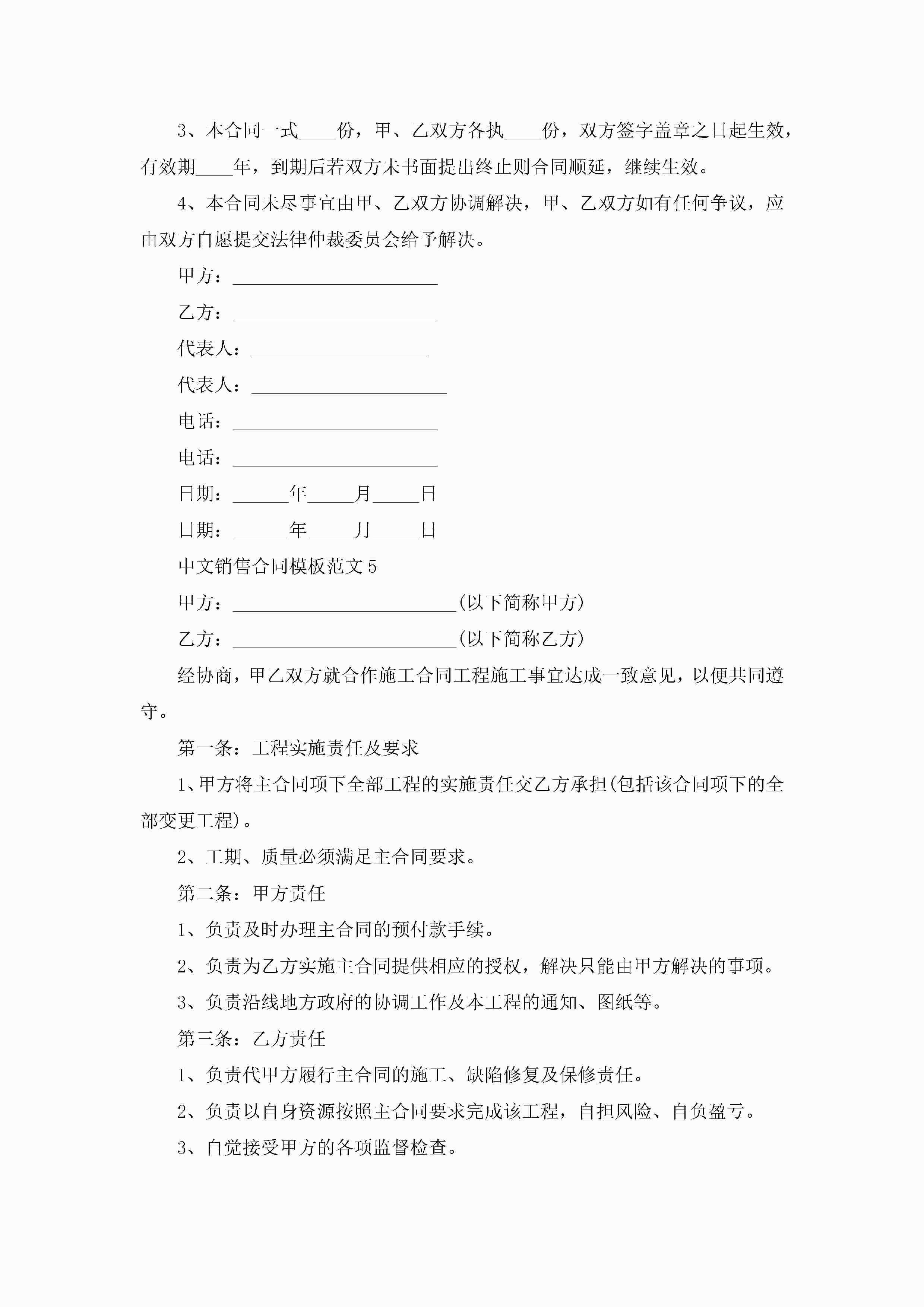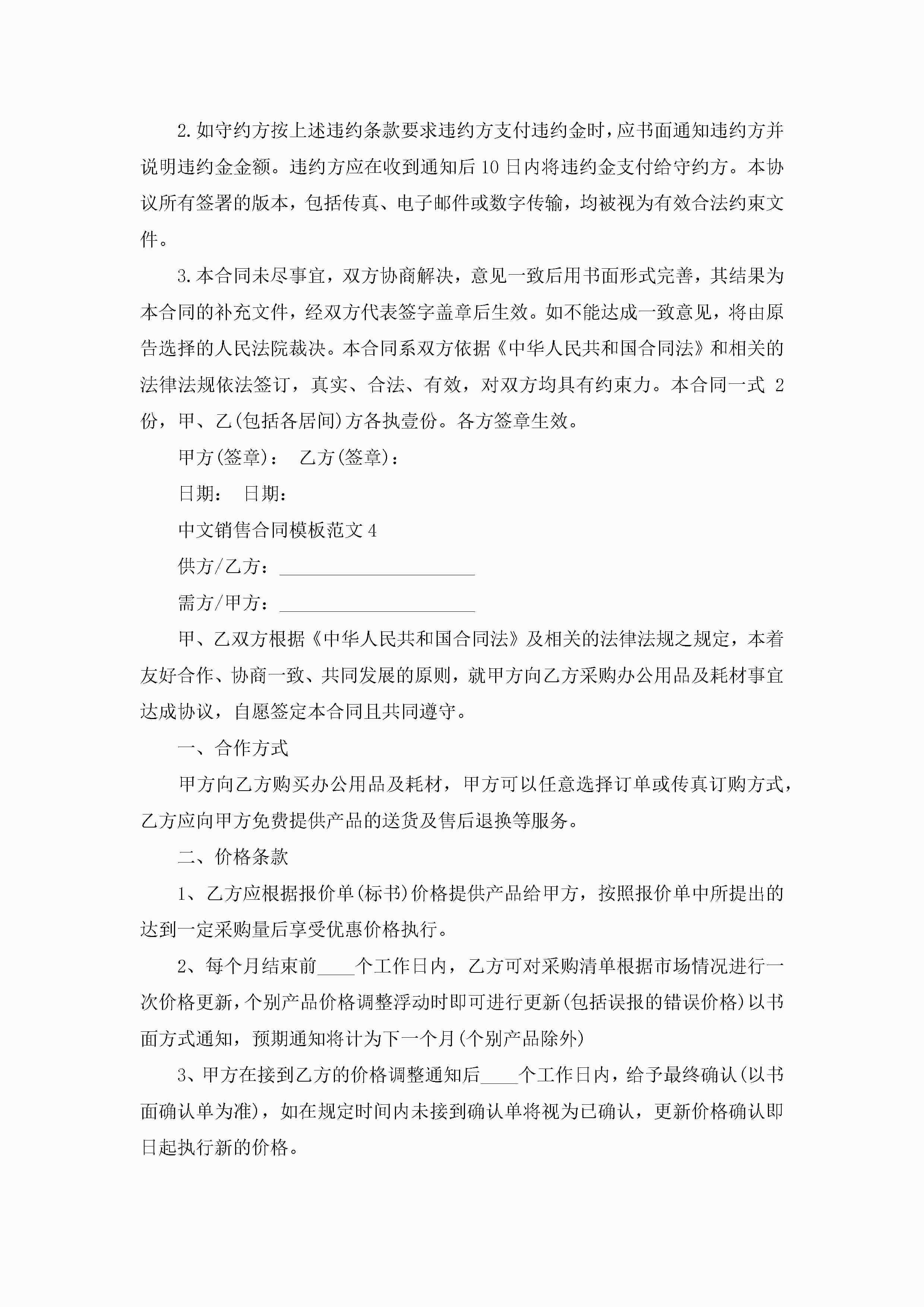 中文销售合同模板范文5篇jugei3月23日 01:40发布关注198 中文销售合同模板范文5篇此内容为付费资源,请付费后查看¥10.9 单篇文档限时特惠¥15个人会员开通企业会员开通立即下载无需登陆!可直接快捷下载单个模板付费资源© 版权声明THE ENDWord模板# 实用文档# 实用模板# 合同模板# 销售合同 如有问题,可点击最底部“联系我们”联系客服 分享QQ空间微博QQ好友海报分享复制链接收藏