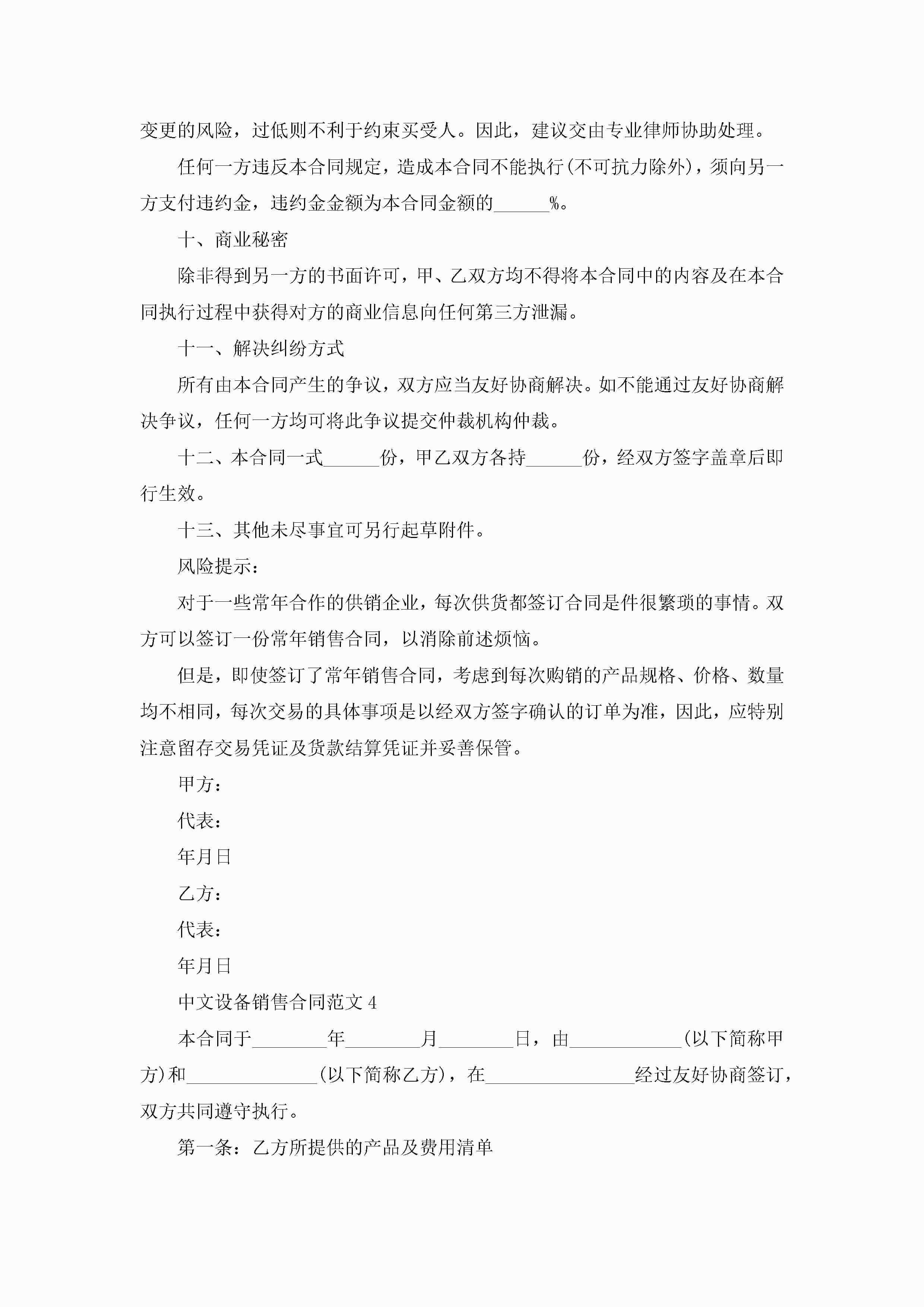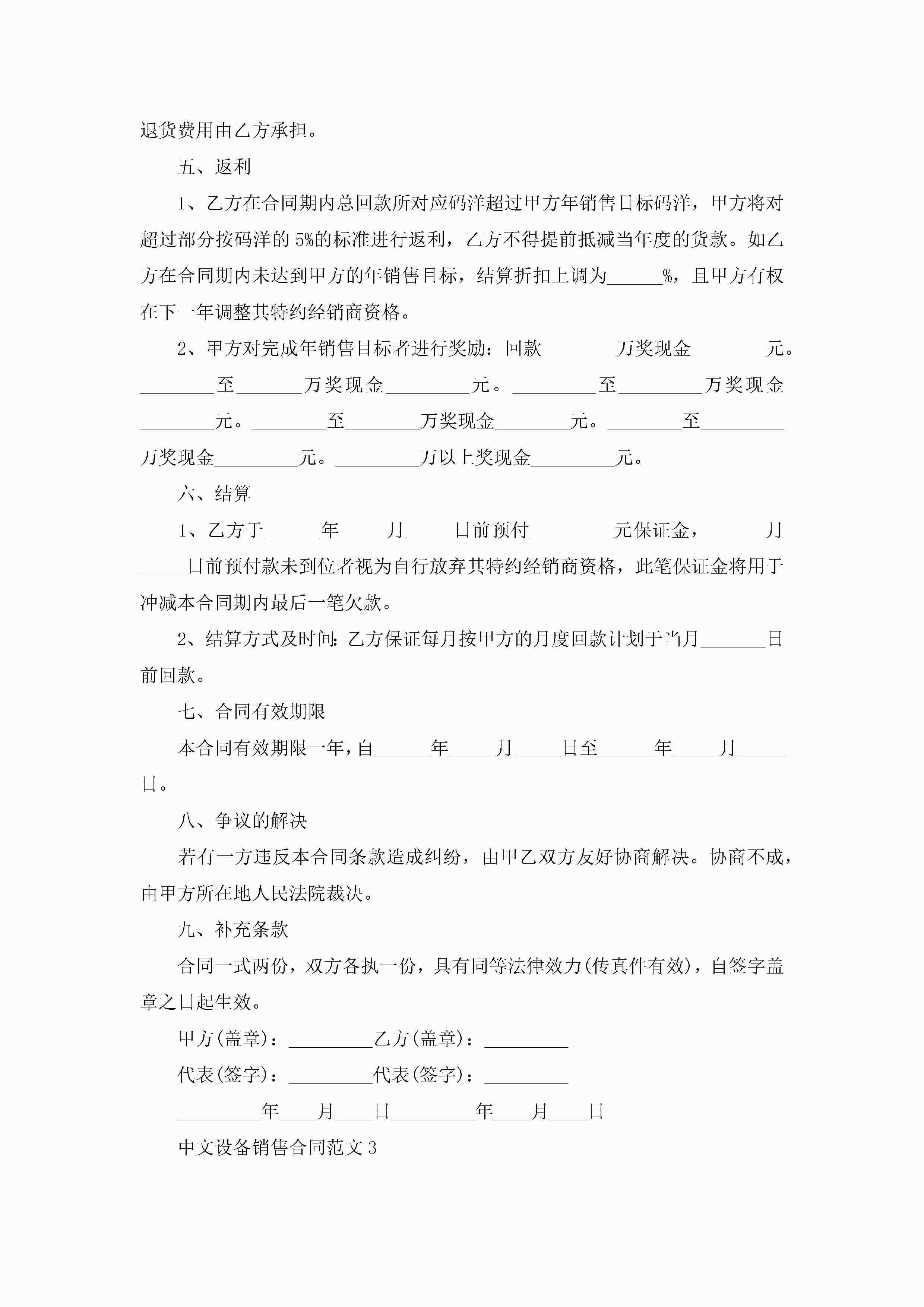 中文设备销售合同范文5篇jugei3月23日 01:40发布关注395 中文设备销售合同范文5篇此内容为付费资源,请付费后查看¥10.9 单篇文档限时特惠¥15个人会员开通企业会员开通立即下载无需登陆!可直接快捷下载单个模板付费资源© 版权声明THE ENDWord模板# 实用文档# 实用模板# 合同模板# 销售合同 如有问题,可点击最底部“联系我们”联系客服 分享QQ空间微博QQ好友海报分享复制链接收藏