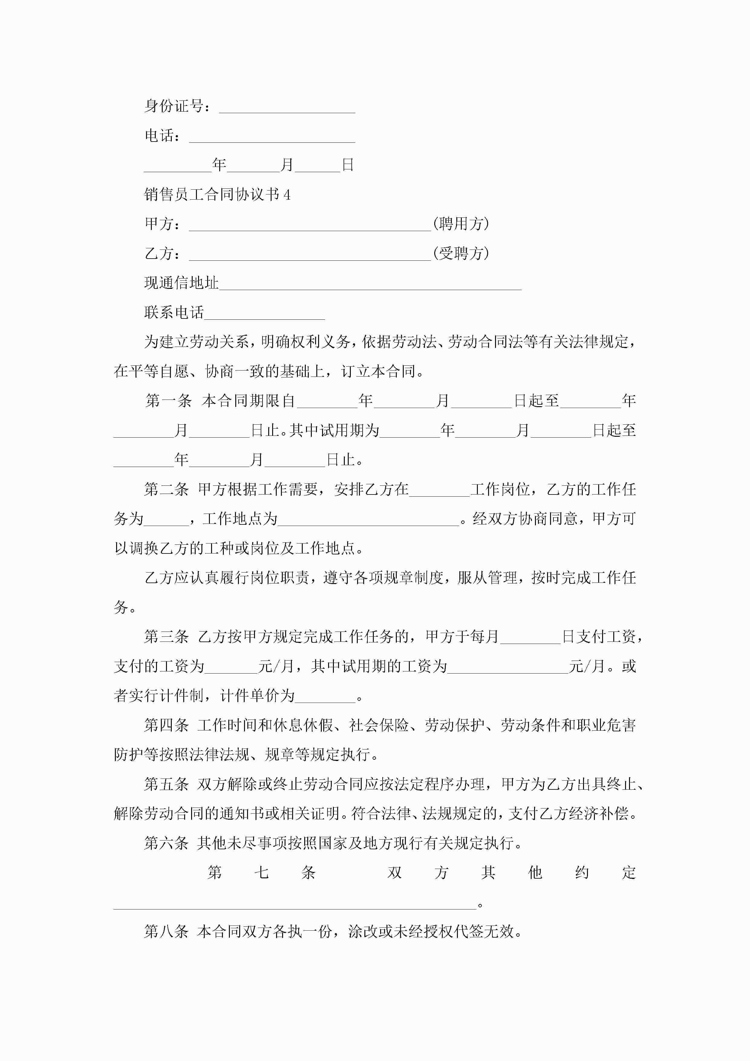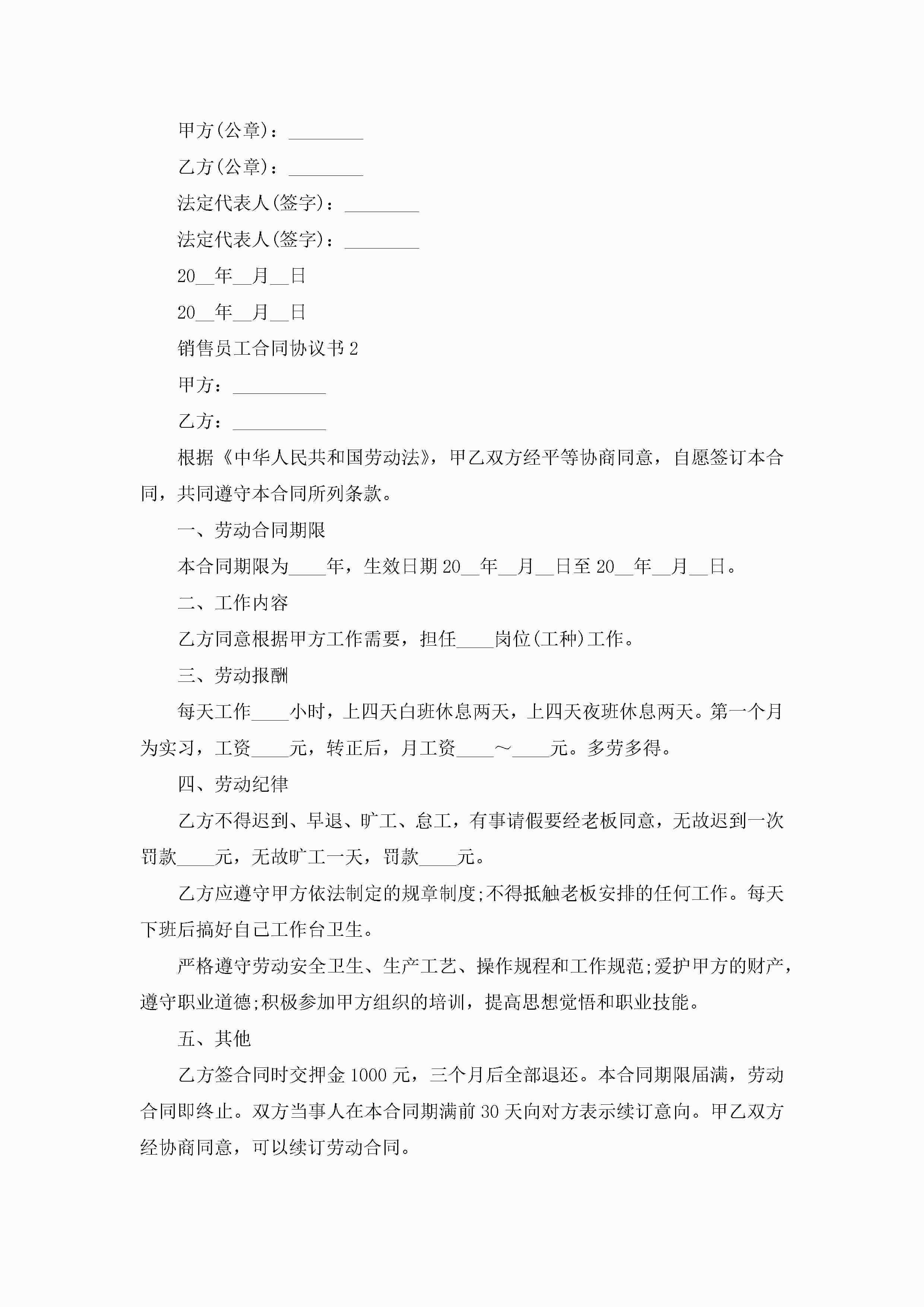 销售员工合同协议书5篇jugei3月23日 01:40发布关注315 销售员工合同协议书5篇此内容为付费资源,请付费后查看¥10.9 单篇文档限时特惠¥15个人会员开通企业会员开通立即下载无需登陆!可直接快捷下载单个模板付费资源© 版权声明THE ENDWord模板# 实用文档# 合同模板# 销售合同# 销售员工合同协议书 如有问题,可点击最底部“联系我们”联系客服 分享QQ空间微博QQ好友海报分享复制链接收藏