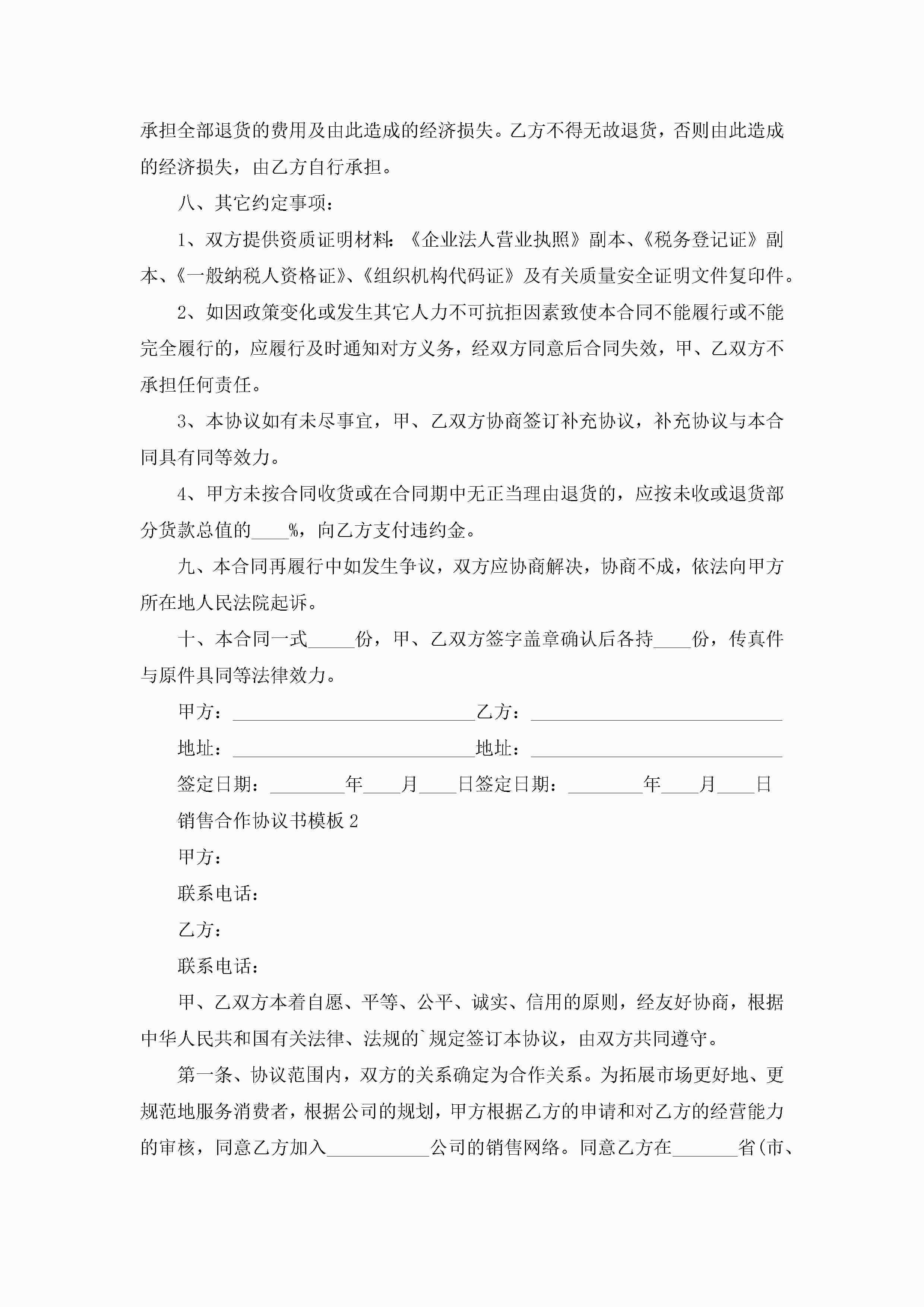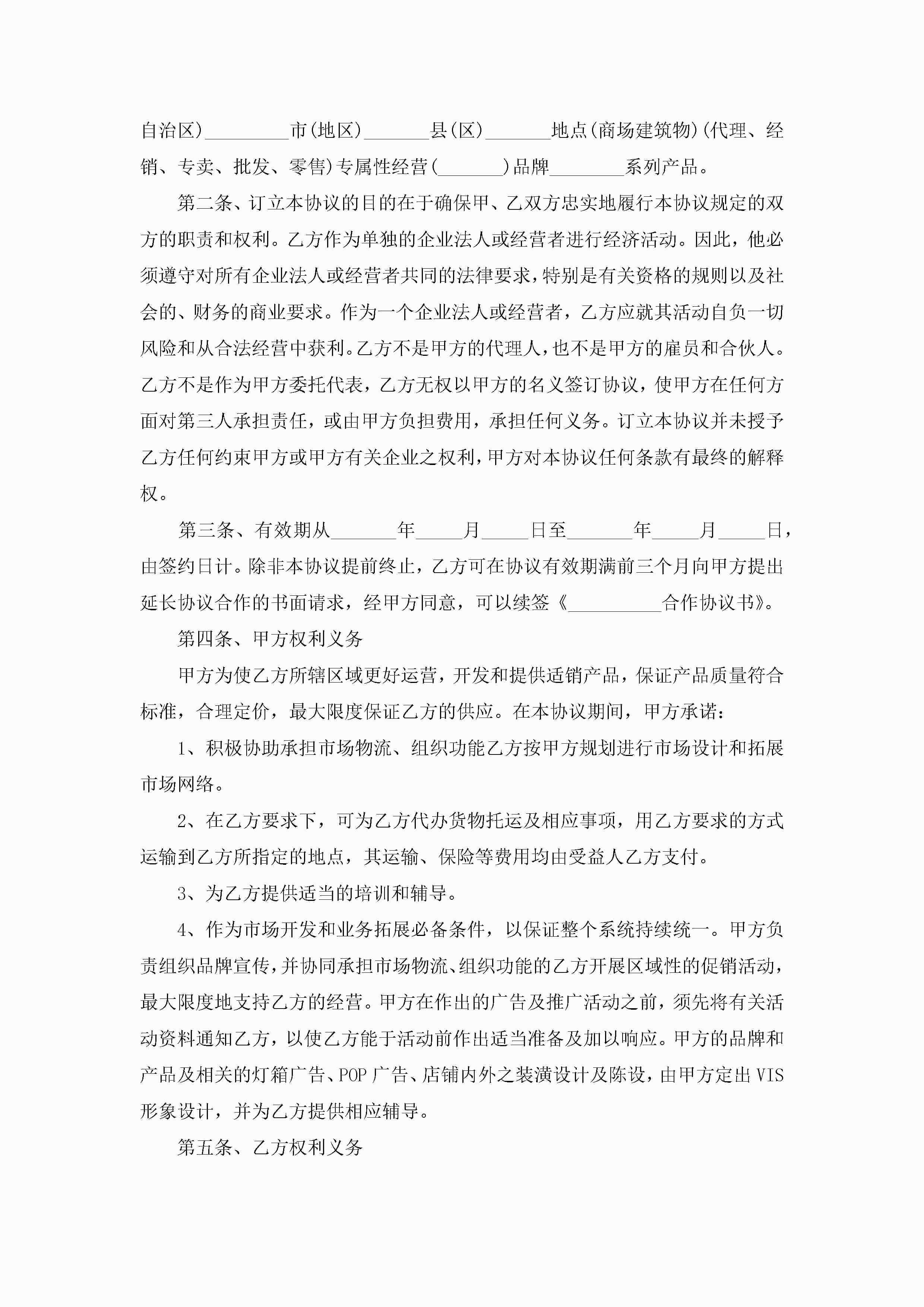 关于销售合作协议书模板8篇jugei3月23日 01:40发布关注208 关于销售合作协议书模板8篇此内容为付费资源,请付费后查看¥10.9 单篇文档限时特惠¥15个人会员开通企业会员开通立即下载无需登陆!可直接快捷下载单个模板付费资源© 版权声明THE ENDWord模板# 实用文档# 合同模板# 销售合同# 销售合作协议书模板8篇 如有问题,可点击最底部“联系我们”联系客服 分享QQ空间微博QQ好友海报分享复制链接收藏