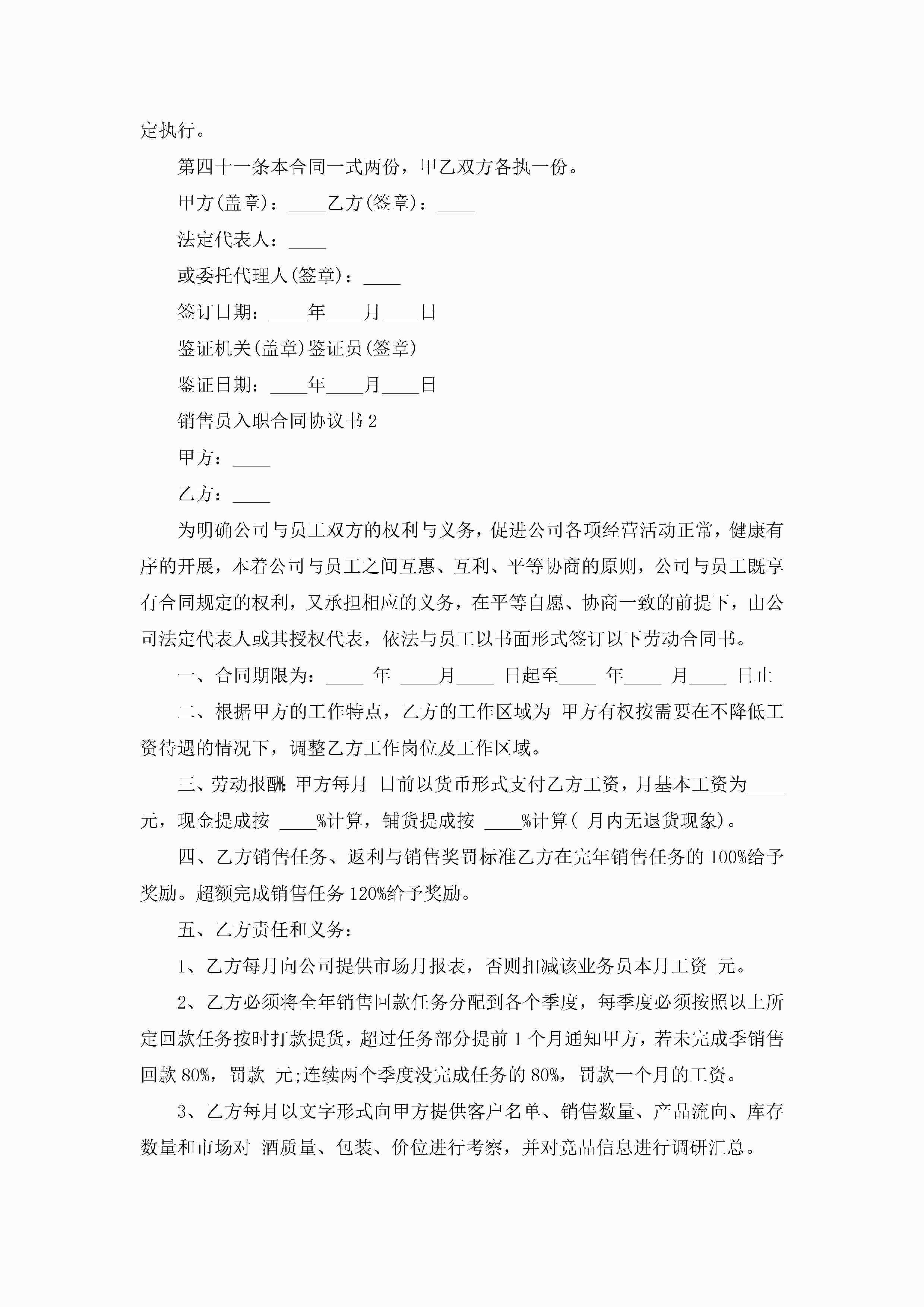 销售员入职合同协议书8篇jugei3月23日 01:40发布关注193 销售员入职合同协议书8篇此内容为付费资源,请付费后查看¥10.9 单篇文档限时特惠¥15个人会员开通企业会员开通立即下载无需登陆!可直接快捷下载单个模板付费资源© 版权声明THE ENDWord模板# 实用文档# 合同模板# 销售合同# 销售员入职合同协议书8篇 如有问题,可点击最底部“联系我们”联系客服 分享QQ空间微博QQ好友海报分享复制链接收藏