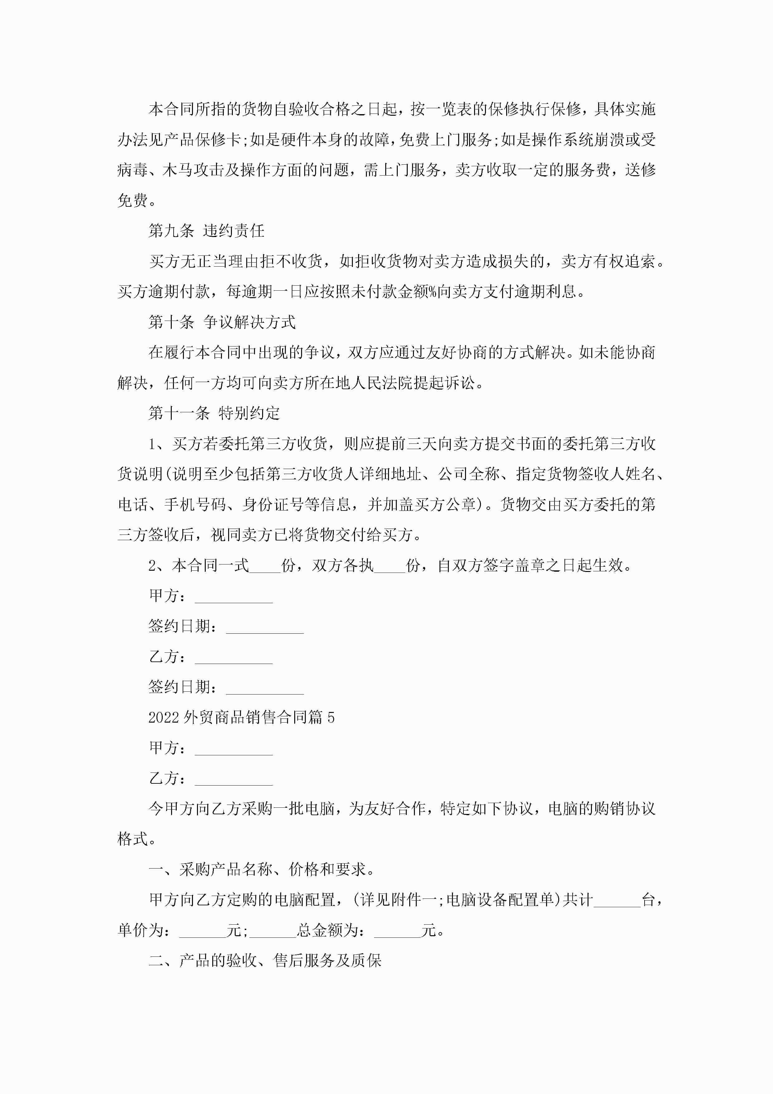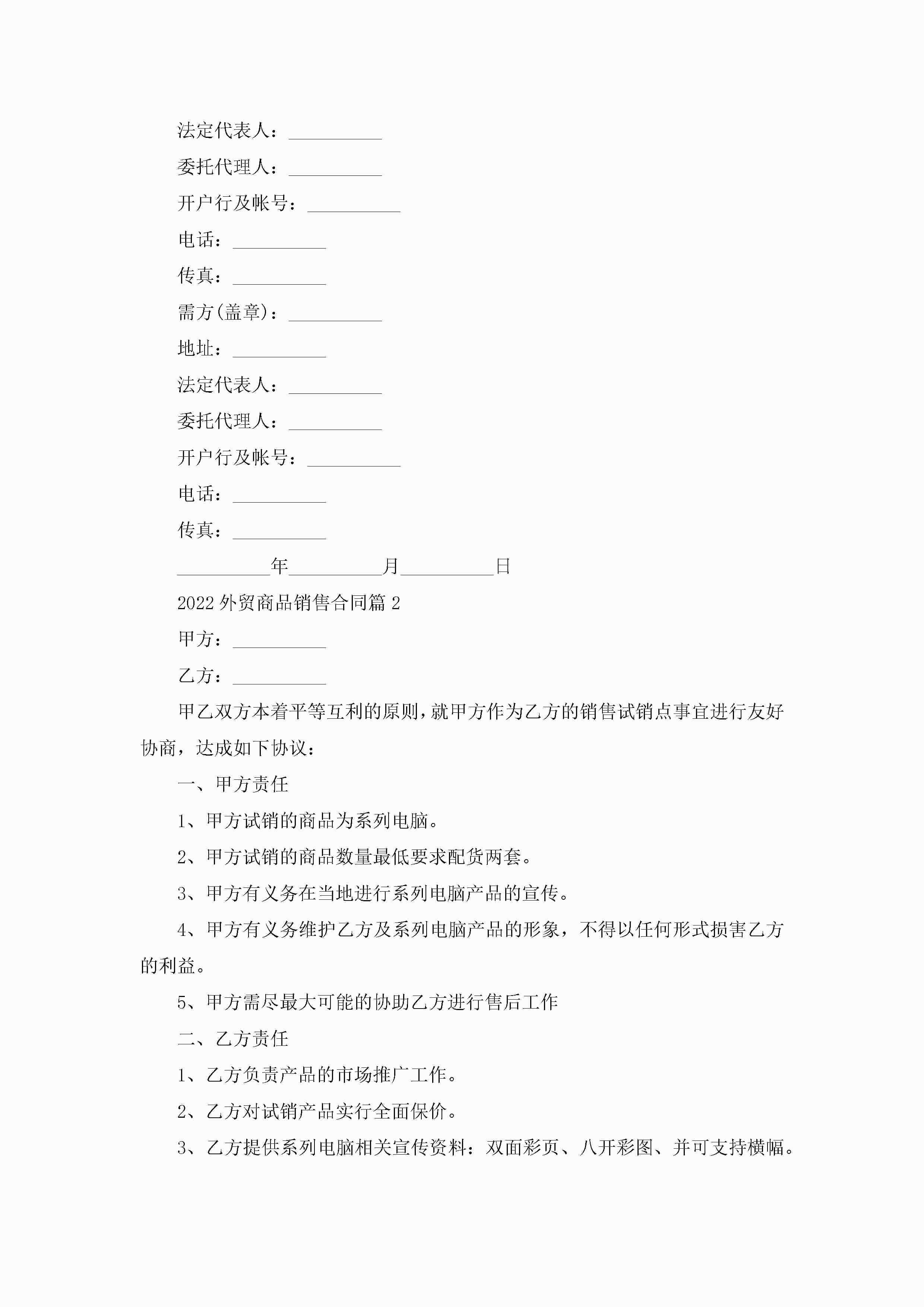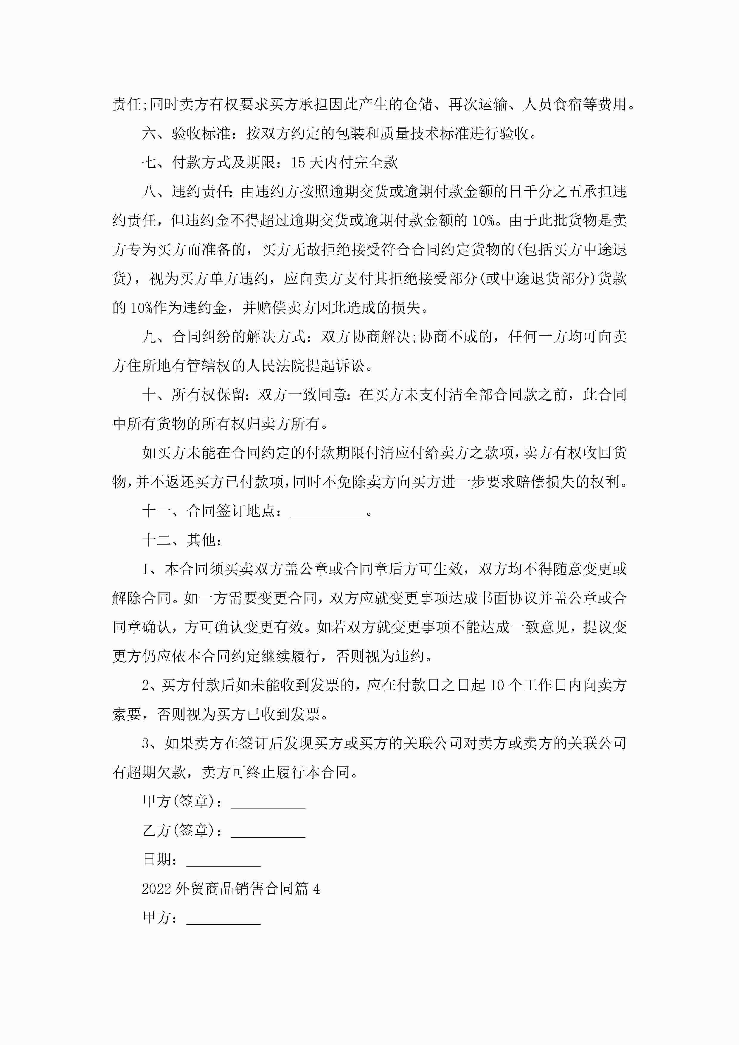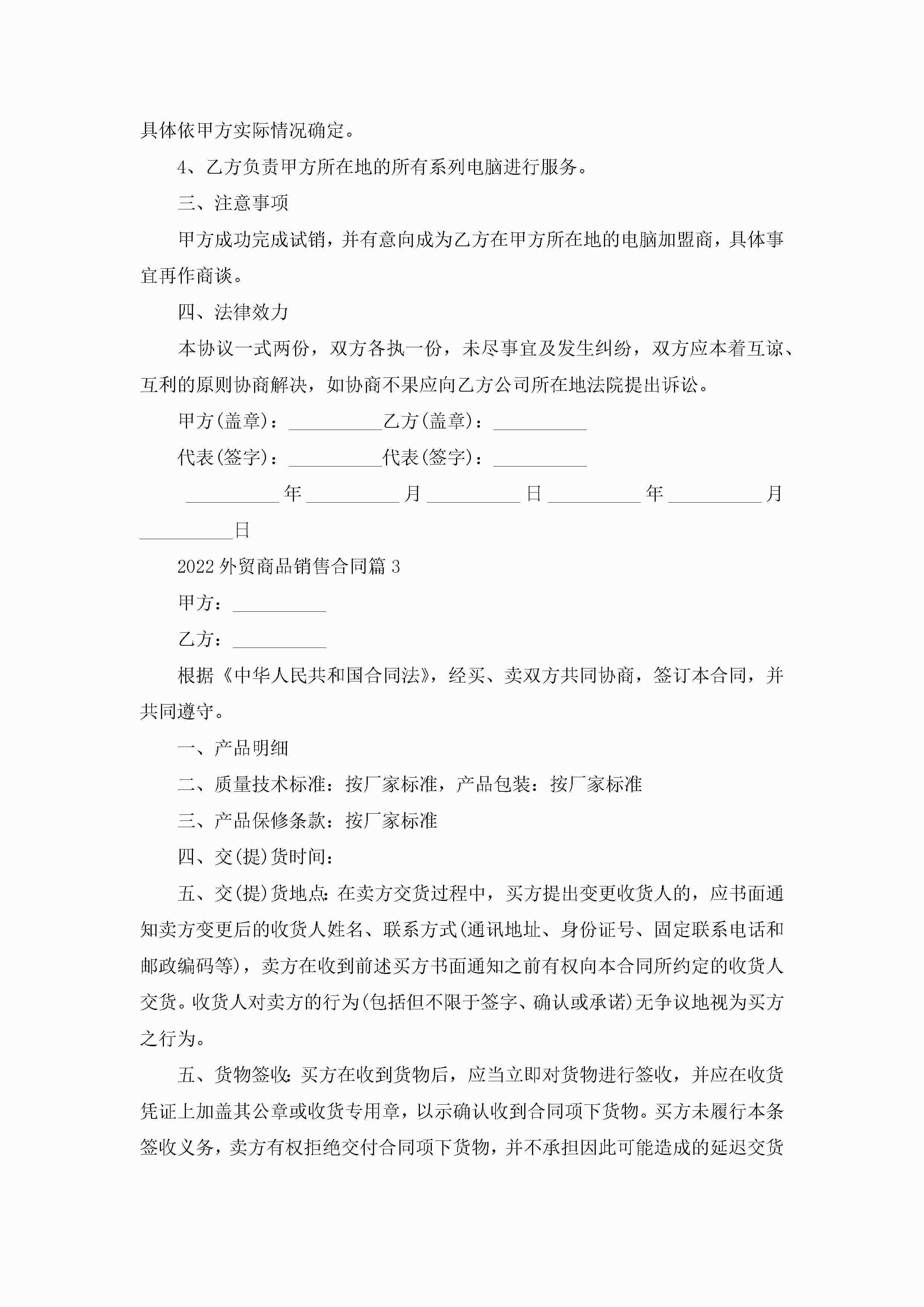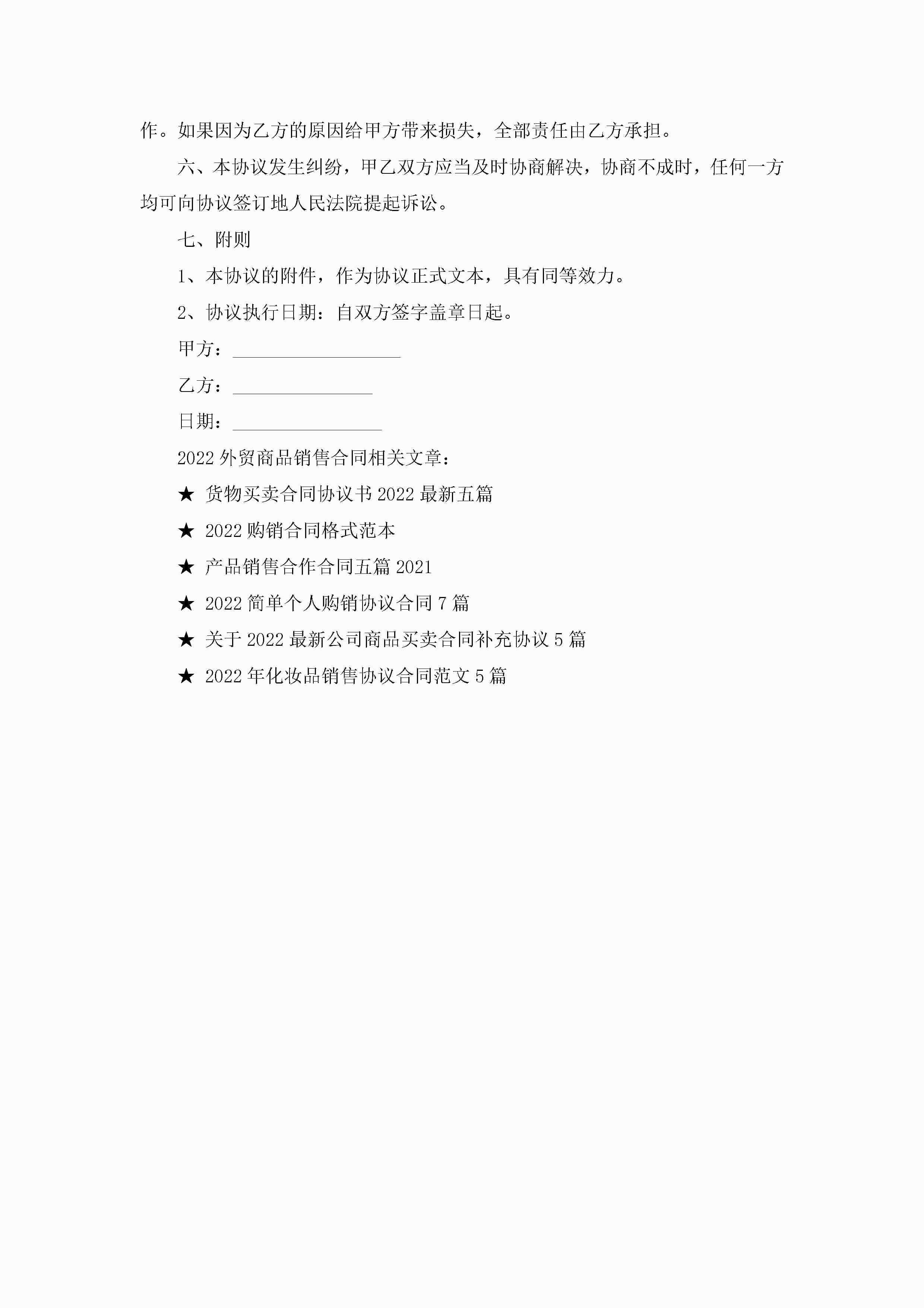 2022外贸商品销售合同5篇jugei3月23日 01:40发布关注195 2022外贸商品销售合同5篇此内容为付费资源,请付费后查看¥10.9 单篇文档限时特惠¥15个人会员开通企业会员开通立即下载无需登陆!可直接快捷下载单个模板付费资源© 版权声明THE ENDWord模板# 实用文档# 合同模板# 销售合同# 2022外贸商品销售合同 如有问题,可点击最底部“联系我们”联系客服 分享QQ空间微博QQ好友海报分享复制链接收藏