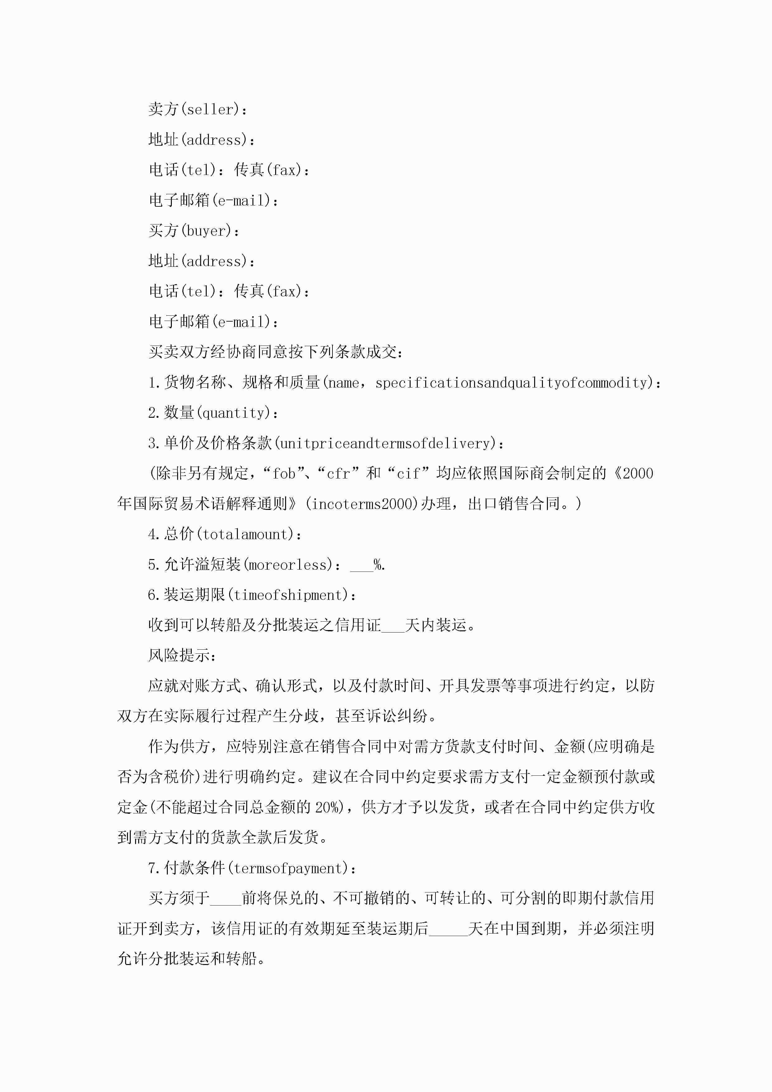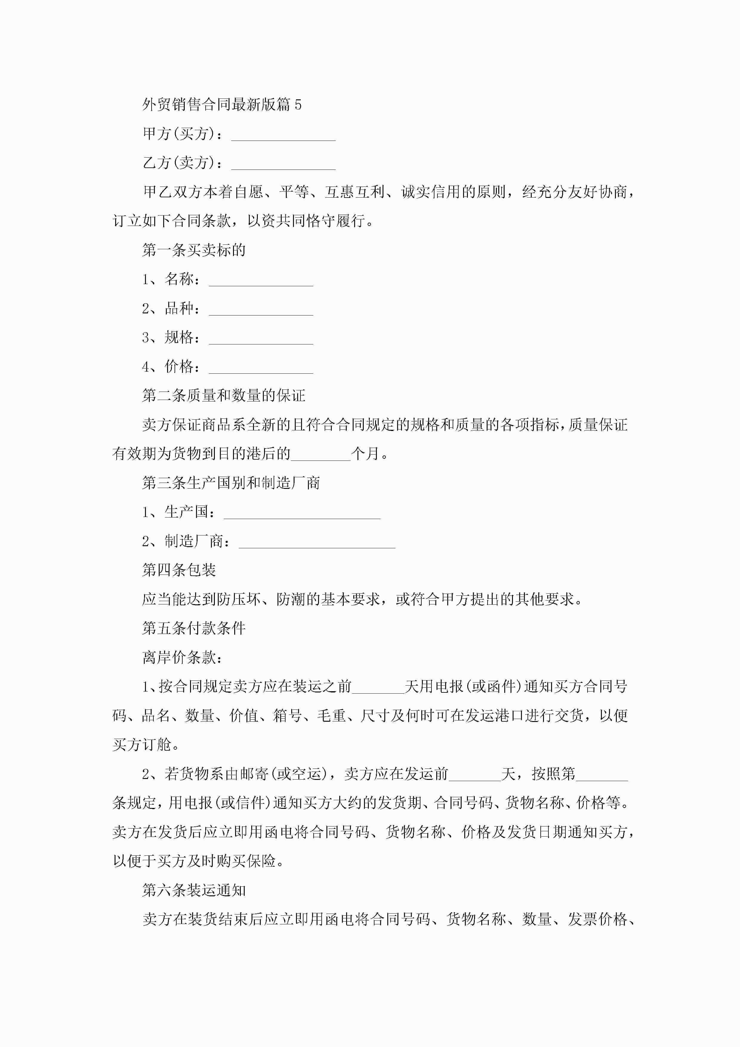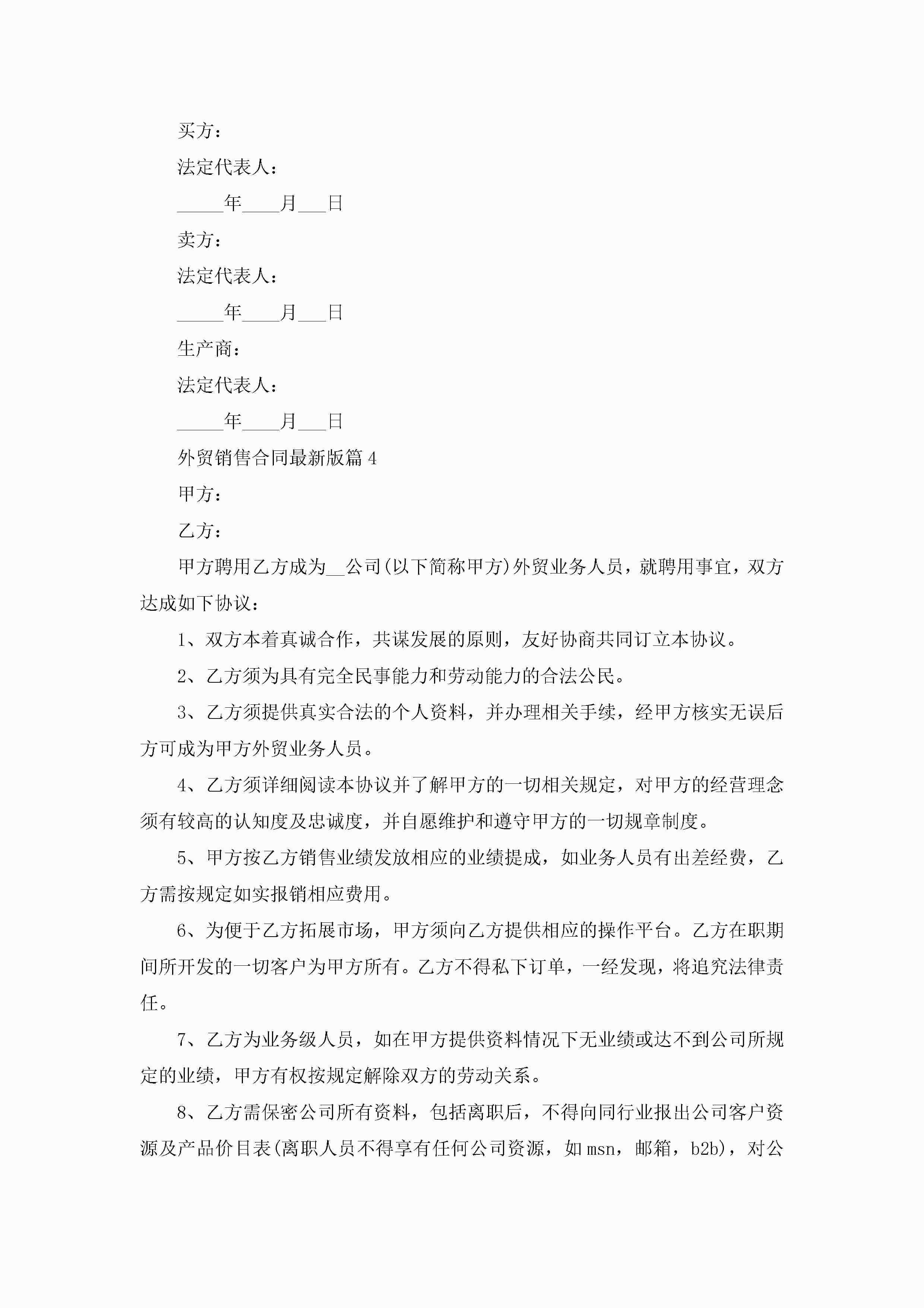 外贸销售合同最新版5篇jugei3月23日 01:40发布关注227 外贸销售合同最新版5篇此内容为付费资源,请付费后查看¥10.9 单篇文档限时特惠¥15个人会员开通企业会员开通立即下载无需登陆!可直接快捷下载单个模板付费资源© 版权声明THE ENDWord模板# 实用文档# 合同模板# 销售合同# 外贸销售合同最新版 如有问题,可点击最底部“联系我们”联系客服 分享QQ空间微博QQ好友海报分享复制链接收藏