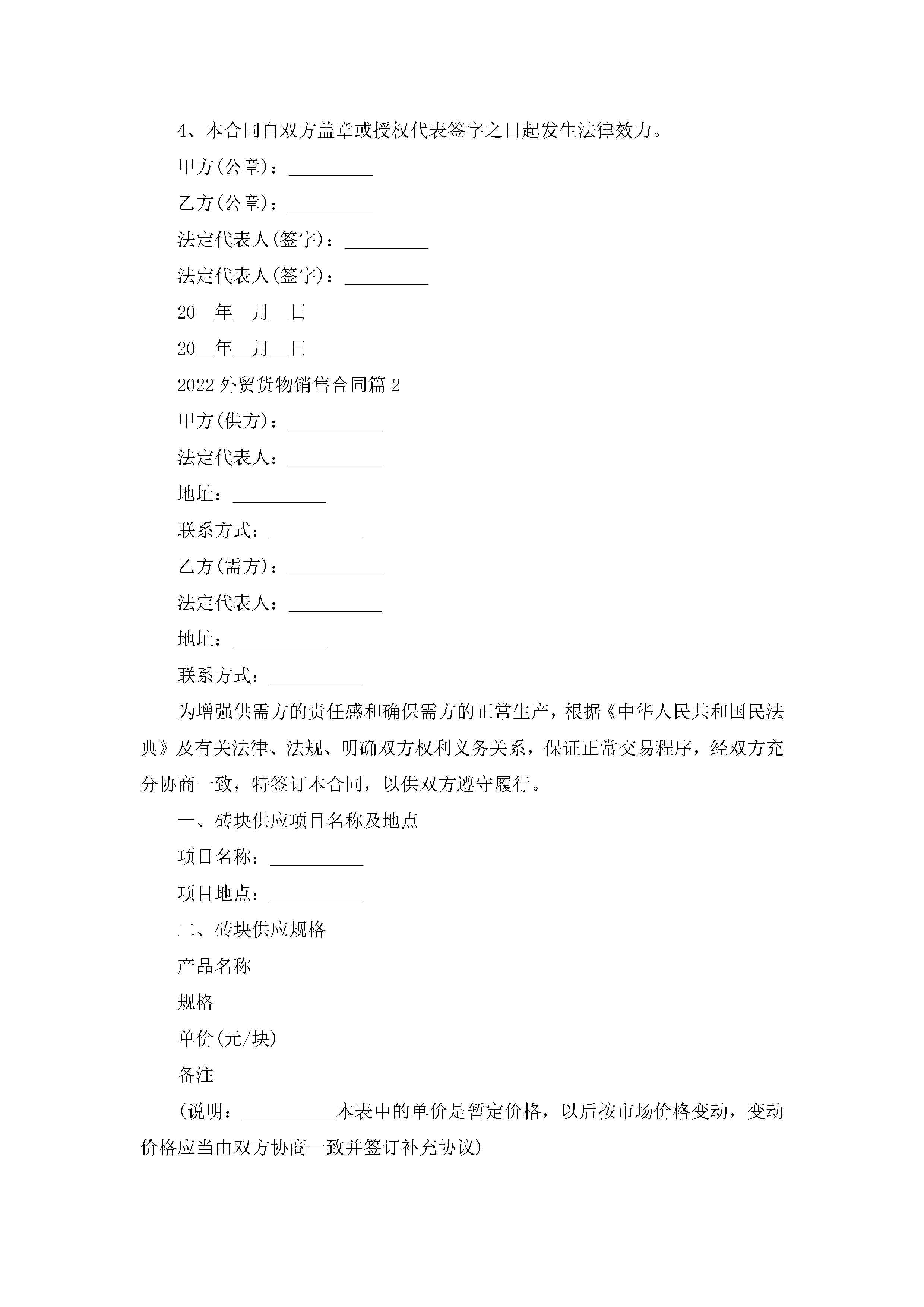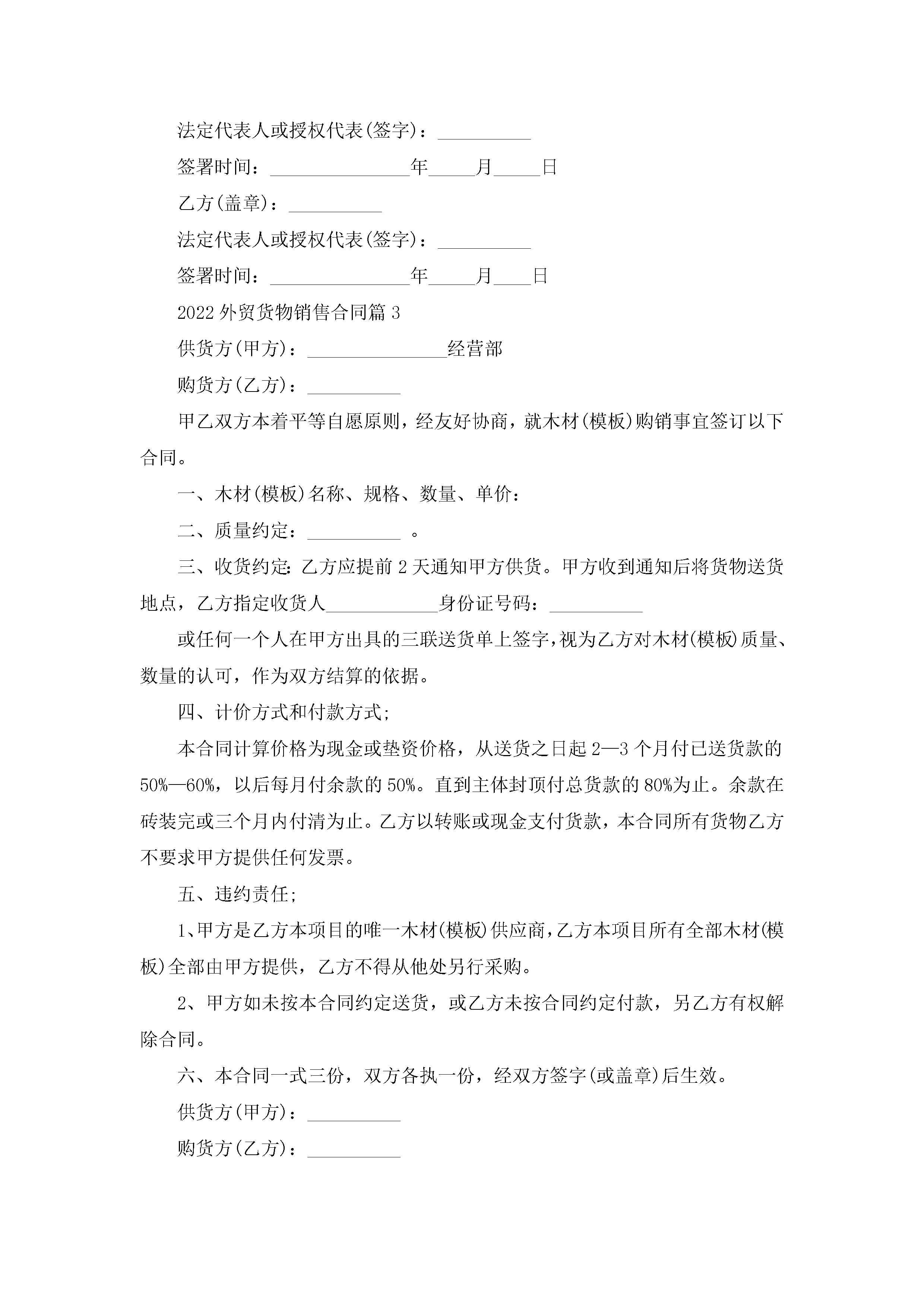 2022外贸货物销售合同5篇jugei3月23日 01:40发布关注253 2022外贸货物销售合同5篇此内容为付费资源,请付费后查看¥10.9 单篇文档限时特惠¥15个人会员开通企业会员开通立即下载无需登陆!可直接快捷下载单个模板付费资源© 版权声明THE ENDWord模板# 实用文档# 合同模板# 销售合同# 2022外贸货物销售合同 如有问题,可点击最底部“联系我们”联系客服 分享QQ空间微博QQ好友海报分享复制链接收藏