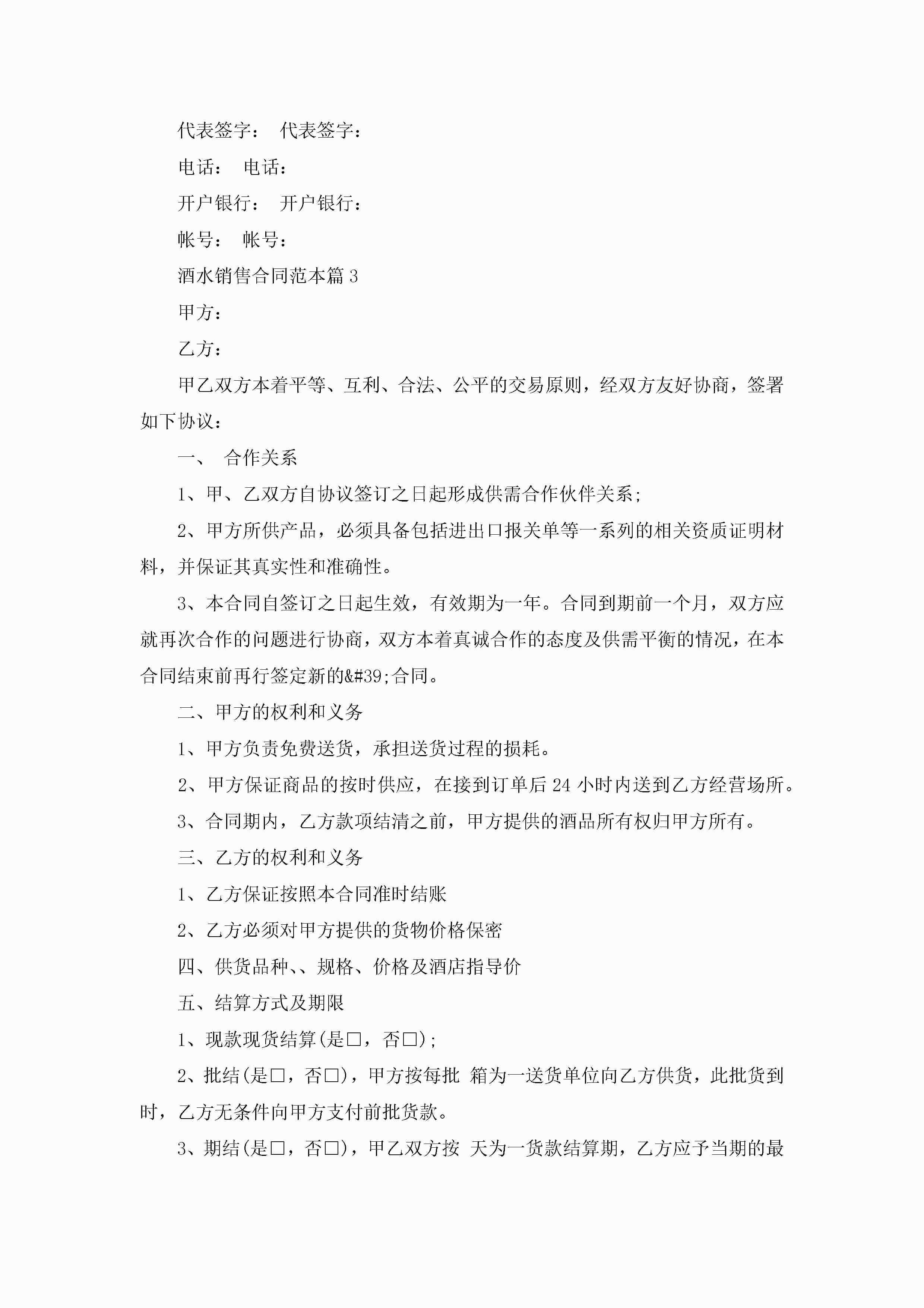 酒水销售合同范本5篇jugei3月23日 01:40发布关注192 酒水销售合同范本5篇此内容为付费资源,请付费后查看¥10.9 单篇文档限时特惠¥15个人会员开通企业会员开通立即下载无需登陆!可直接快捷下载单个模板付费资源© 版权声明THE ENDWord模板# 实用文档# 合同模板# 销售合同# 酒水销售合同范本 如有问题,可点击最底部“联系我们”联系客服 分享QQ空间微博QQ好友海报分享复制链接收藏