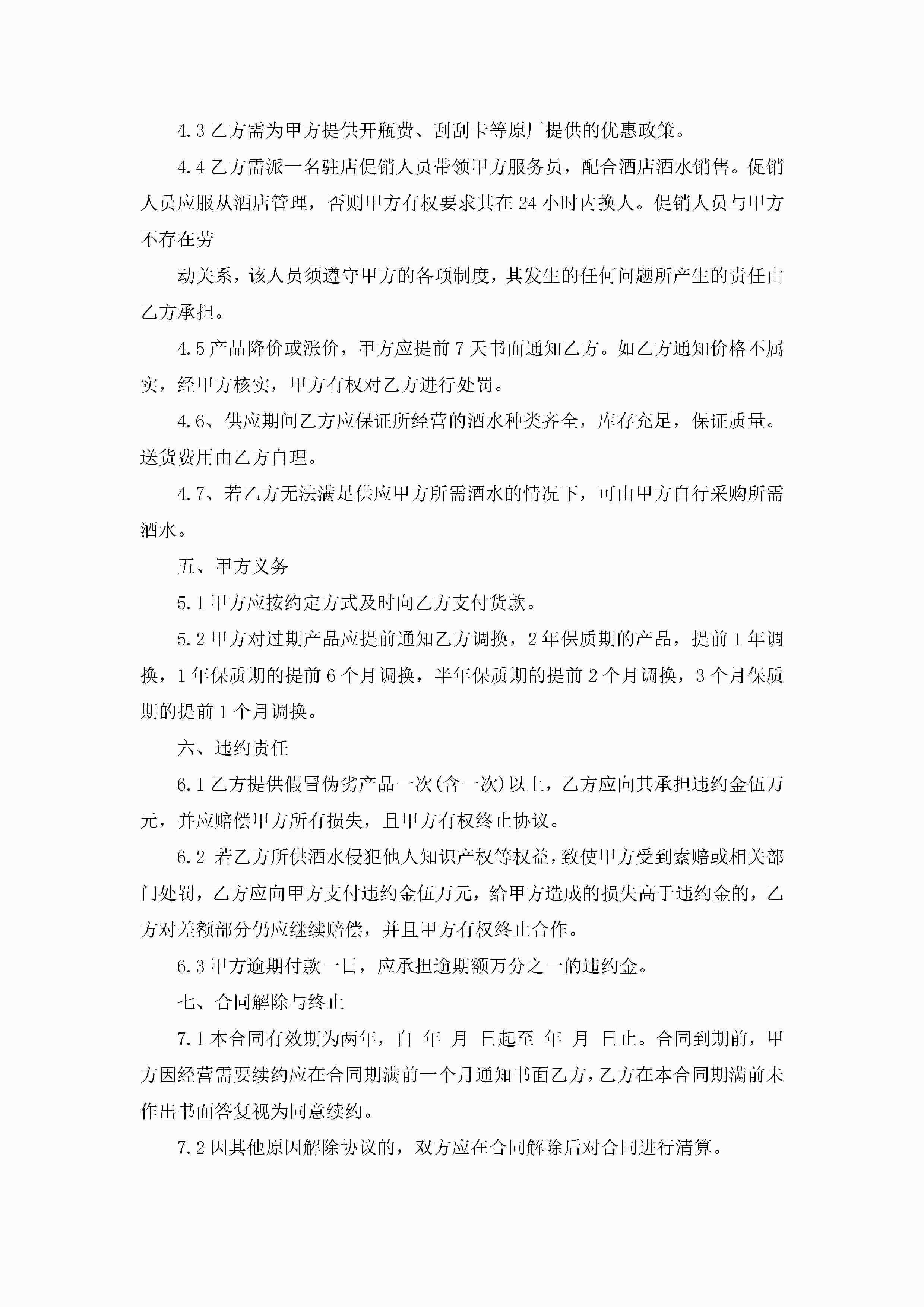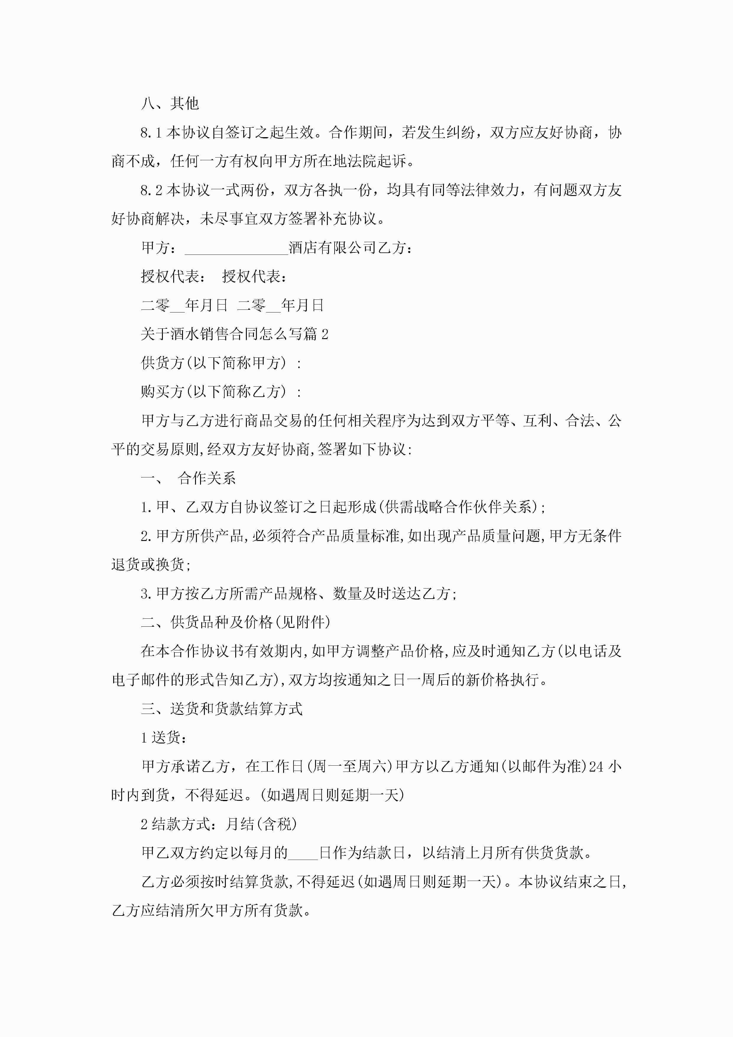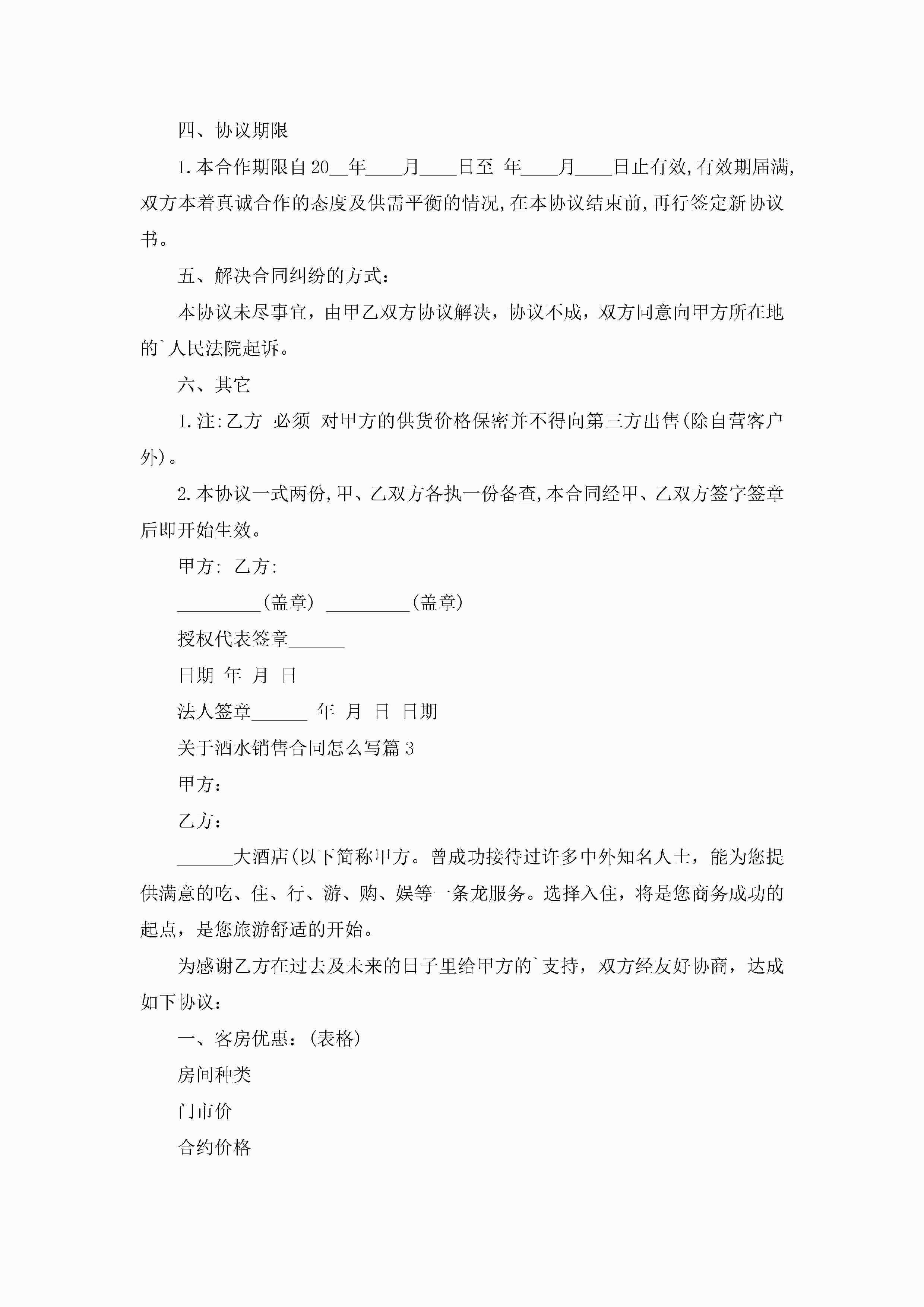 关于酒水销售合同怎么写5篇jugei3月23日 01:40发布关注252 关于酒水销售合同怎么写5篇此内容为付费资源,请付费后查看¥10.9 单篇文档限时特惠¥15个人会员开通企业会员开通立即下载无需登陆!可直接快捷下载单个模板付费资源© 版权声明THE ENDWord模板# 实用文档# 合同模板# 销售合同# 关于酒水销售合同怎么写 如有问题,可点击最底部“联系我们”联系客服 分享QQ空间微博QQ好友海报分享复制链接收藏
