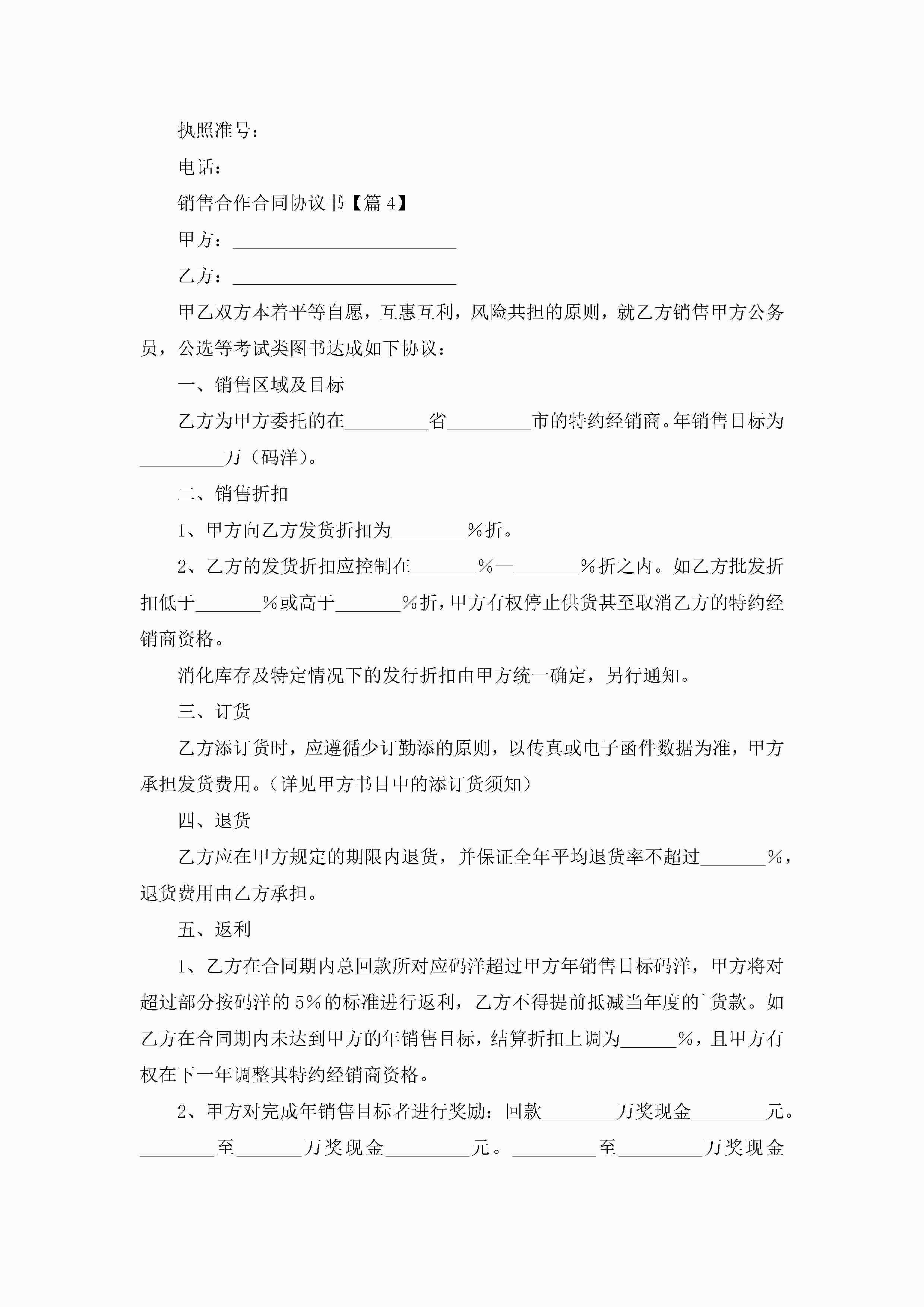 销售合作合同协议书5篇jugei3月23日 01:40发布关注284 销售合作合同协议书5篇此内容为付费资源,请付费后查看¥10.9 单篇文档限时特惠¥15个人会员开通企业会员开通立即下载无需登陆!可直接快捷下载单个模板付费资源© 版权声明THE ENDWord模板# 实用文档# 合同模板# 销售合同# 销售合作合同协议书 如有问题,可点击最底部“联系我们”联系客服 分享QQ空间微博QQ好友海报分享复制链接收藏