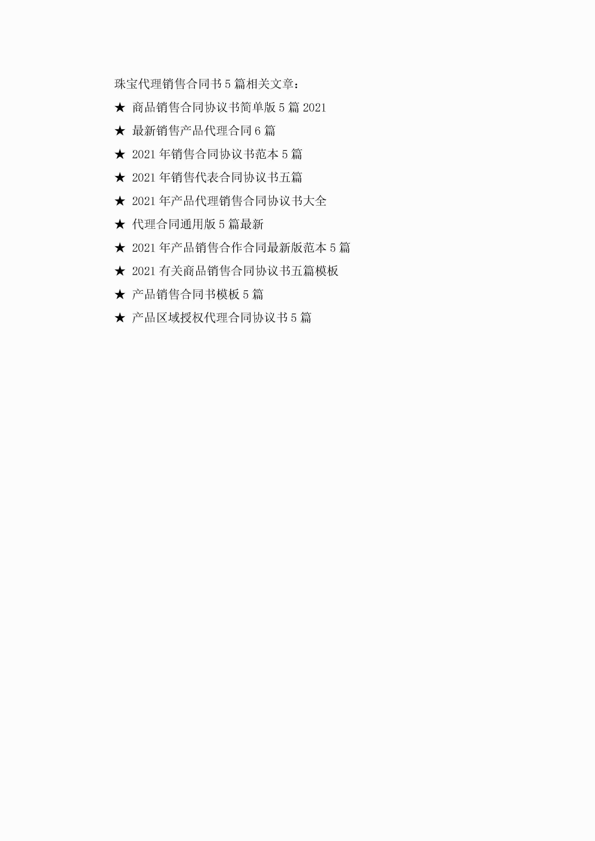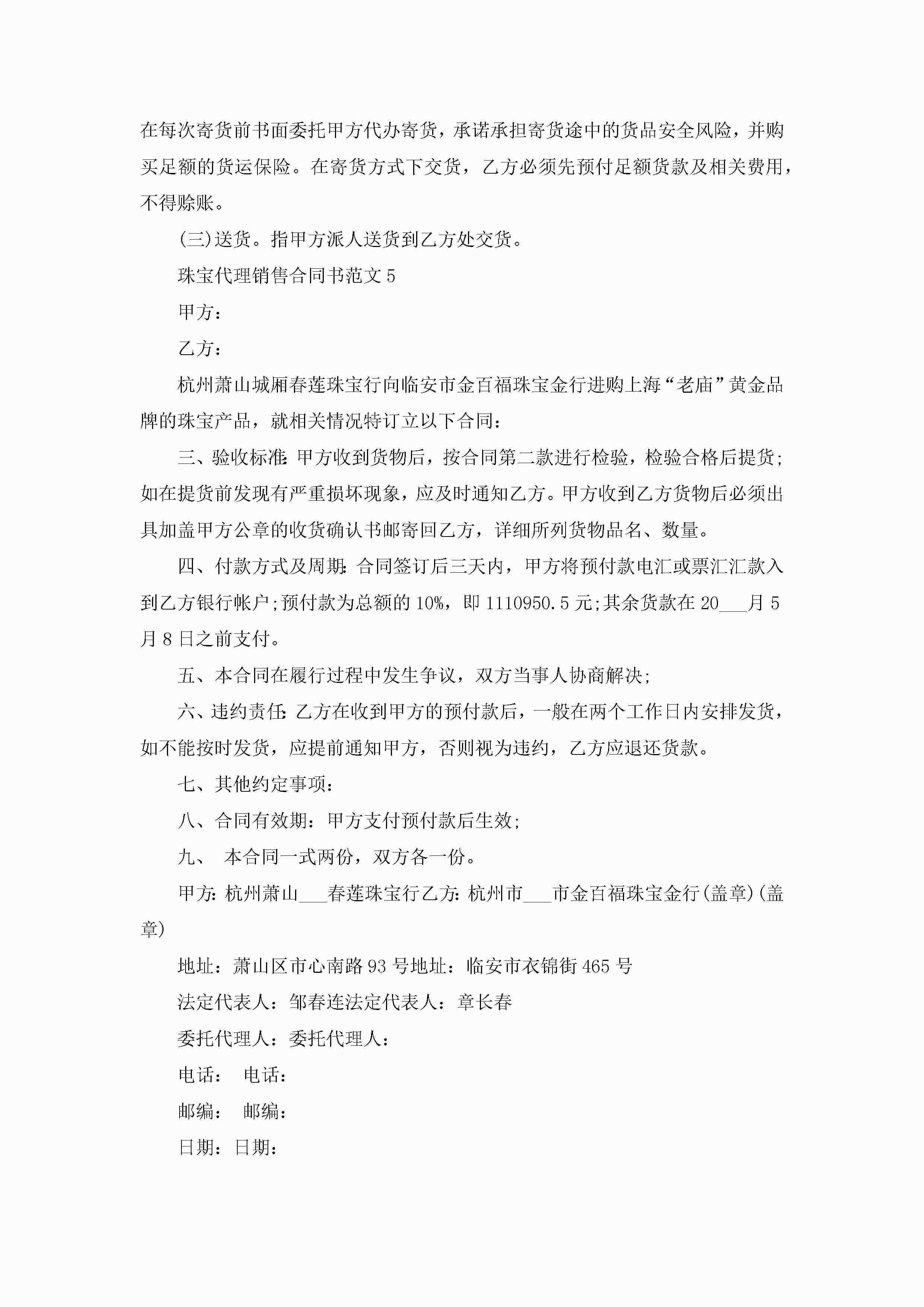 珠宝代理销售合同书范文5篇jugei3月23日 01:40发布关注206 珠宝代理销售合同书范文5篇此内容为付费资源,请付费后查看¥10.9 单篇文档限时特惠¥15个人会员开通企业会员开通立即下载无需登陆!可直接快捷下载单个模板付费资源© 版权声明THE ENDWord模板# 实用文档# 实用模板# 合同模板# 销售合同 如有问题,可点击最底部“联系我们”联系客服 分享QQ空间微博QQ好友海报分享复制链接收藏
