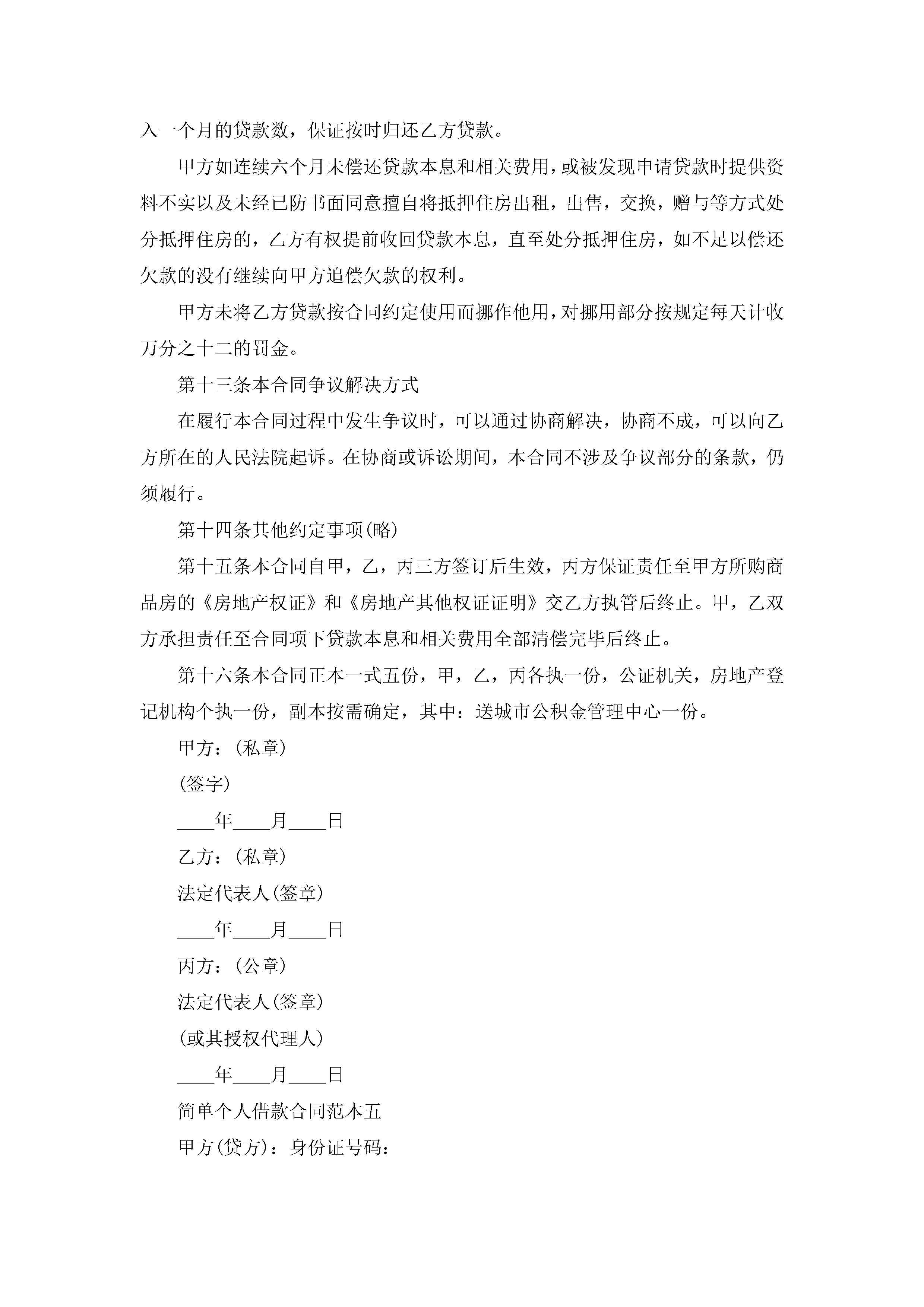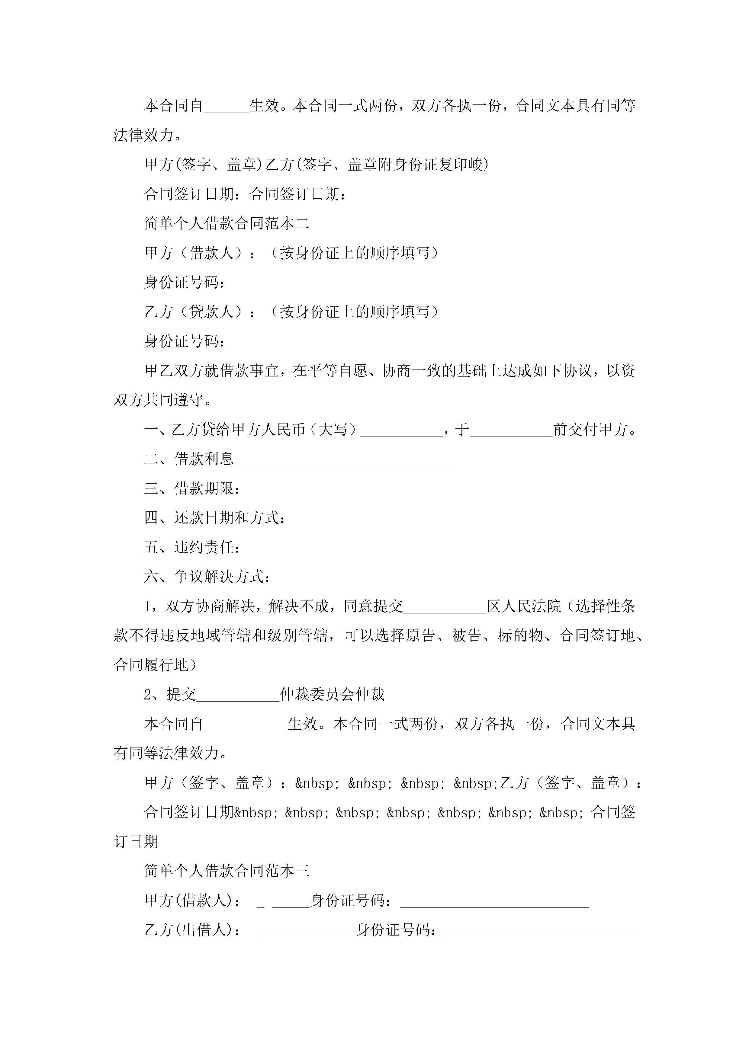 简单个人借款合同范本5篇jugei3月23日 01:40发布关注192 简单个人借款合同范本5篇此内容为付费资源,请付费后查看¥10.9 单篇文档限时特惠¥15个人会员开通企业会员开通立即下载无需登陆!可直接快捷下载单个模板付费资源© 版权声明THE ENDWord模板# 实用文档# 实用模板# 合同模板# 借款合同 如有问题,可点击最底部“联系我们”联系客服 分享QQ空间微博QQ好友海报分享复制链接收藏