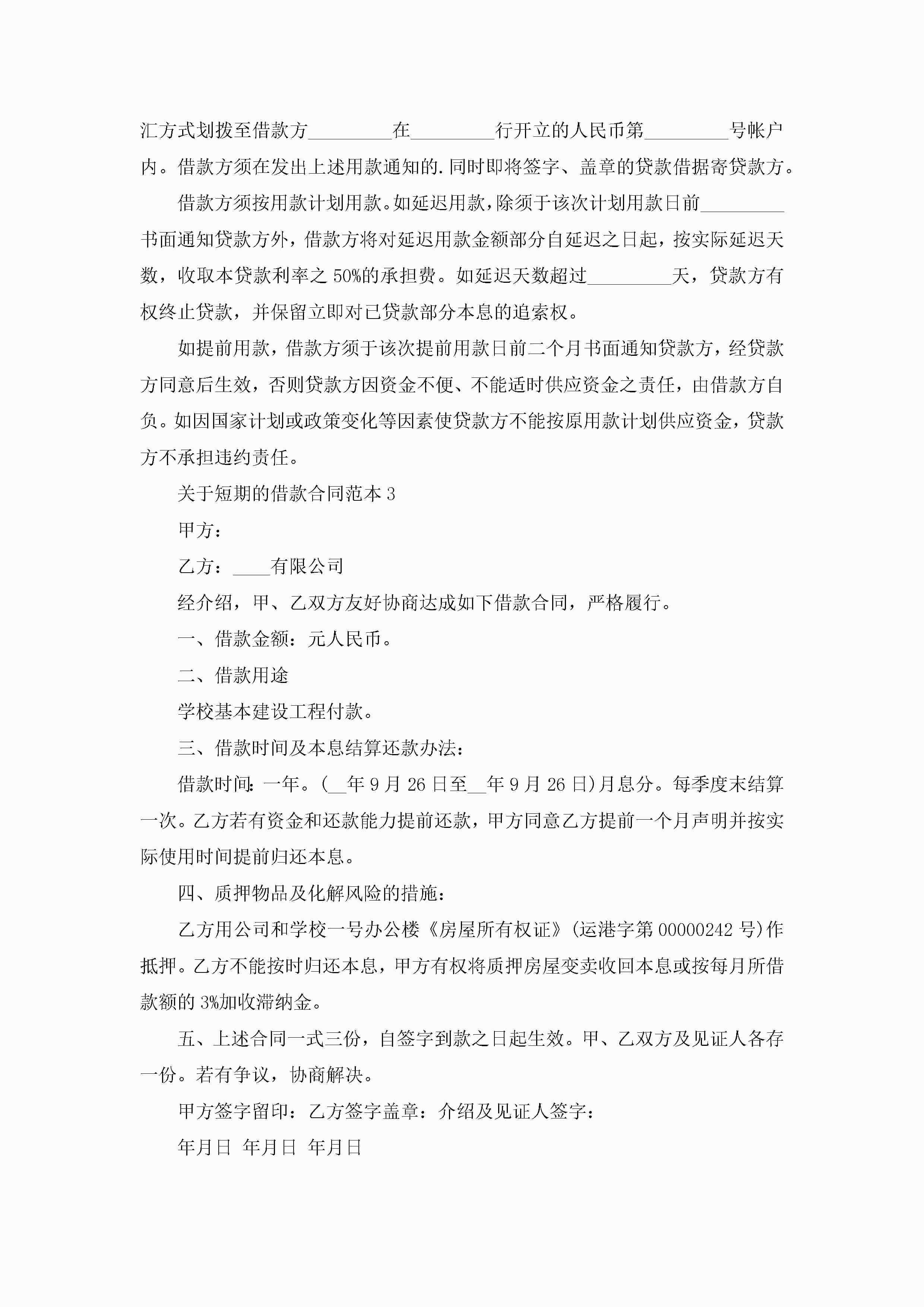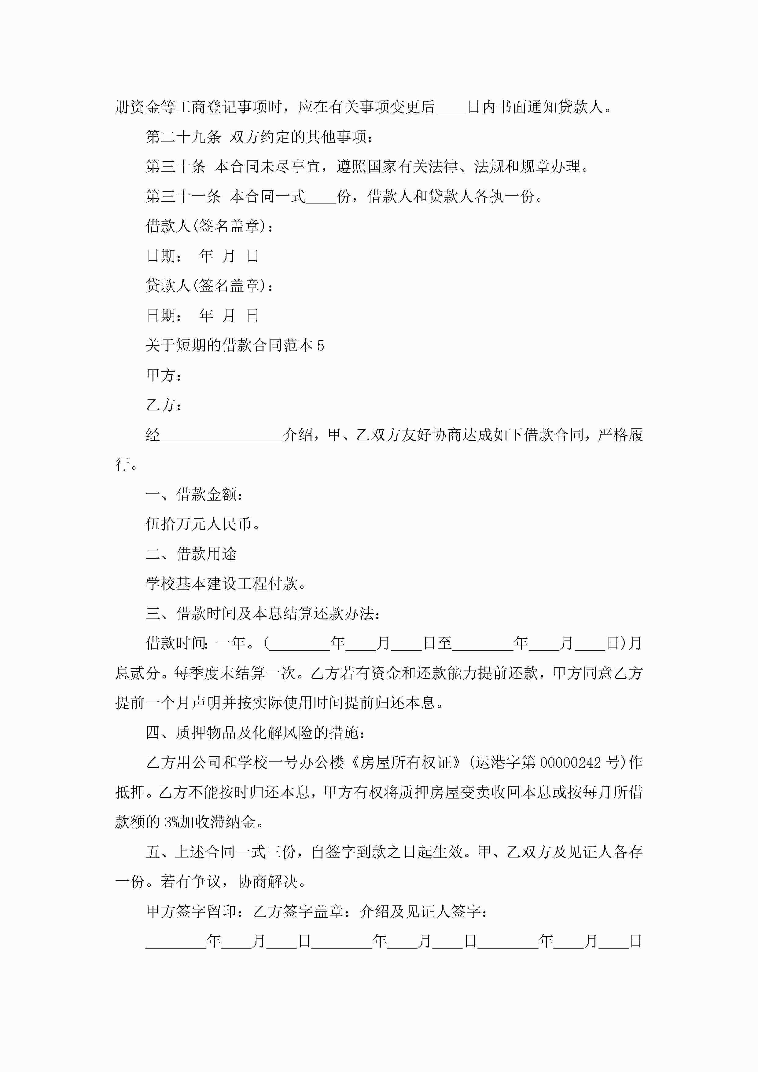关于短期的借款合同范本5篇jugei3月23日 01:40发布关注189 关于短期的借款合同范本5篇此内容为付费资源,请付费后查看¥10.9 单篇文档限时特惠¥15个人会员开通企业会员开通立即下载无需登陆!可直接快捷下载单个模板付费资源© 版权声明THE ENDWord模板# 实用文档# 实用模板# 合同模板# 借款合同 如有问题,可点击最底部“联系我们”联系客服 分享QQ空间微博QQ好友海报分享复制链接收藏