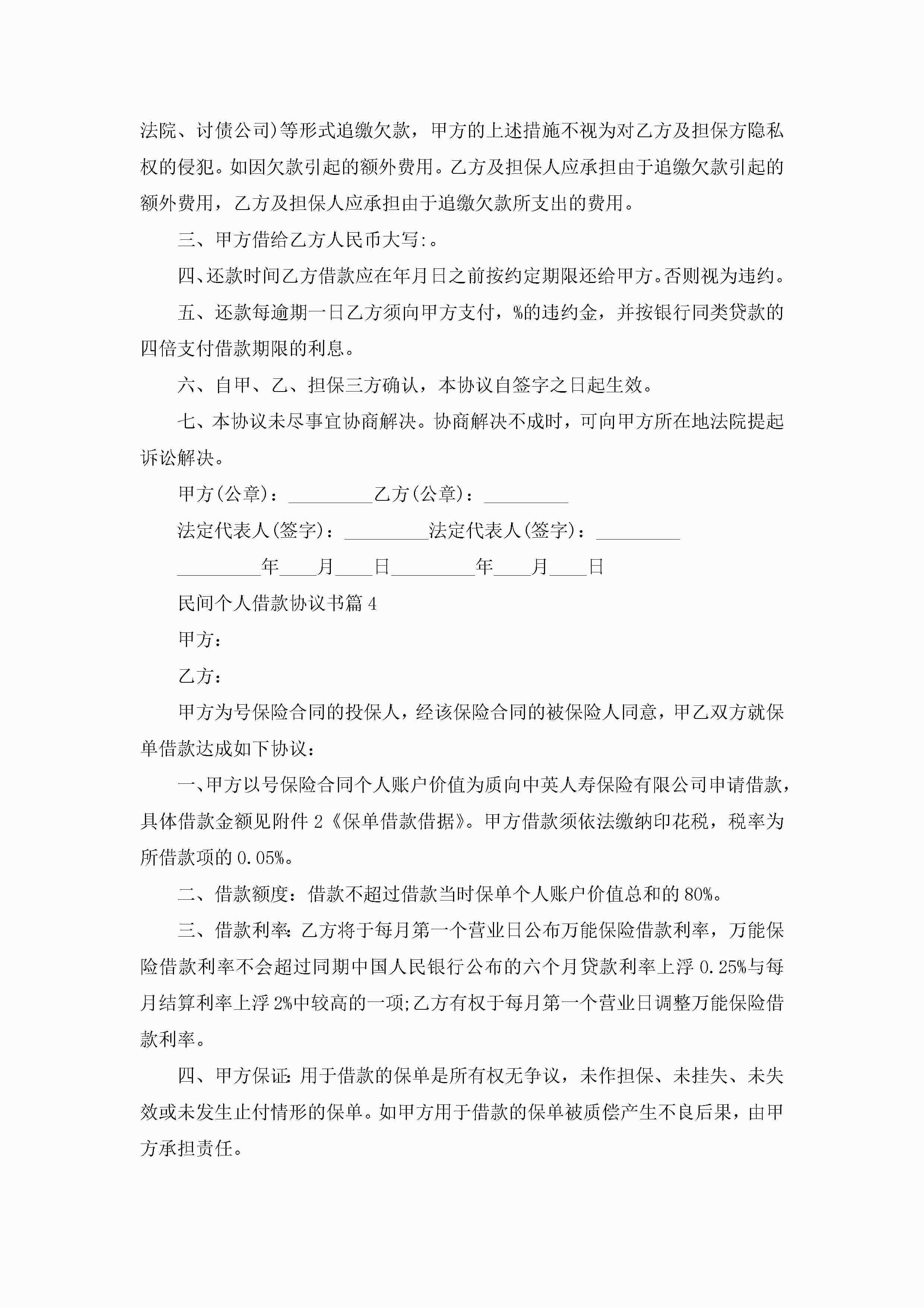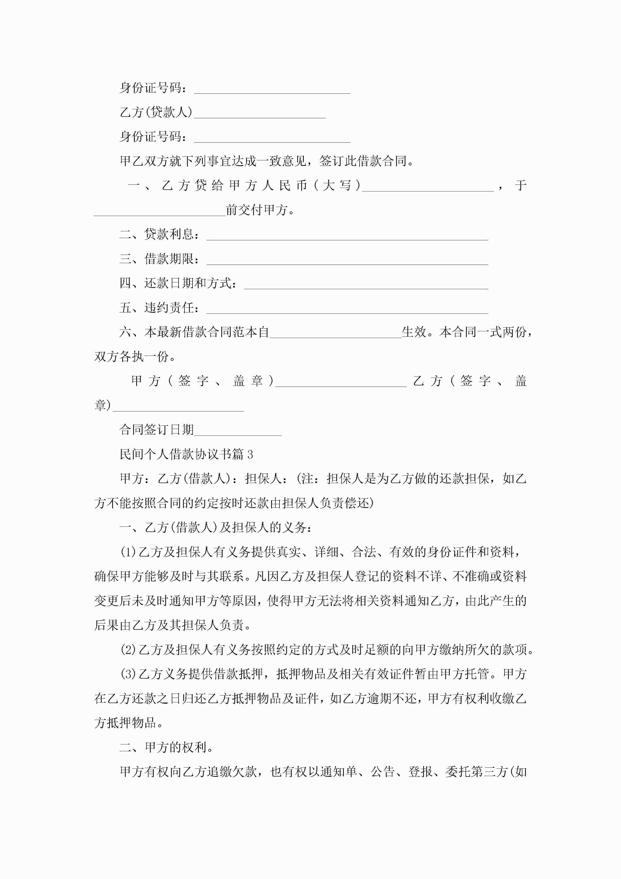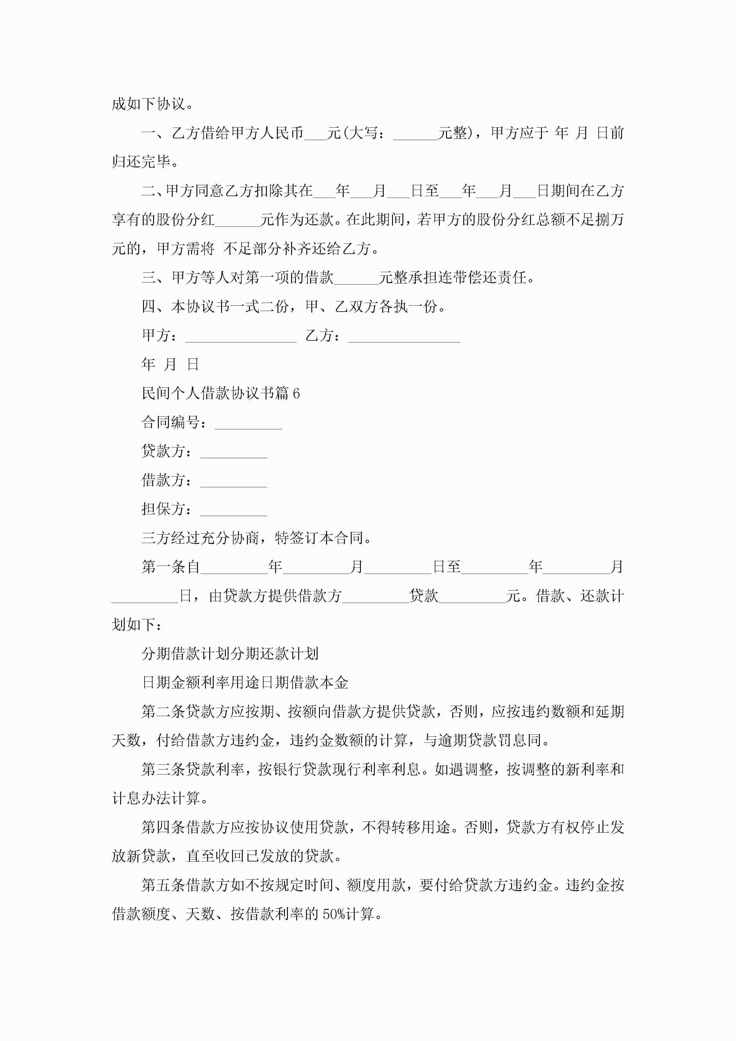民间个人借款协议书模板大全jugei3月23日 01:40发布关注262 民间个人借款协议书模板大全此内容为付费资源,请付费后查看¥10.9 单篇文档限时特惠¥15个人会员开通企业会员开通立即下载无需登陆!可直接快捷下载单个模板付费资源© 版权声明THE ENDWord模板# 实用文档# 实用模板# 合同模板# 借款合同 如有问题,可点击最底部“联系我们”联系客服 分享QQ空间微博QQ好友海报分享复制链接收藏