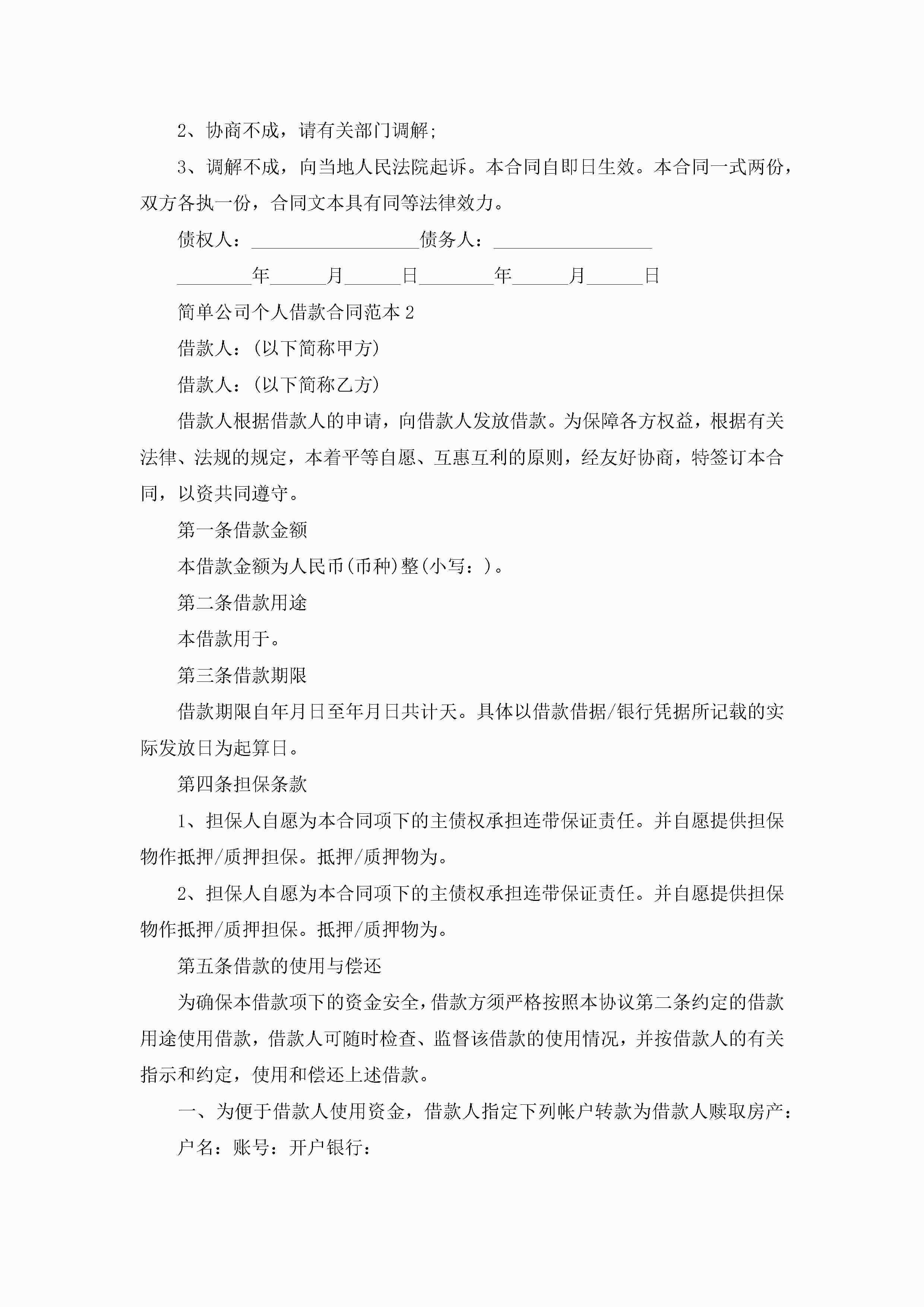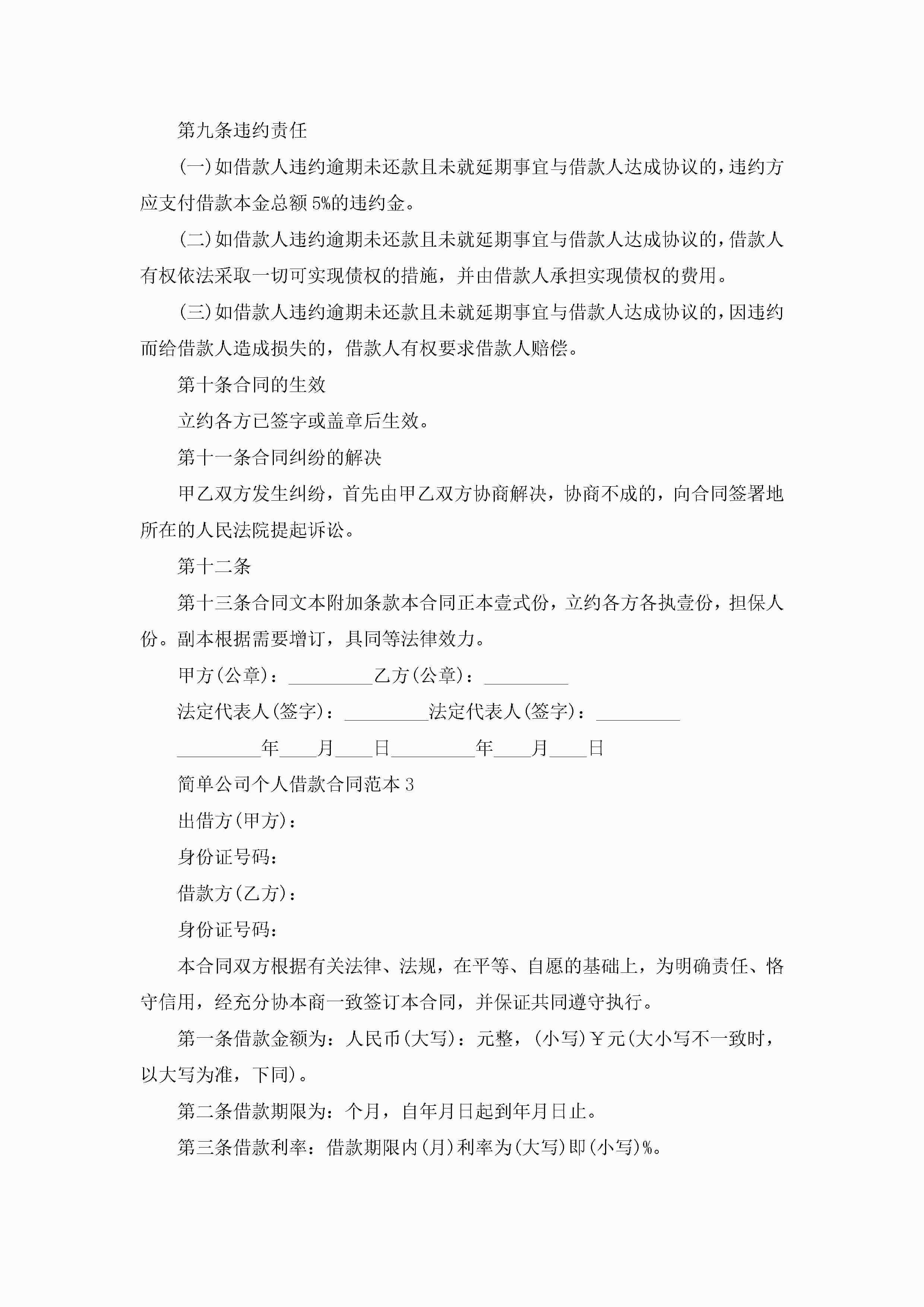 简单公司个人借款合同范本5篇jugei3月23日 01:40发布关注208 简单公司个人借款合同范本5篇此内容为付费资源,请付费后查看¥10.9 单篇文档限时特惠¥15个人会员开通企业会员开通立即下载无需登陆!可直接快捷下载单个模板付费资源© 版权声明THE ENDWord模板# 实用文档# 实用模板# 合同模板# 借款合同 如有问题,可点击最底部“联系我们”联系客服 分享QQ空间微博QQ好友海报分享复制链接收藏