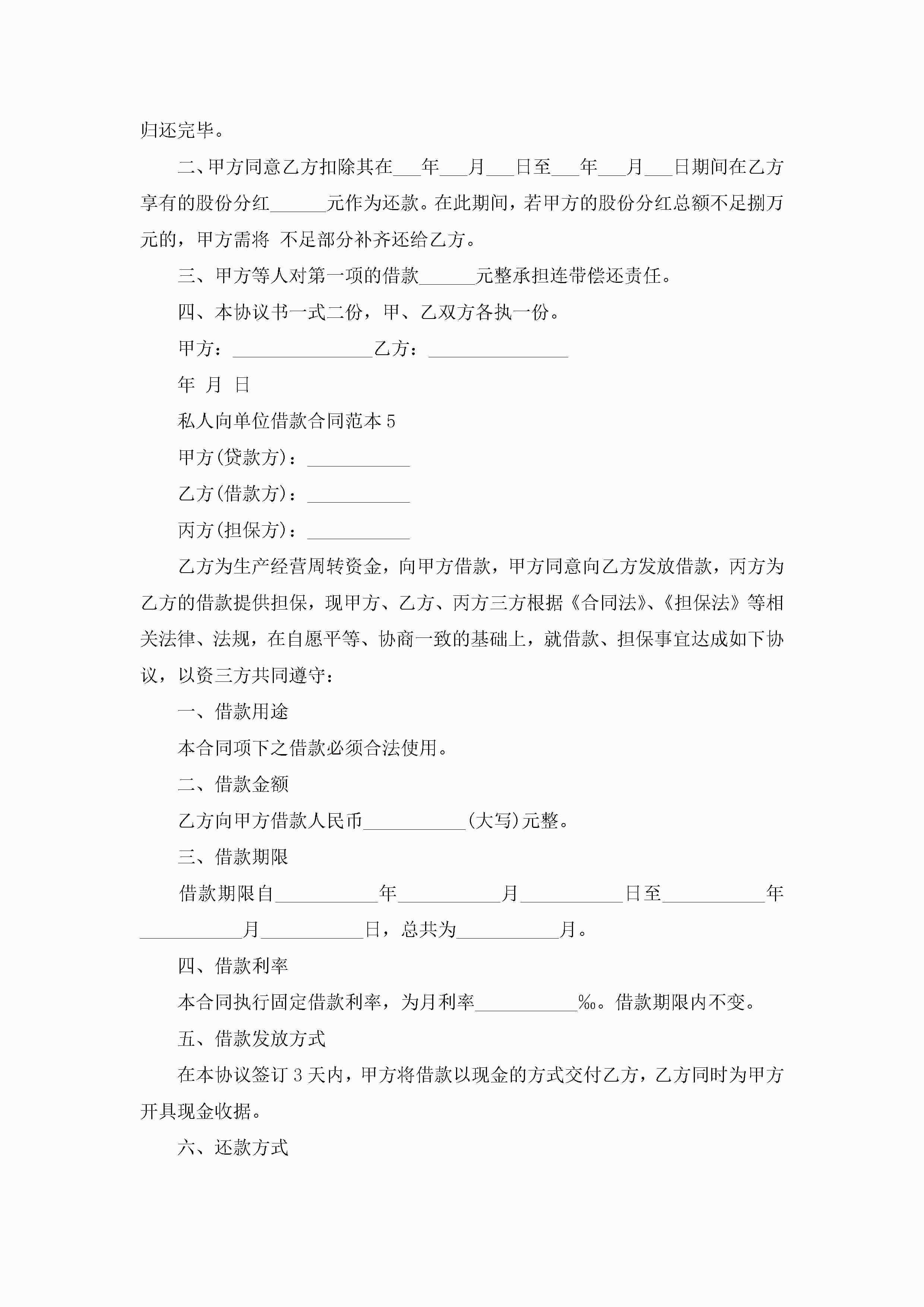 私人向单位借款合同范本5篇jugei3月23日 01:40发布关注196 私人向单位借款合同范本5篇此内容为付费资源,请付费后查看¥10.9 单篇文档限时特惠¥15个人会员开通企业会员开通立即下载无需登陆!可直接快捷下载单个模板付费资源© 版权声明THE ENDWord模板# 实用文档# 实用模板# 合同模板# 借款合同 如有问题,可点击最底部“联系我们”联系客服 分享QQ空间微博QQ好友海报分享复制链接收藏