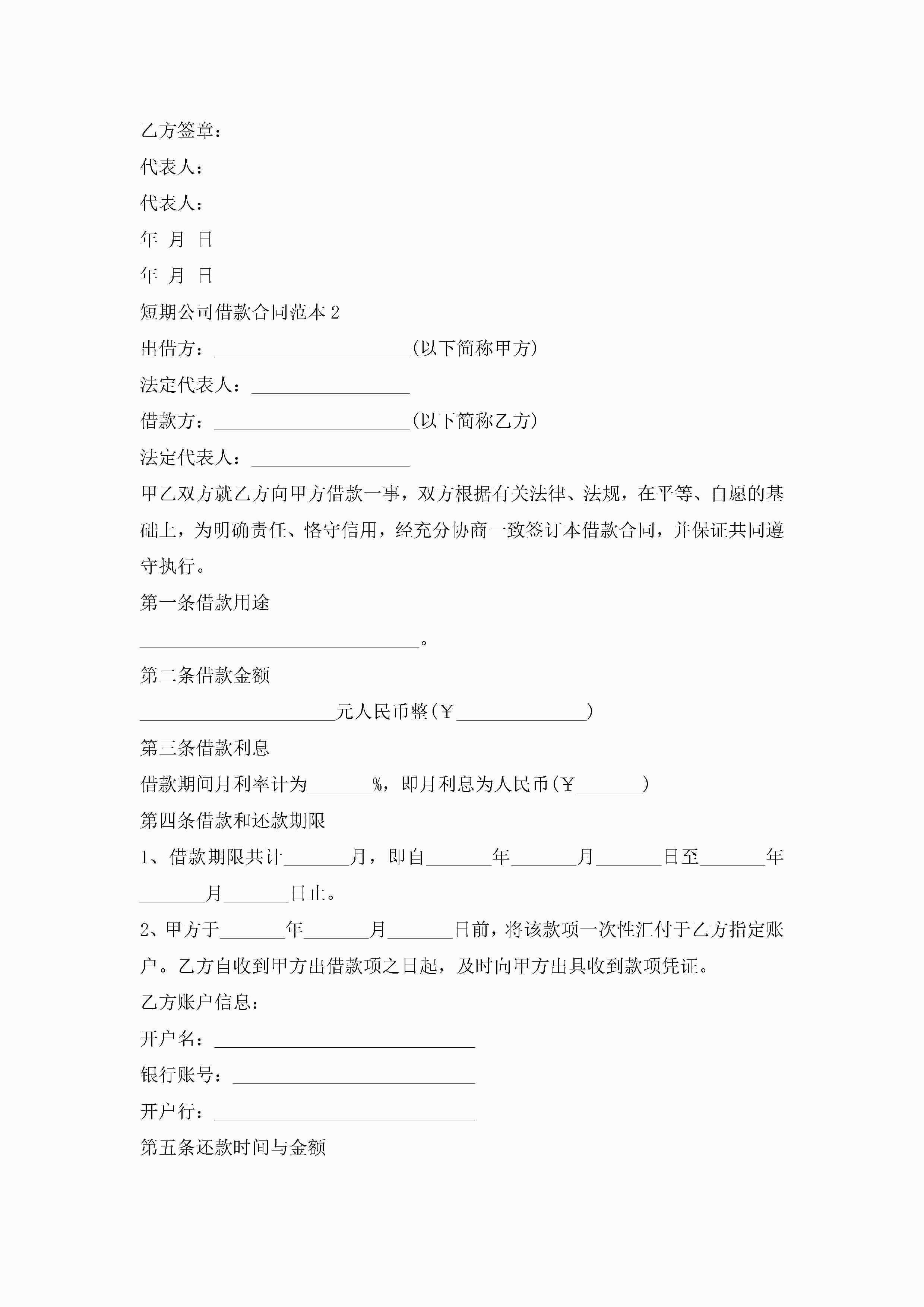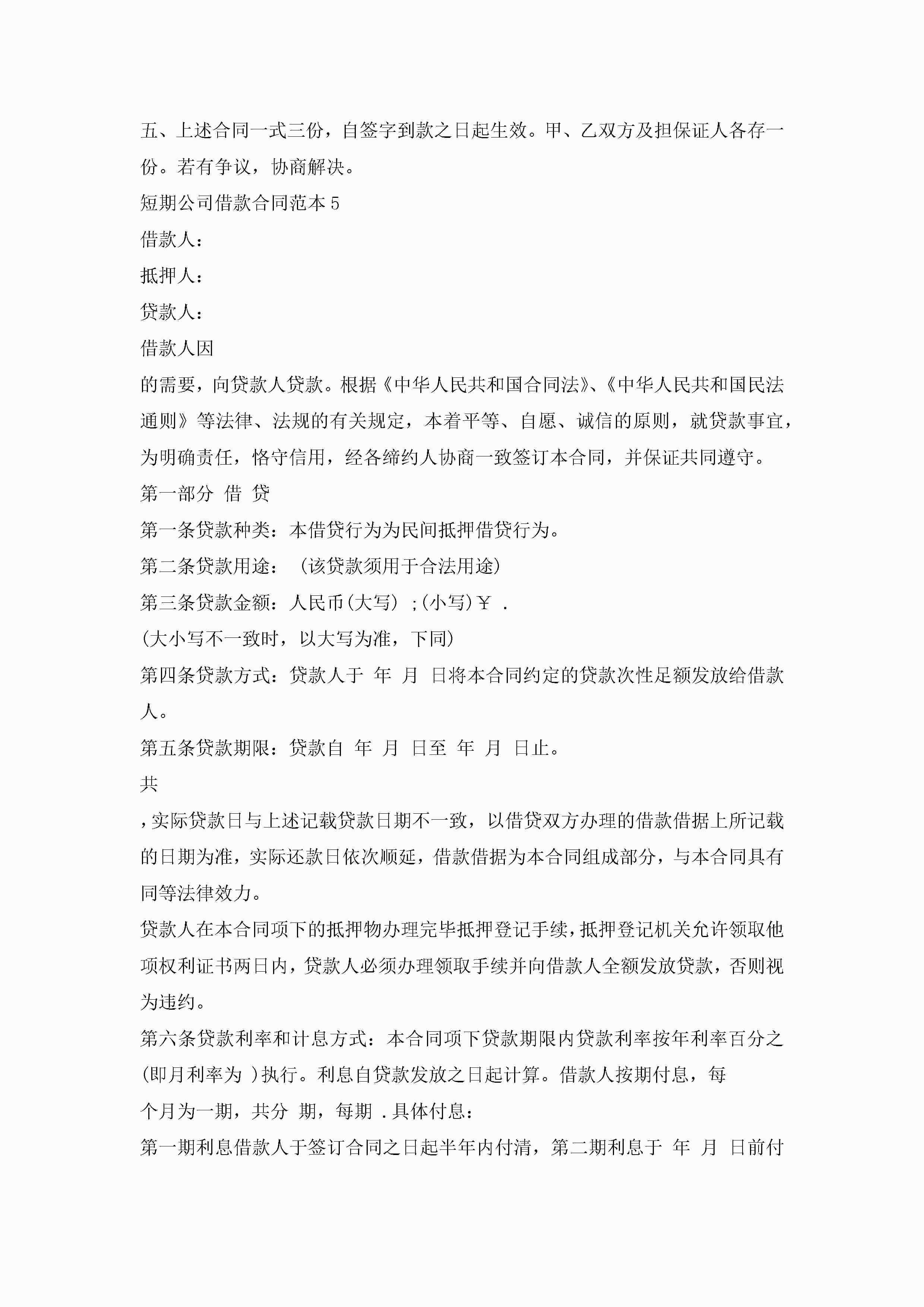 短期公司借款合同范本5篇jugei3月23日 01:40发布关注203 短期公司借款合同范本5篇此内容为付费资源,请付费后查看¥10.9 单篇文档限时特惠¥15个人会员开通企业会员开通立即下载无需登陆!可直接快捷下载单个模板付费资源© 版权声明THE ENDWord模板# 实用文档# 实用模板# 合同模板# 借款合同 如有问题,可点击最底部“联系我们”联系客服 分享QQ空间微博QQ好友海报分享复制链接收藏