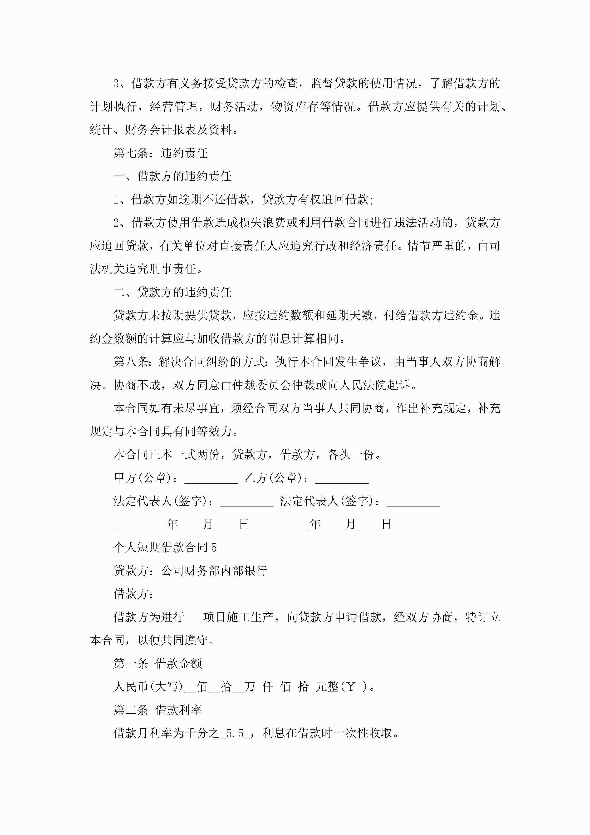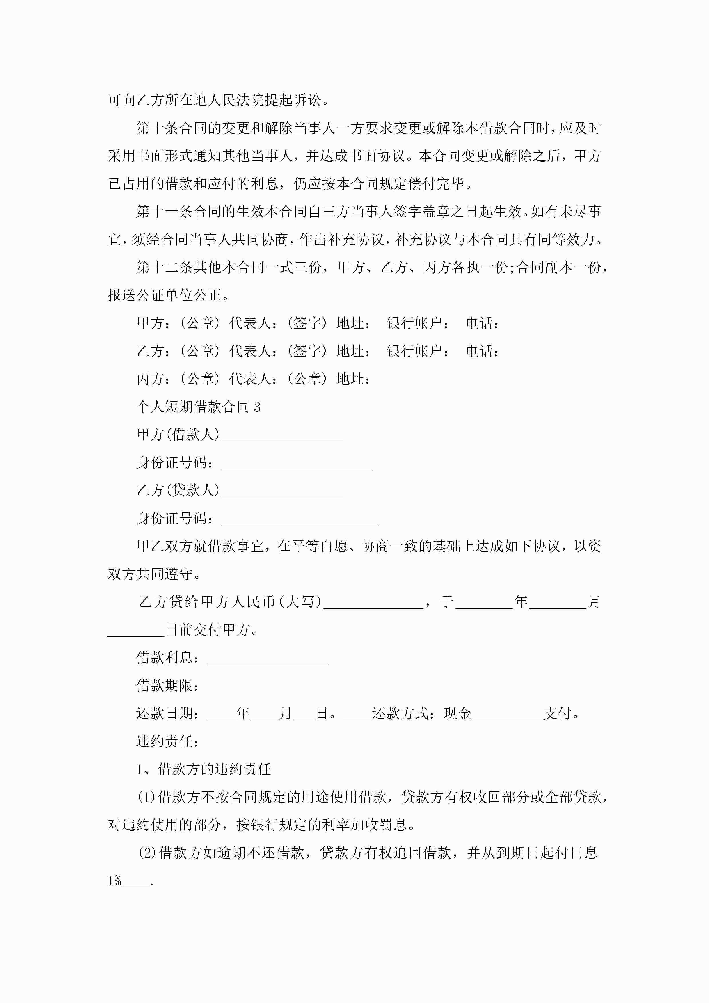 个人短期借款合同5篇怎么写jugei3月23日 01:40发布关注189 个人短期借款合同5篇怎么写此内容为付费资源,请付费后查看¥10.9 单篇文档限时特惠¥15个人会员开通企业会员开通立即下载无需登陆!可直接快捷下载单个模板付费资源© 版权声明THE ENDWord模板# 实用文档# 实用模板# 合同模板# 借款合同 如有问题,可点击最底部“联系我们”联系客服 分享QQ空间微博QQ好友海报分享复制链接收藏
