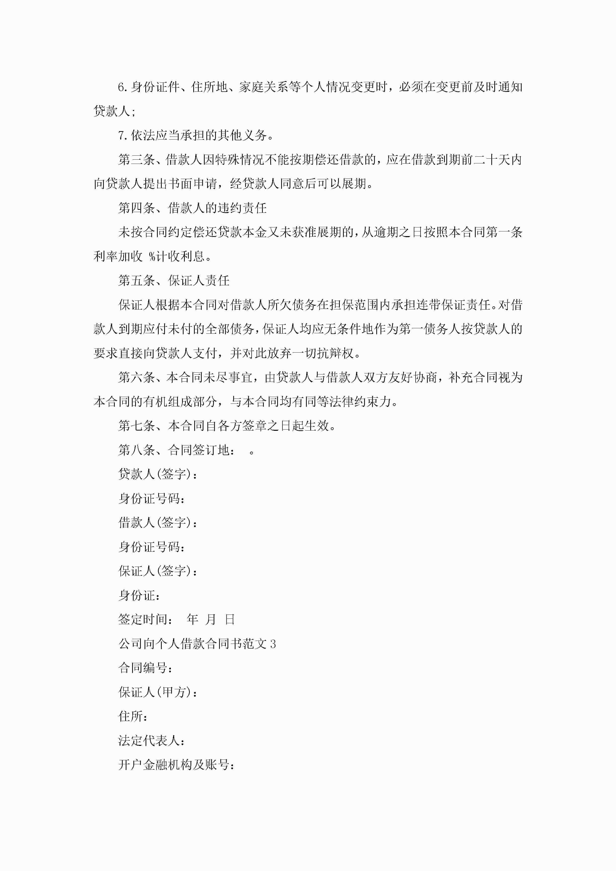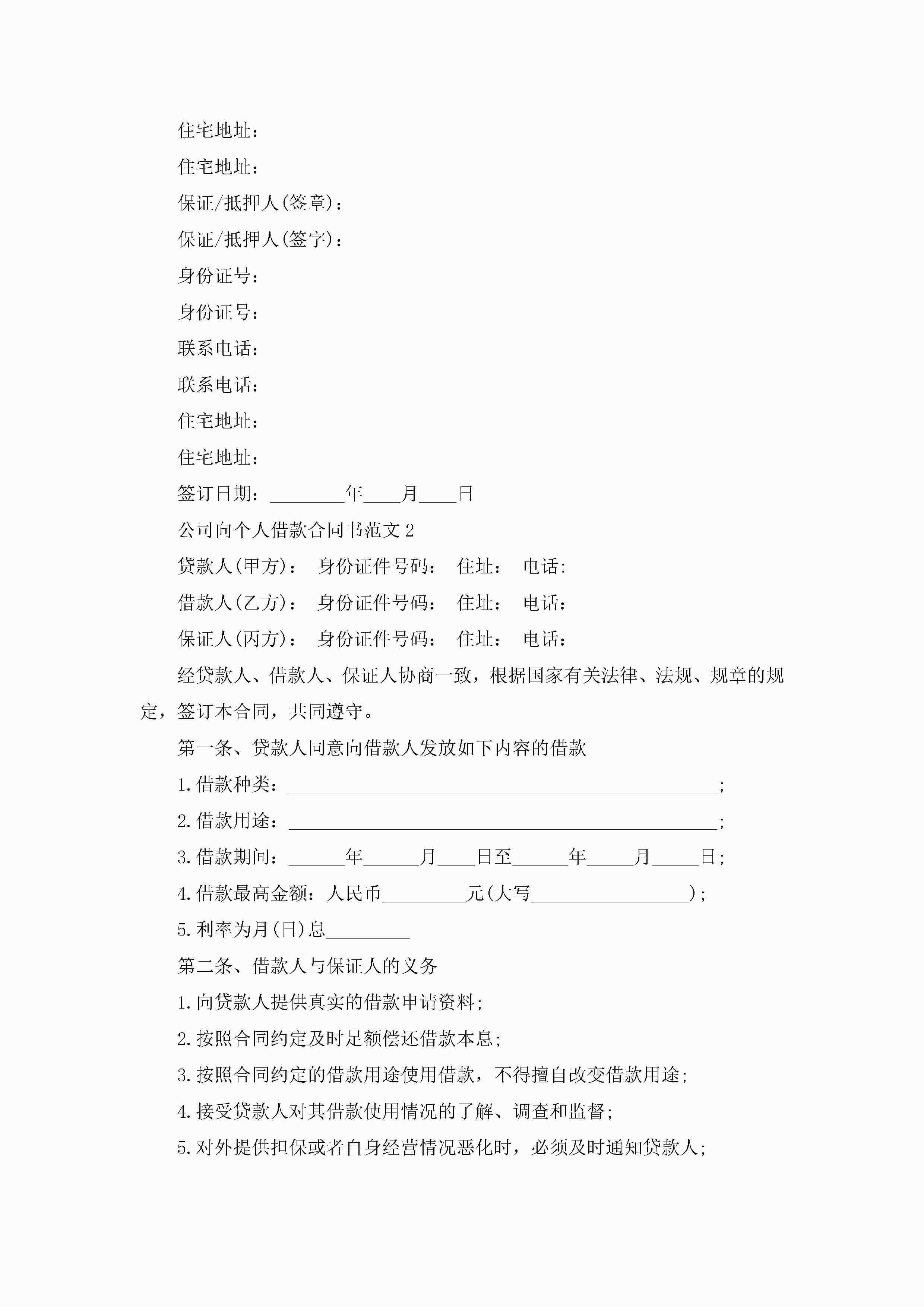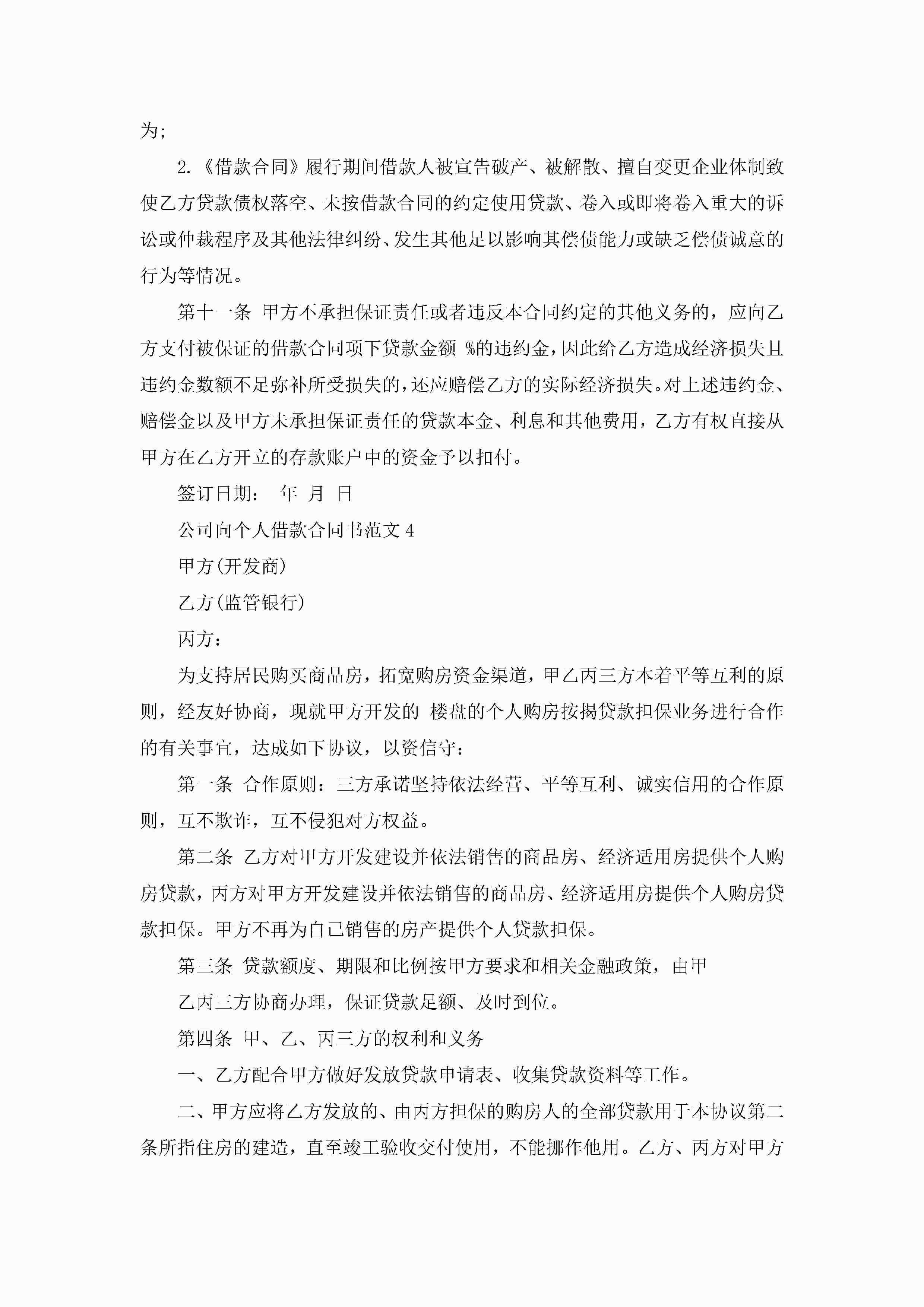 公司向个人借款合同书范文5篇jugei3月23日 01:40发布关注197 公司向个人借款合同书范文5篇此内容为付费资源,请付费后查看¥10.9 单篇文档限时特惠¥15个人会员开通企业会员开通立即下载无需登陆!可直接快捷下载单个模板付费资源© 版权声明THE ENDWord模板# 实用文档# 实用模板# 合同模板# 借款合同 如有问题,可点击最底部“联系我们”联系客服 分享QQ空间微博QQ好友海报分享复制链接收藏