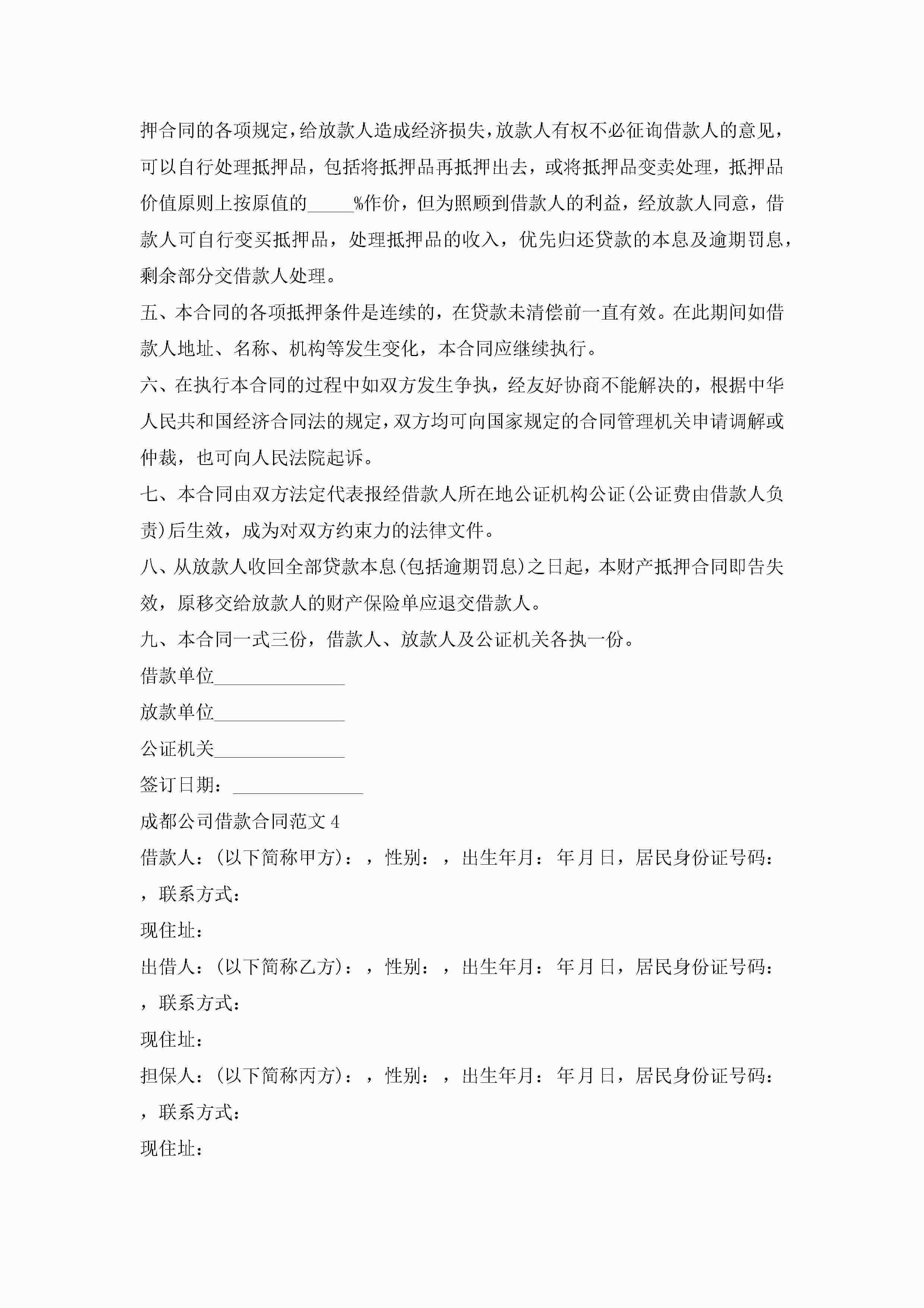 成都公司借款合同范文5篇jugei3月23日 01:40发布关注187 成都公司借款合同范文5篇此内容为付费资源,请付费后查看¥10.9 单篇文档限时特惠¥15个人会员开通企业会员开通立即下载无需登陆!可直接快捷下载单个模板付费资源© 版权声明THE ENDWord模板# 实用文档# 实用模板# 合同模板# 借款合同 如有问题,可点击最底部“联系我们”联系客服 分享QQ空间微博QQ好友海报分享复制链接收藏