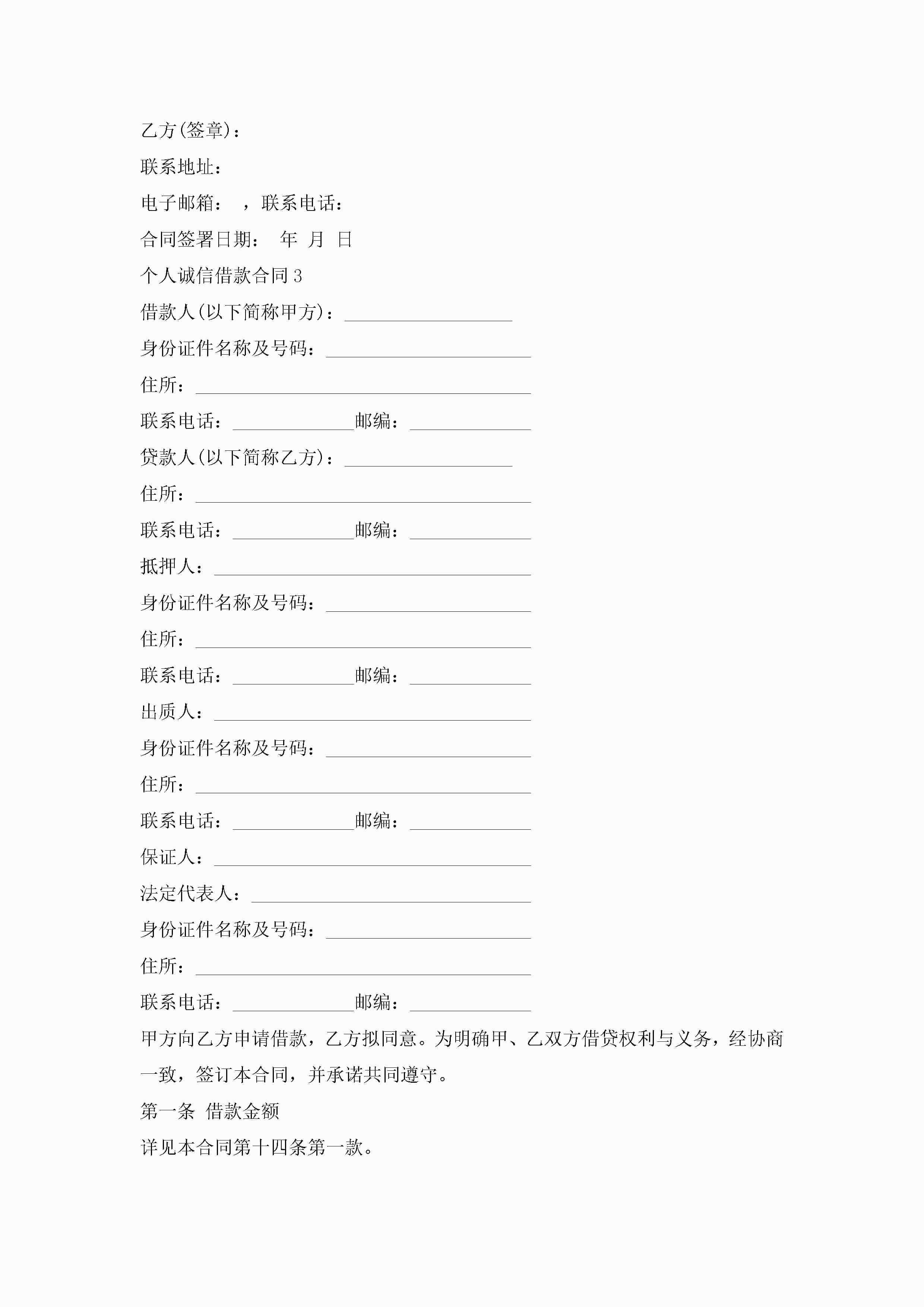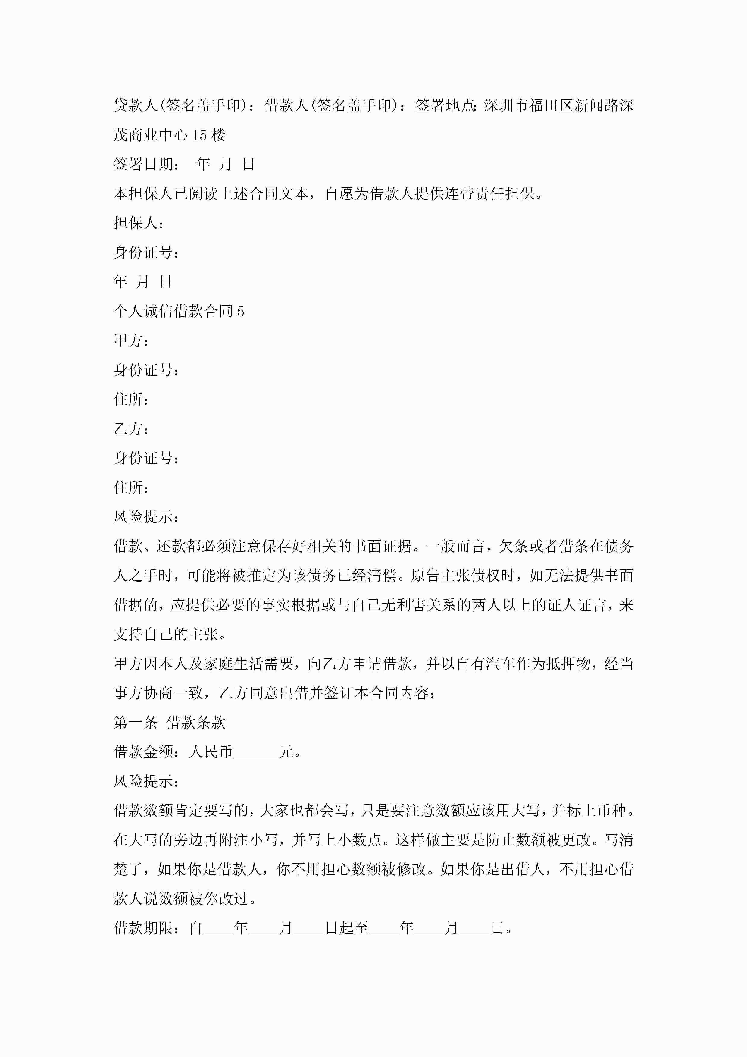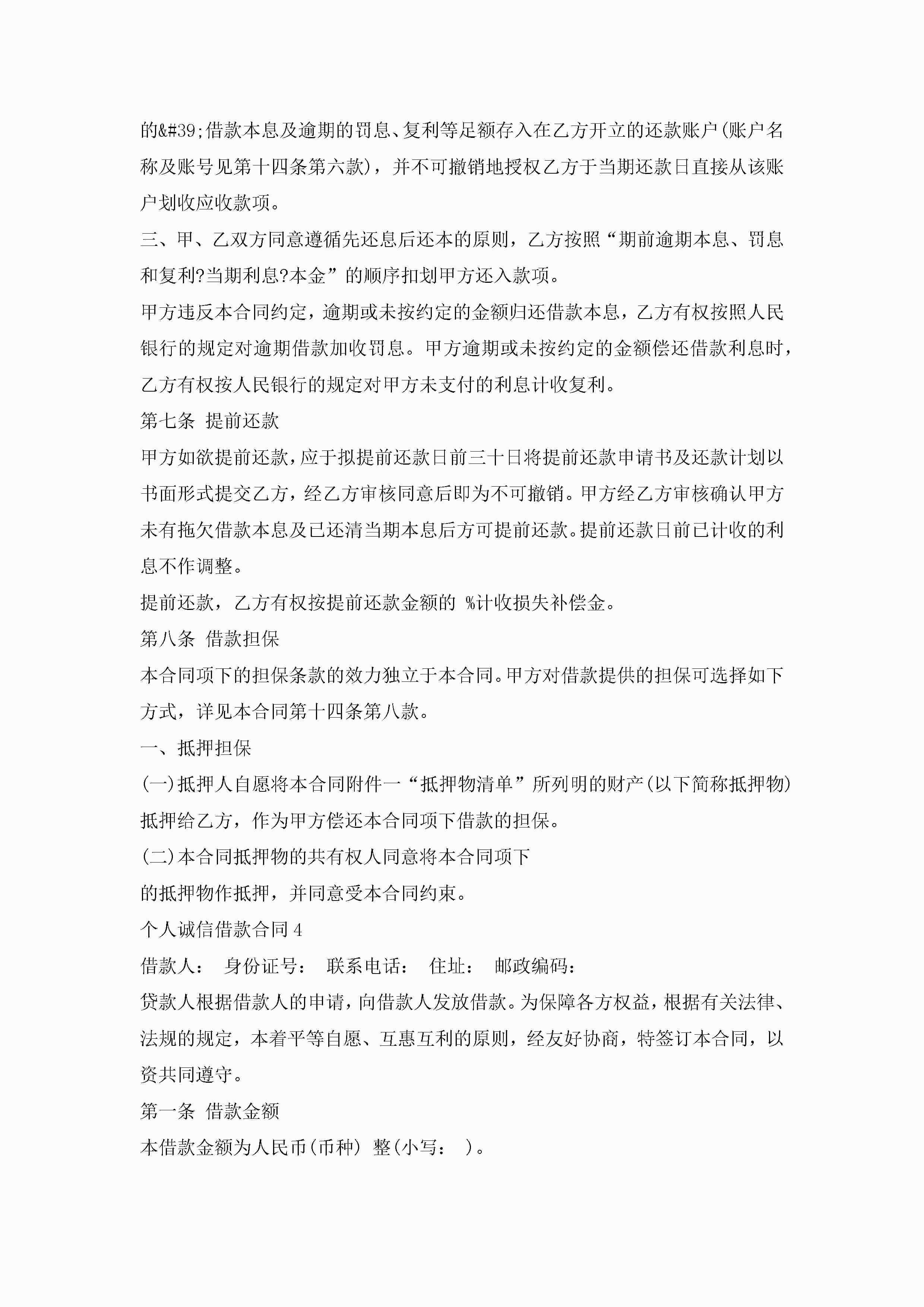 关于个人诚信借款合同5篇jugei3月23日 01:40发布关注267 关于个人诚信借款合同5篇此内容为付费资源,请付费后查看¥10.9 单篇文档限时特惠¥15个人会员开通企业会员开通立即下载无需登陆!可直接快捷下载单个模板付费资源© 版权声明THE ENDWord模板# 实用文档# 实用模板# 合同模板# 借款合同 如有问题,可点击最底部“联系我们”联系客服 分享QQ空间微博QQ好友海报分享复制链接收藏