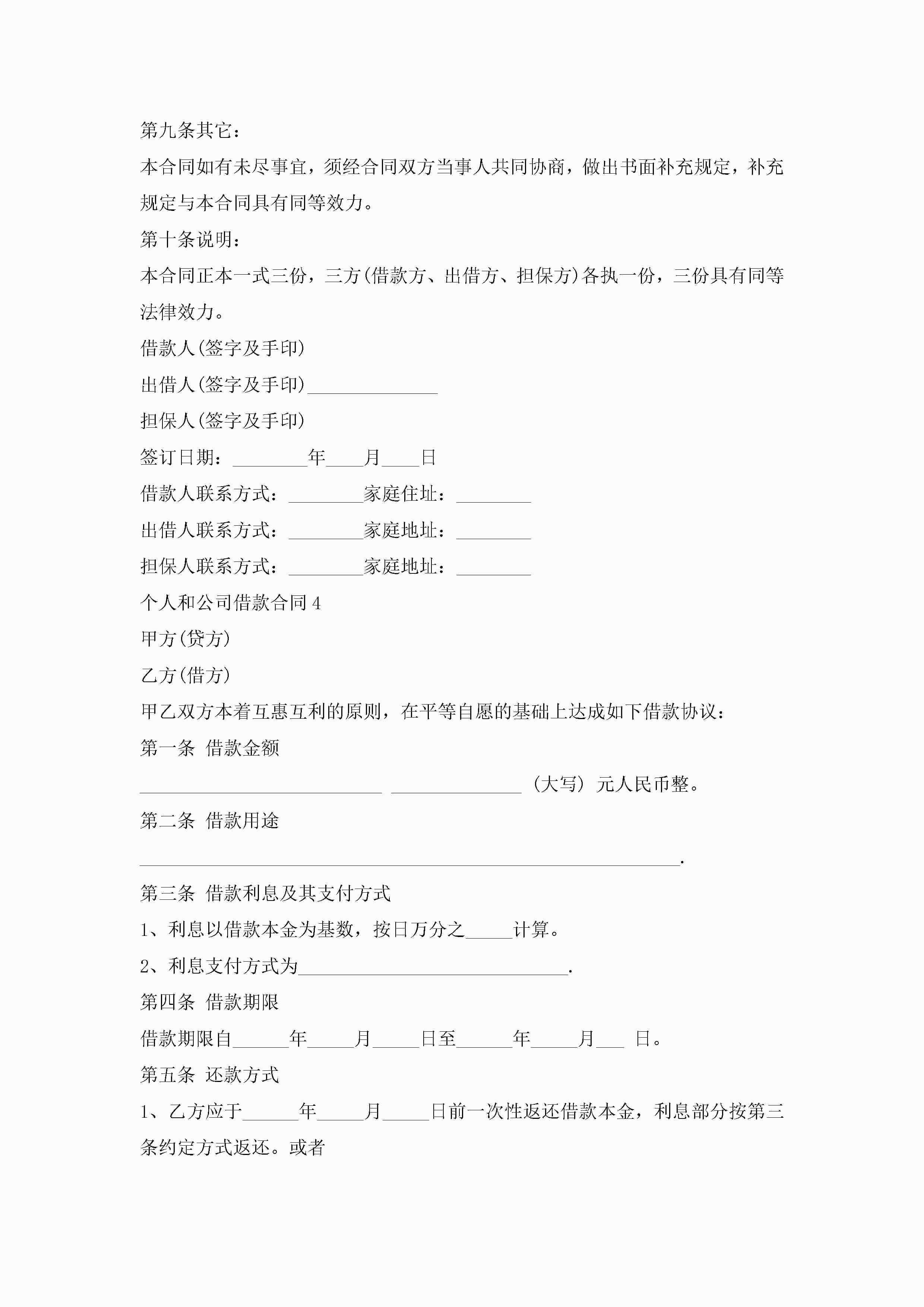 关于个人和公司借款合同5篇jugei3月23日 01:40发布关注219 关于个人和公司借款合同5篇此内容为付费资源,请付费后查看¥10.9 单篇文档限时特惠¥15个人会员开通企业会员开通立即下载无需登陆!可直接快捷下载单个模板付费资源© 版权声明THE ENDWord模板# 实用文档# 实用模板# 合同模板# 借款合同 如有问题,可点击最底部“联系我们”联系客服 分享QQ空间微博QQ好友海报分享复制链接收藏