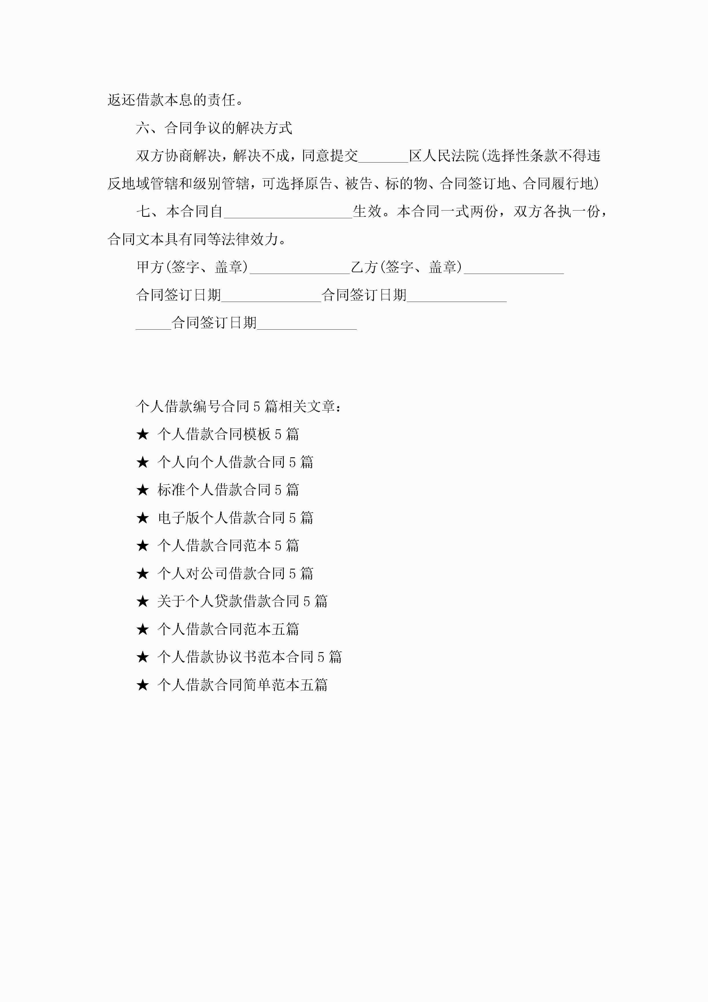 关于个人借款编号合同5篇jugei3月23日 01:40发布关注206 关于个人借款编号合同5篇此内容为付费资源,请付费后查看¥10.9 单篇文档限时特惠¥15个人会员开通企业会员开通立即下载无需登陆!可直接快捷下载单个模板付费资源© 版权声明THE ENDWord模板# 实用文档# 实用模板# 合同模板# 借款合同 如有问题,可点击最底部“联系我们”联系客服 分享QQ空间微博QQ好友海报分享复制链接收藏