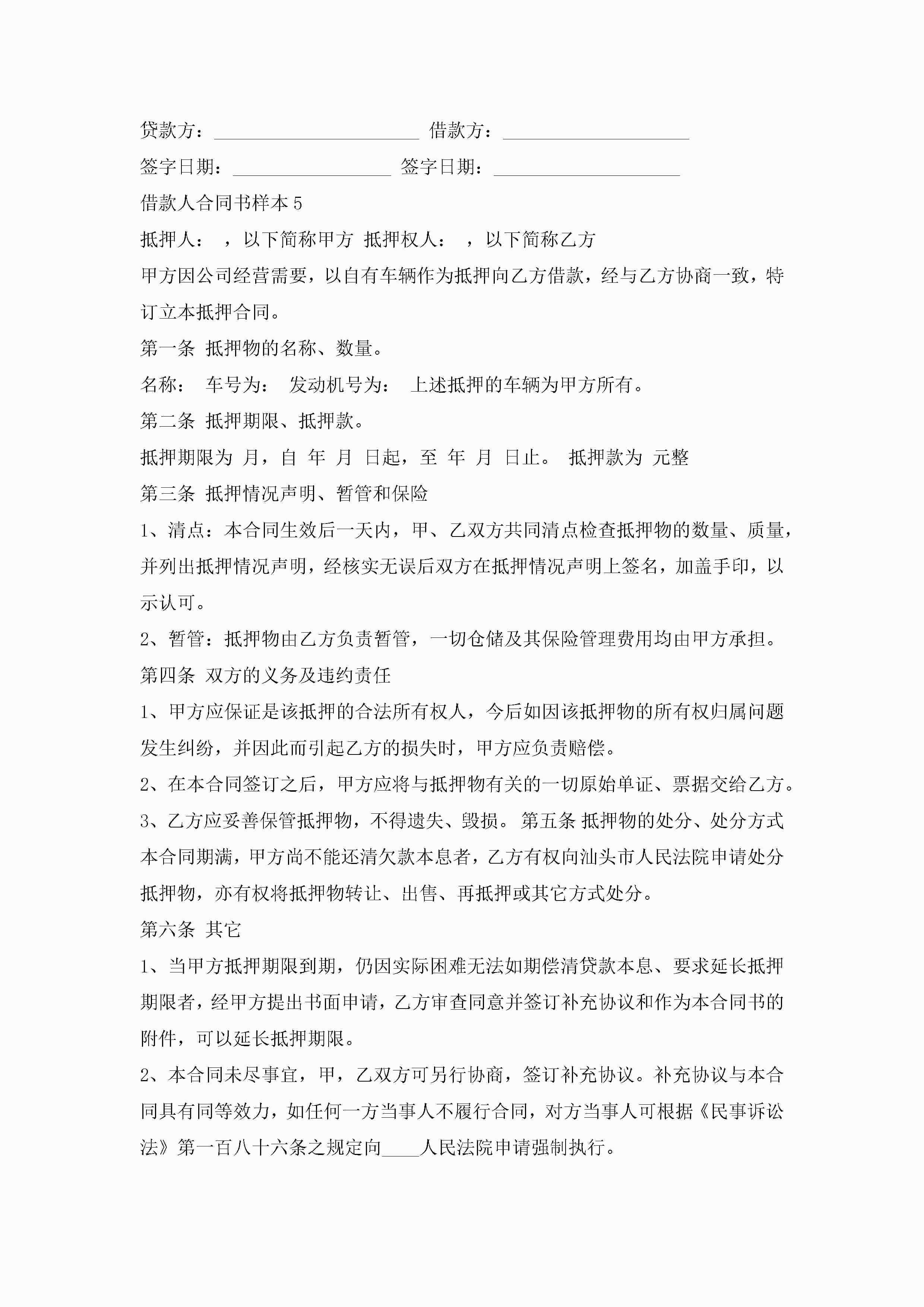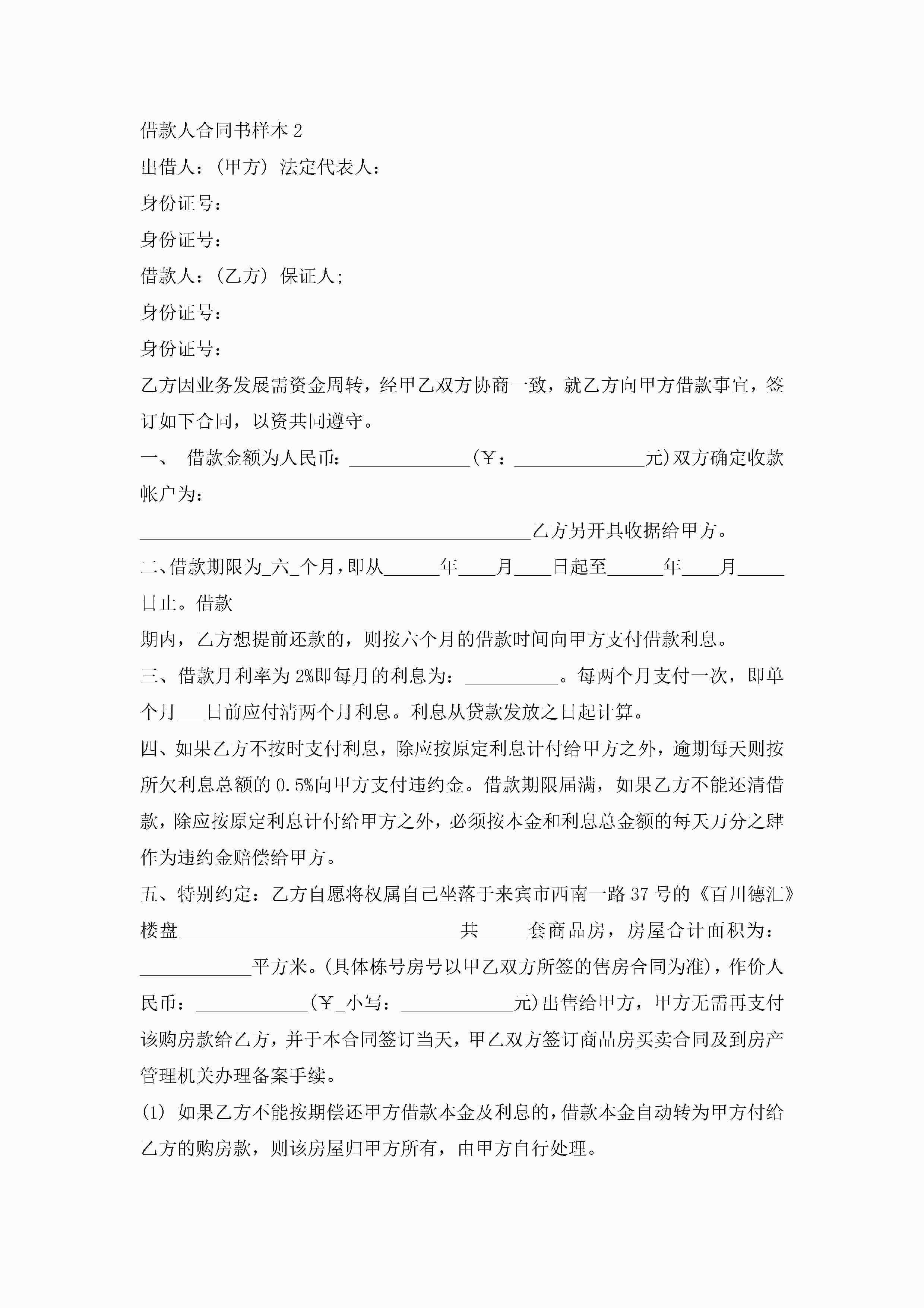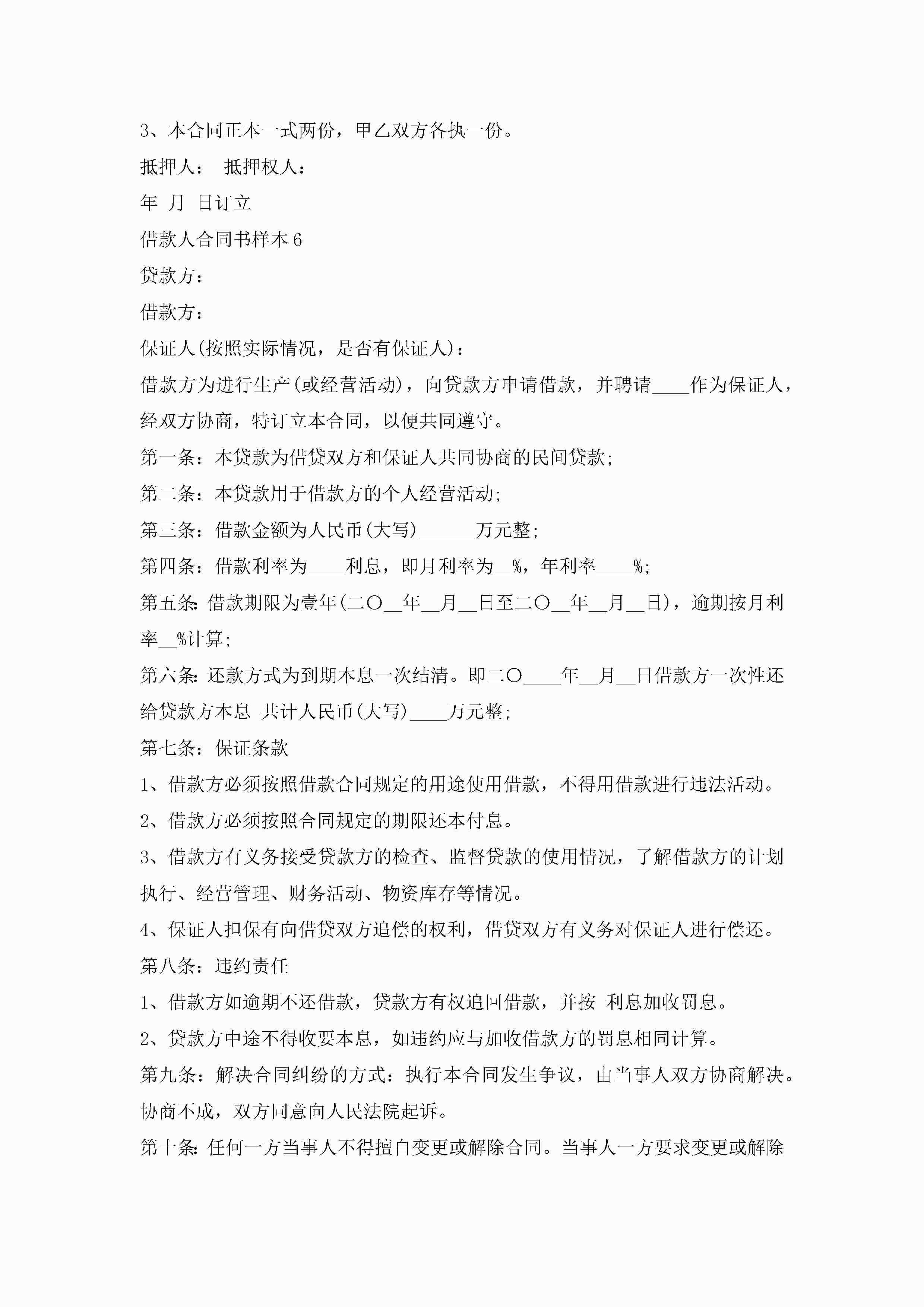 借款人合同书样本5篇jugei3月23日 01:40发布关注201 借款人合同书样本5篇此内容为付费资源,请付费后查看¥10.9 单篇文档限时特惠¥15个人会员开通企业会员开通立即下载无需登陆!可直接快捷下载单个模板付费资源© 版权声明THE ENDWord模板# 实用文档# 实用模板# 合同模板# 借款合同 如有问题,可点击最底部“联系我们”联系客服 分享QQ空间微博QQ好友海报分享复制链接收藏