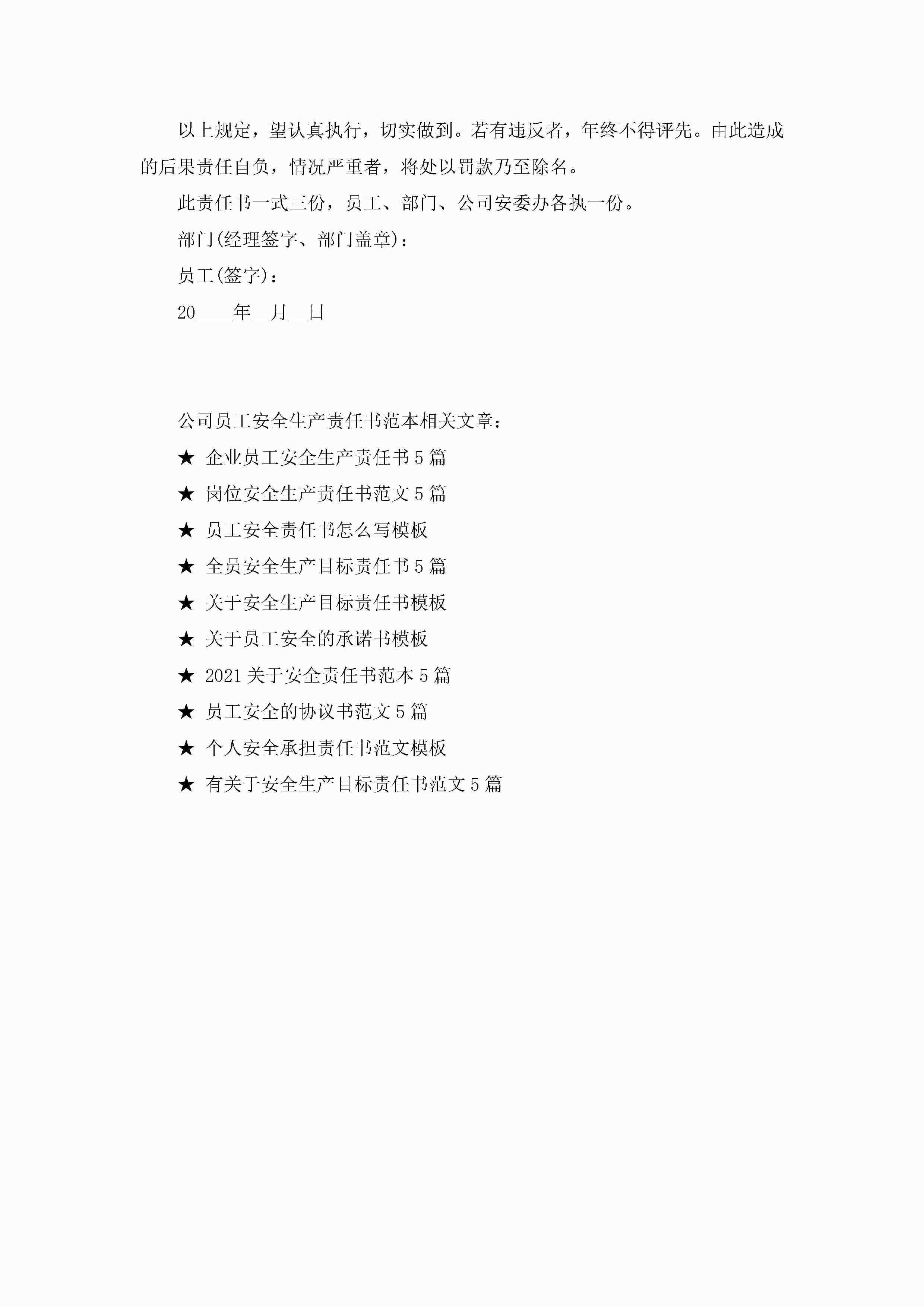 最新公司员工安全生产责任书范本jugei3月23日 01:40发布关注322 最新公司员工安全生产责任书范本此内容为付费资源,请付费后查看¥10.9 单篇文档限时特惠¥15个人会员开通企业会员开通立即下载无需登陆!可直接快捷下载单个模板付费资源© 版权声明THE ENDWord模板# 实用文档# 实用模板# 信函模板# 责任书 如有问题,可点击最底部“联系我们”联系客服 分享QQ空间微博QQ好友海报分享复制链接收藏