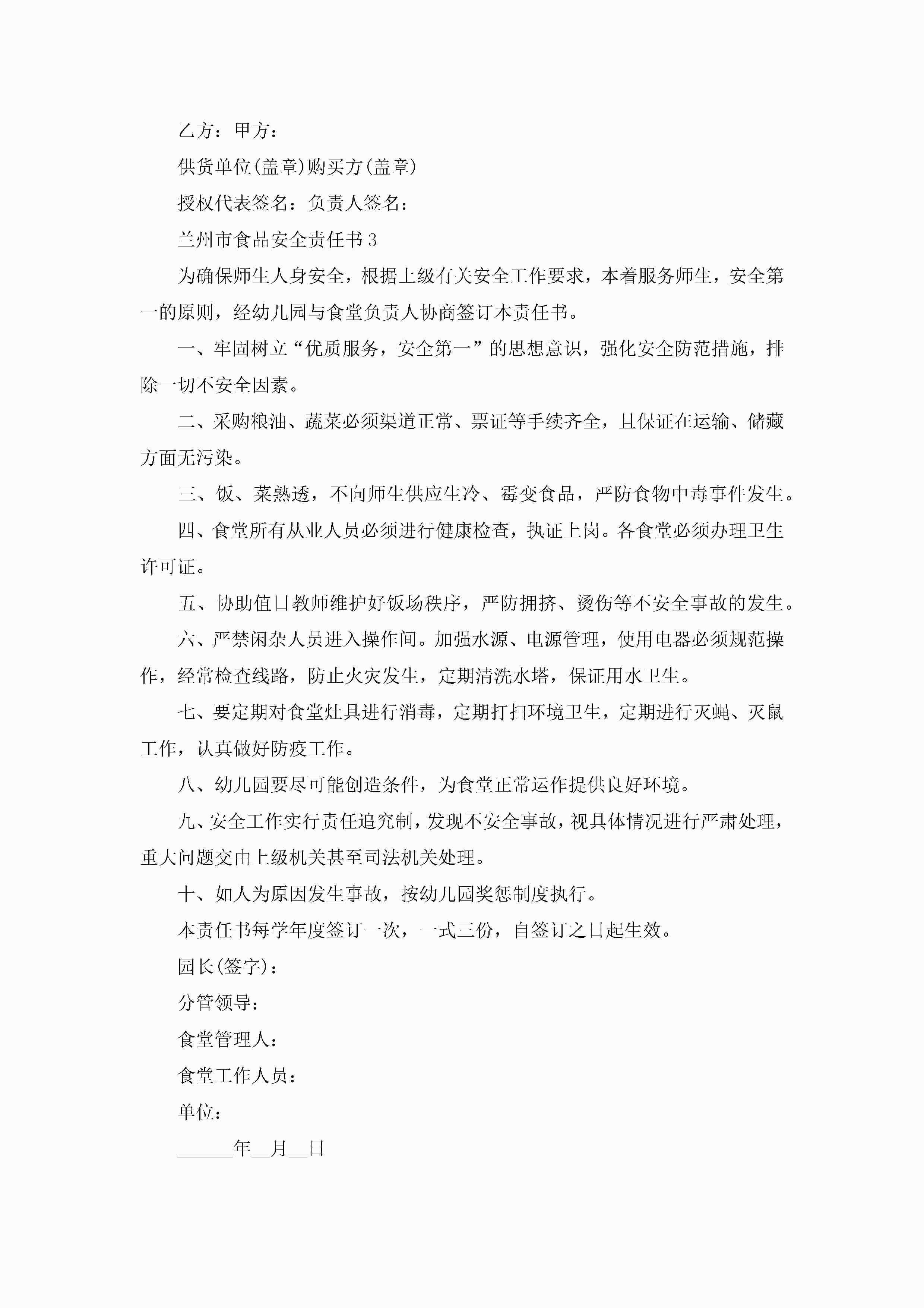 关于兰州市食品安全责任书5篇jugei3月23日 01:40发布关注299 关于兰州市食品安全责任书5篇此内容为付费资源,请付费后查看¥10.9 单篇文档限时特惠¥15个人会员开通企业会员开通立即下载无需登陆!可直接快捷下载单个模板付费资源© 版权声明THE ENDWord模板# 实用文档# 实用模板# 信函模板# 责任书 如有问题,可点击最底部“联系我们”联系客服 分享QQ空间微博QQ好友海报分享复制链接收藏