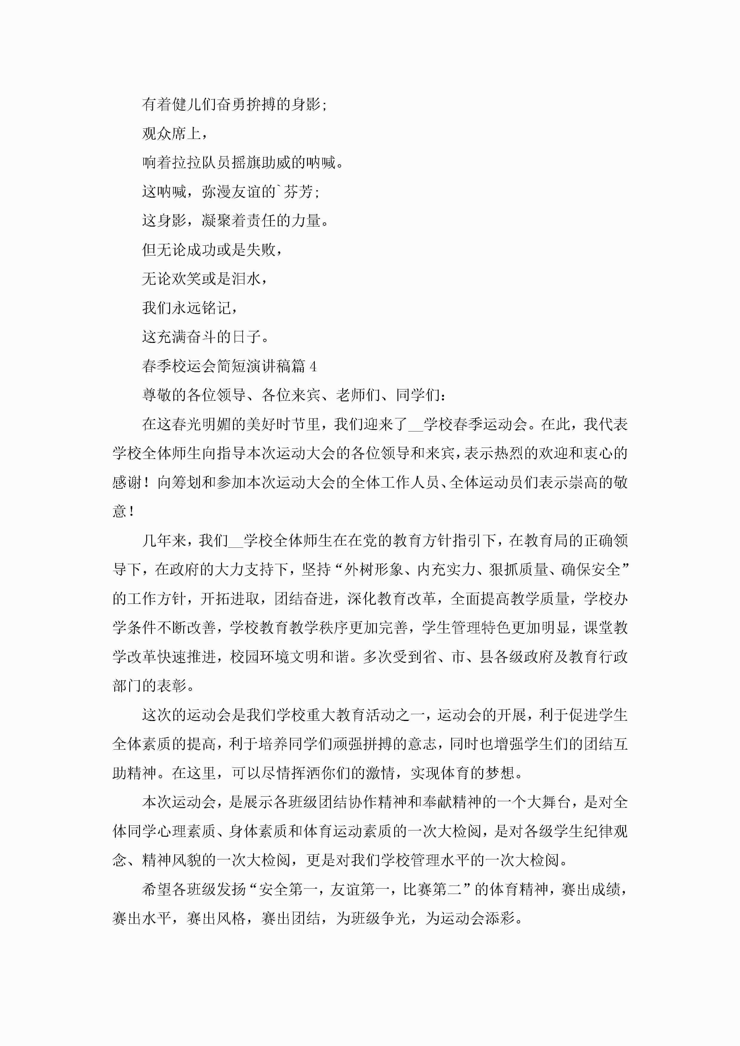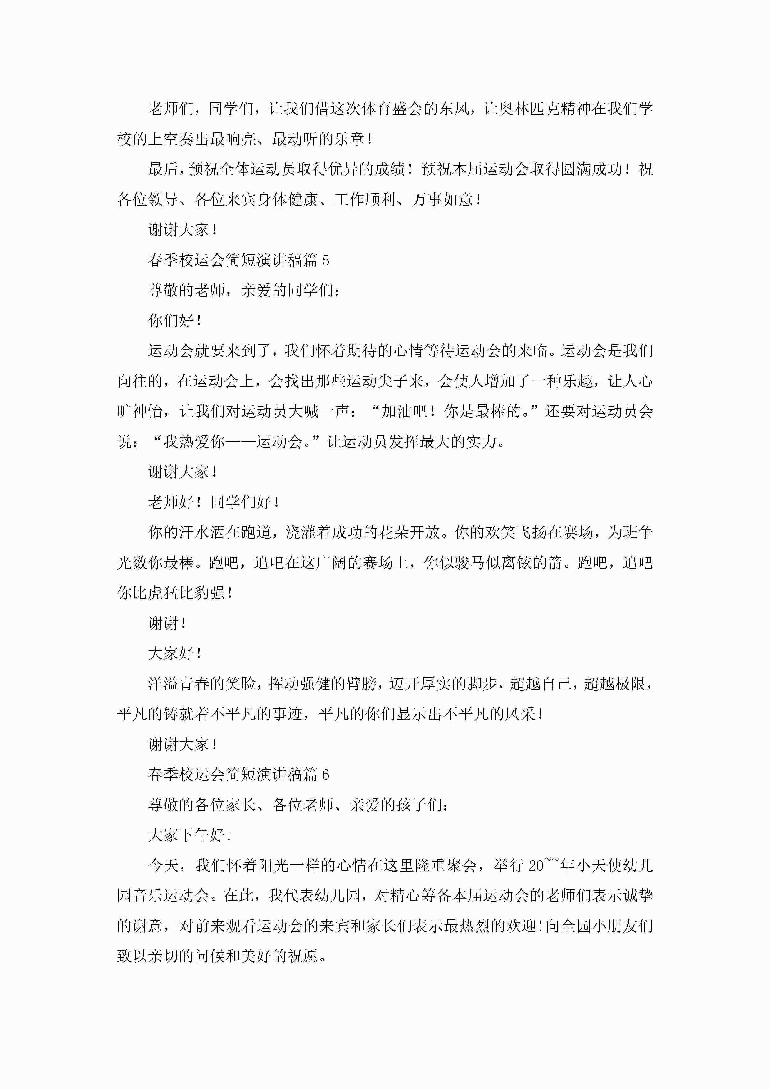 春季校运会简短演讲稿6篇jugei3月23日 01:40发布关注198 春季校运会简短演讲稿6篇此内容为付费资源,请付费后查看¥10.9 单篇文档限时特惠¥15个人会员开通企业会员开通立即下载无需登陆!可直接快捷下载单个模板付费资源© 版权声明THE ENDWord模板# 实用文档# 演讲稿# 经典演讲稿# 春季校运会简短演讲稿 如有问题,可点击最底部“联系我们”联系客服 分享QQ空间微博QQ好友海报分享复制链接收藏