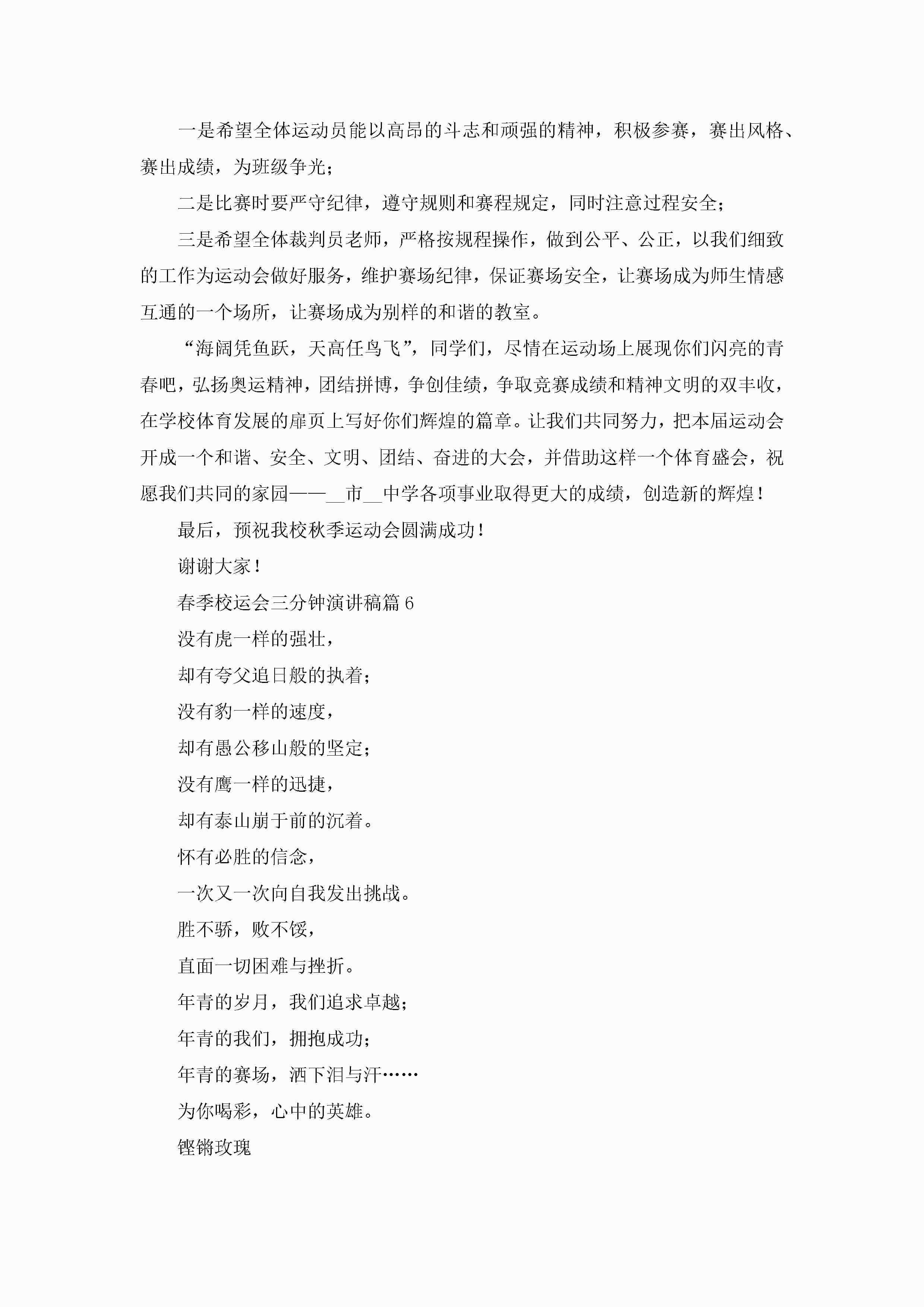 春季校运会三分钟演讲稿6篇jugei3月23日 01:40发布关注198 春季校运会三分钟演讲稿6篇此内容为付费资源,请付费后查看¥10.9 单篇文档限时特惠¥15个人会员开通企业会员开通立即下载无需登陆!可直接快捷下载单个模板付费资源© 版权声明THE ENDWord模板# 实用文档# 演讲稿# 经典演讲稿# 春季校运会三分钟演讲稿 如有问题,可点击最底部“联系我们”联系客服 分享QQ空间微博QQ好友海报分享复制链接收藏