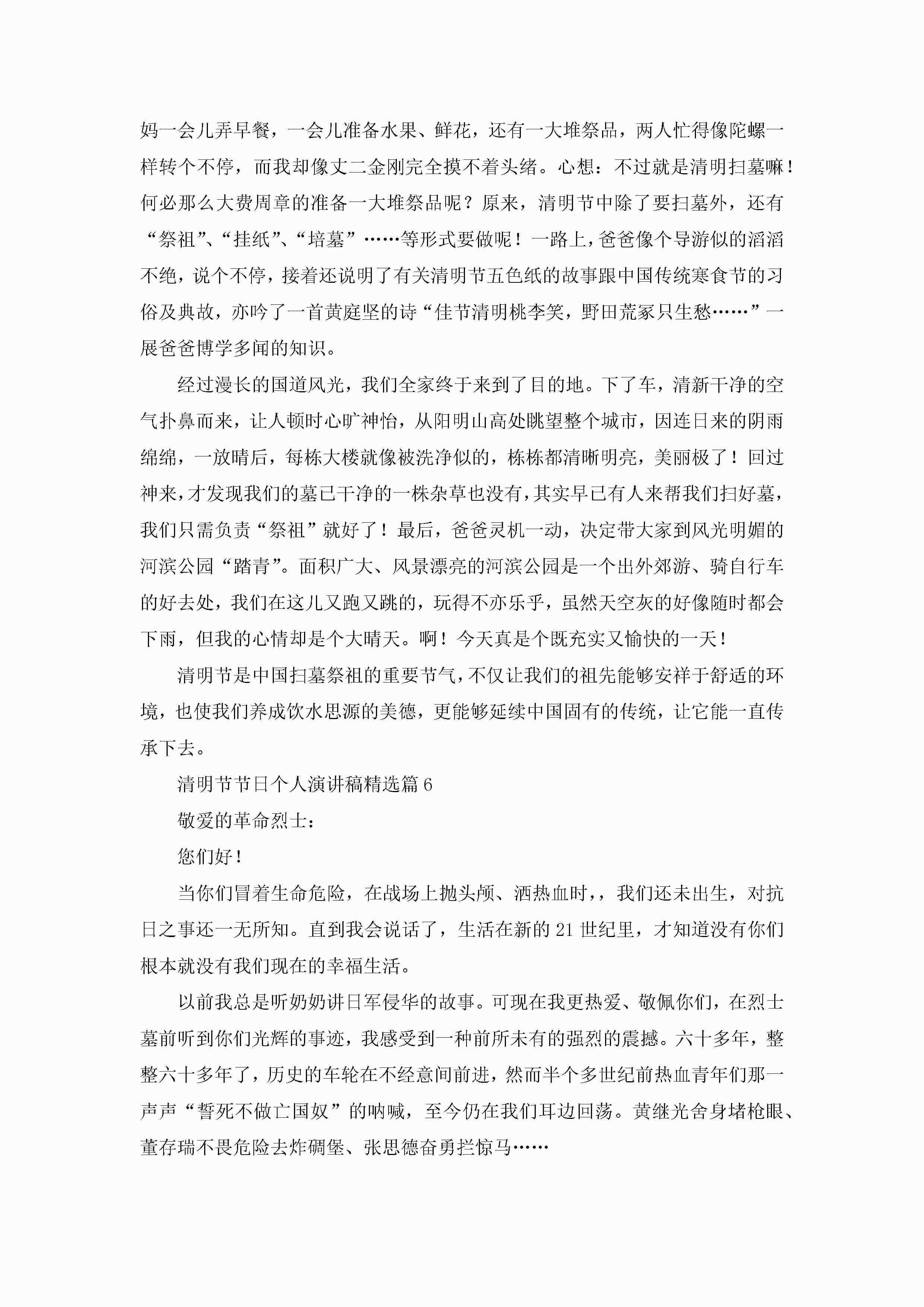 清明节节日个人演讲稿标准内容7篇jugei3月23日 01:40发布关注241 清明节节日个人演讲稿标准内容7篇此内容为付费资源,请付费后查看¥10.9 单篇文档限时特惠¥15个人会员开通企业会员开通立即下载无需登陆!可直接快捷下载单个模板付费资源© 版权声明THE ENDWord模板# 实用文档# 演讲稿# 经典演讲稿# 清明节节日个人演讲稿标准内容 如有问题,可点击最底部“联系我们”联系客服 分享QQ空间微博QQ好友海报分享复制链接收藏
