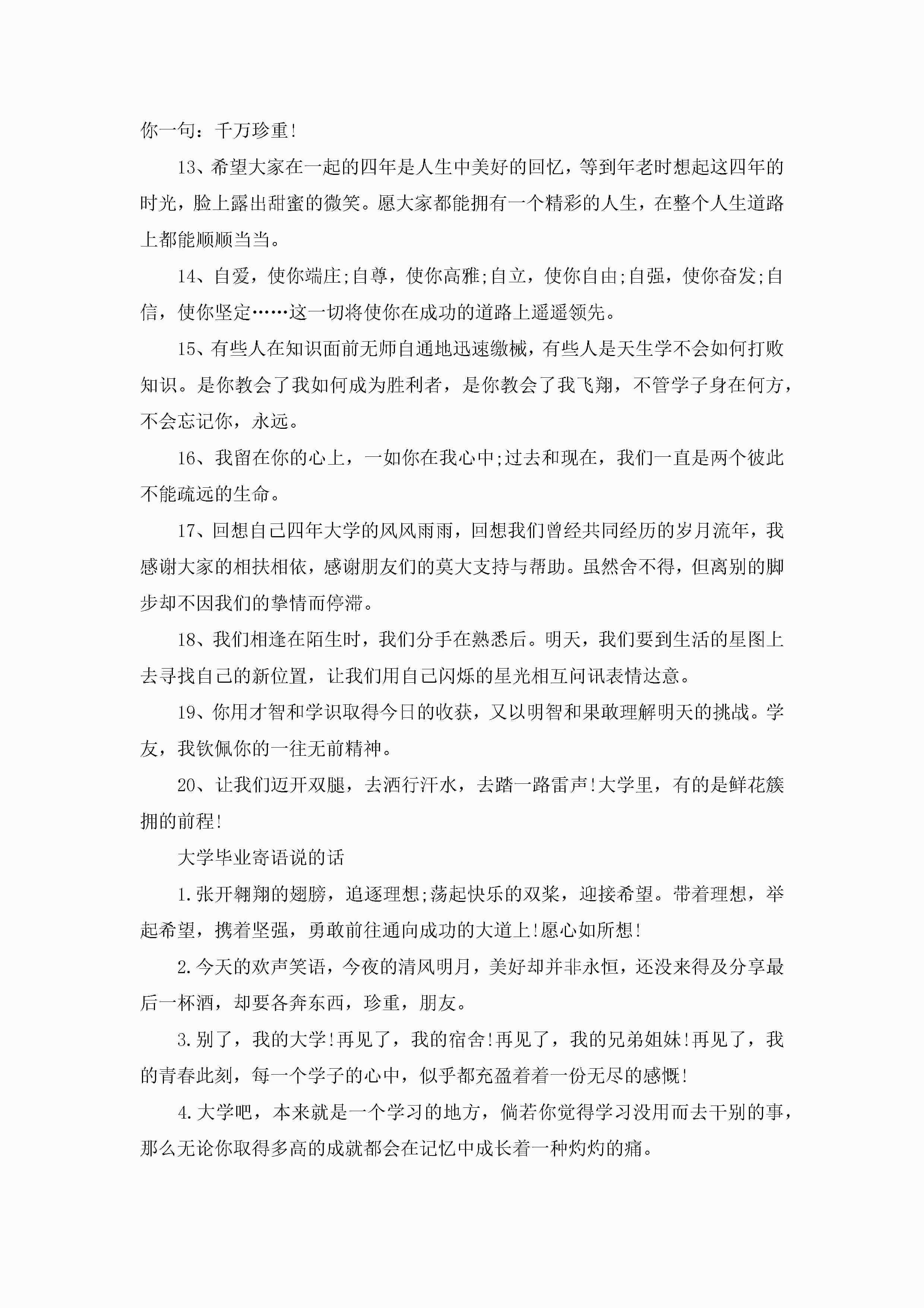 毕业赠言大全(100句)jugei3月23日 01:40发布关注199 毕业赠言大全(100句)此内容为付费资源,请付费后查看¥10.9 单篇文档限时特惠¥15个人会员开通企业会员开通立即下载无需登陆!可直接快捷下载单个模板付费资源© 版权声明THE ENDWord模板# 实用文档# 演讲稿# 经典演讲稿# 毕业赠言大全100句 如有问题,可点击最底部“联系我们”联系客服 分享QQ空间微博QQ好友海报分享复制链接收藏