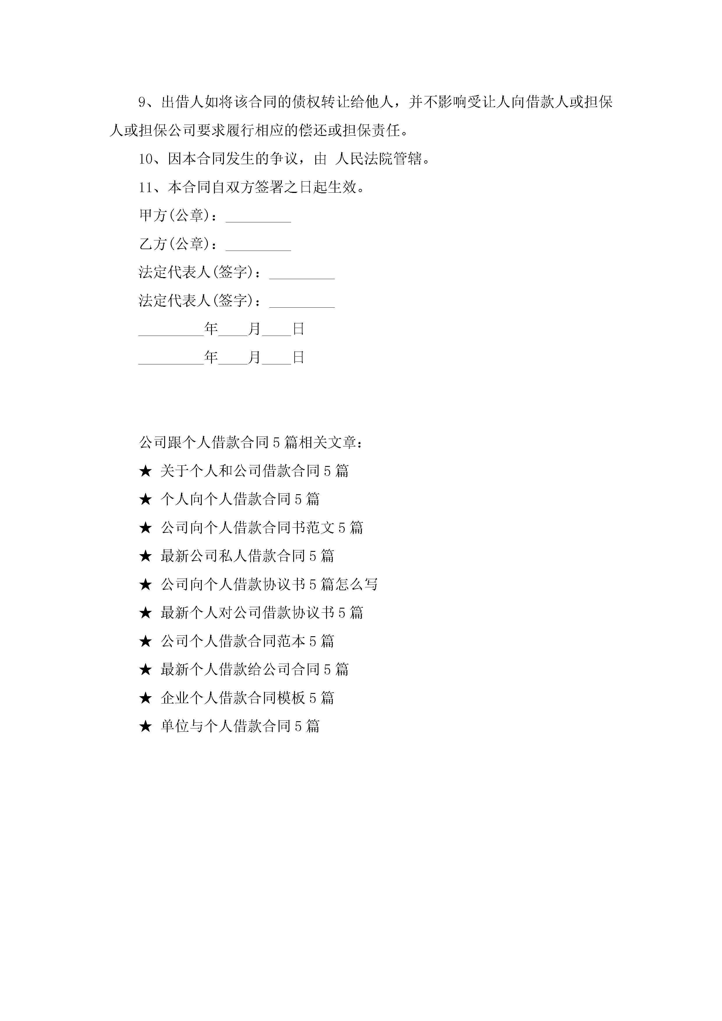 公司跟个人借款合同5篇范文jugei3月23日 01:40发布关注194 公司跟个人借款合同5篇范文此内容为付费资源,请付费后查看¥10.9 单篇文档限时特惠¥15个人会员开通企业会员开通立即下载无需登陆!可直接快捷下载单个模板付费资源© 版权声明THE ENDWord模板# 实用文档# 实用模板# 合同模板# 借款合同 如有问题,可点击最底部“联系我们”联系客服 分享QQ空间微博QQ好友海报分享复制链接收藏