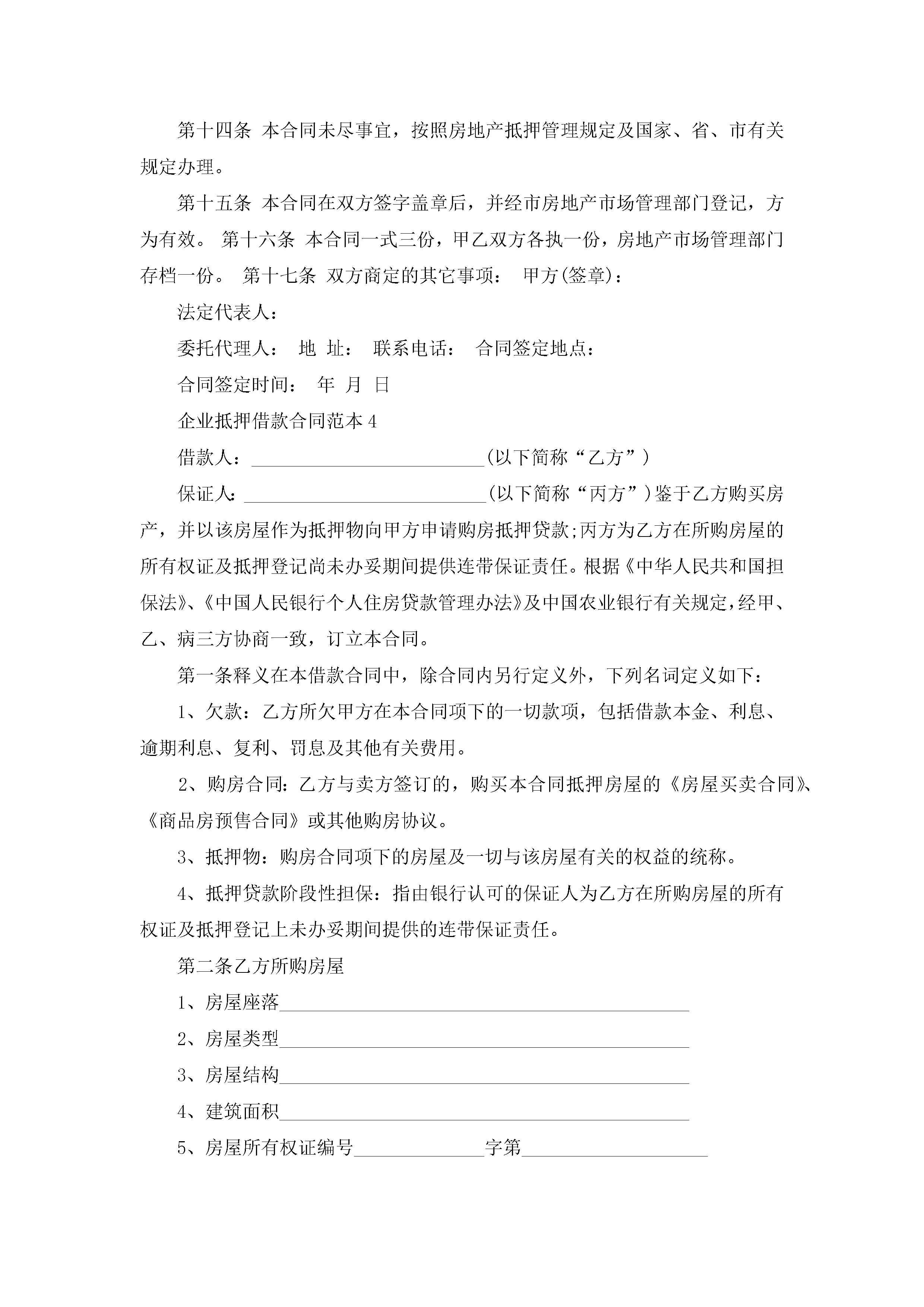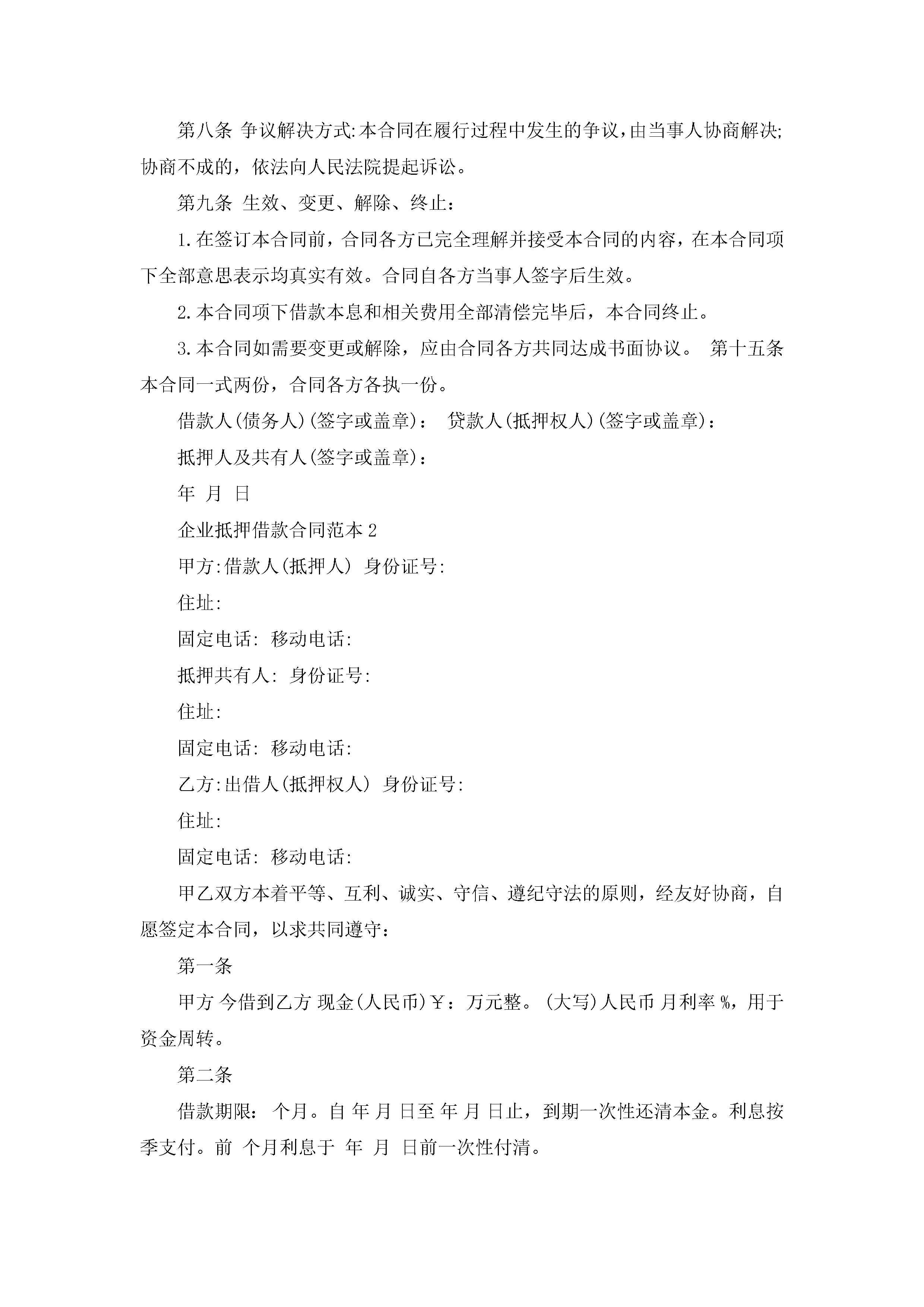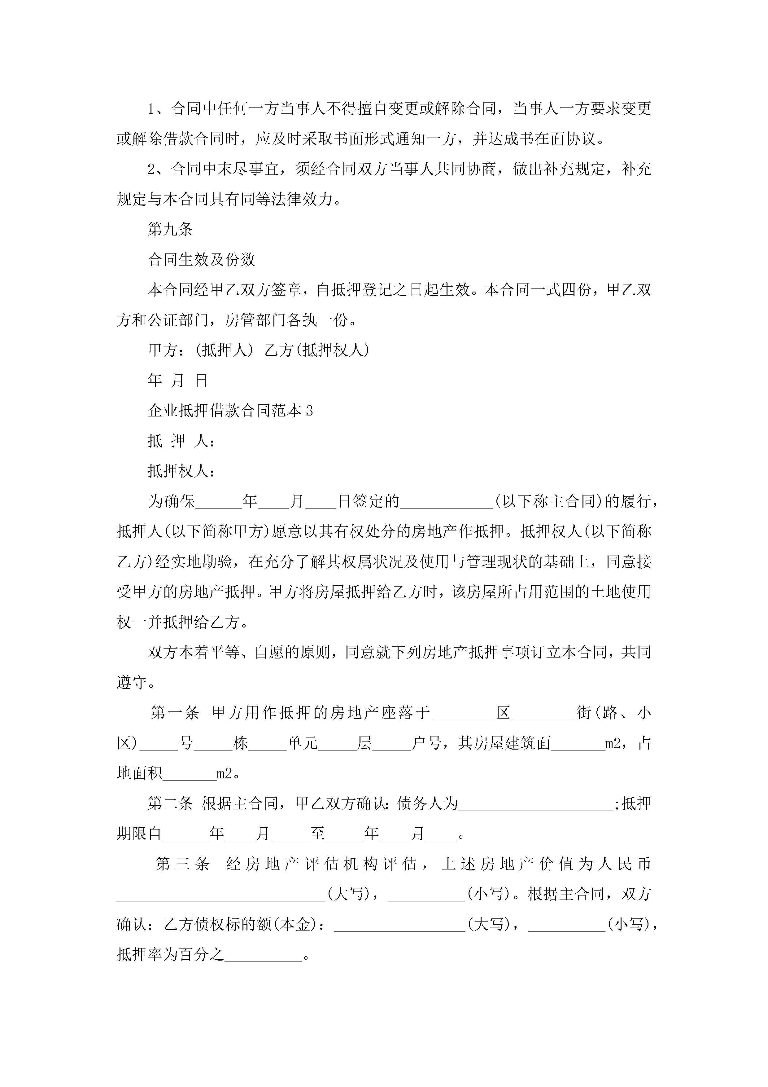 关于企业抵押借款合同范本5篇jugei3月23日 01:40发布关注218 关于企业抵押借款合同范本5篇此内容为付费资源,请付费后查看¥10.9 单篇文档限时特惠¥15个人会员开通企业会员开通立即下载无需登陆!可直接快捷下载单个模板付费资源© 版权声明THE ENDWord模板# 实用文档# 实用模板# 合同模板# 借款合同 如有问题,可点击最底部“联系我们”联系客服 分享QQ空间微博QQ好友海报分享复制链接收藏