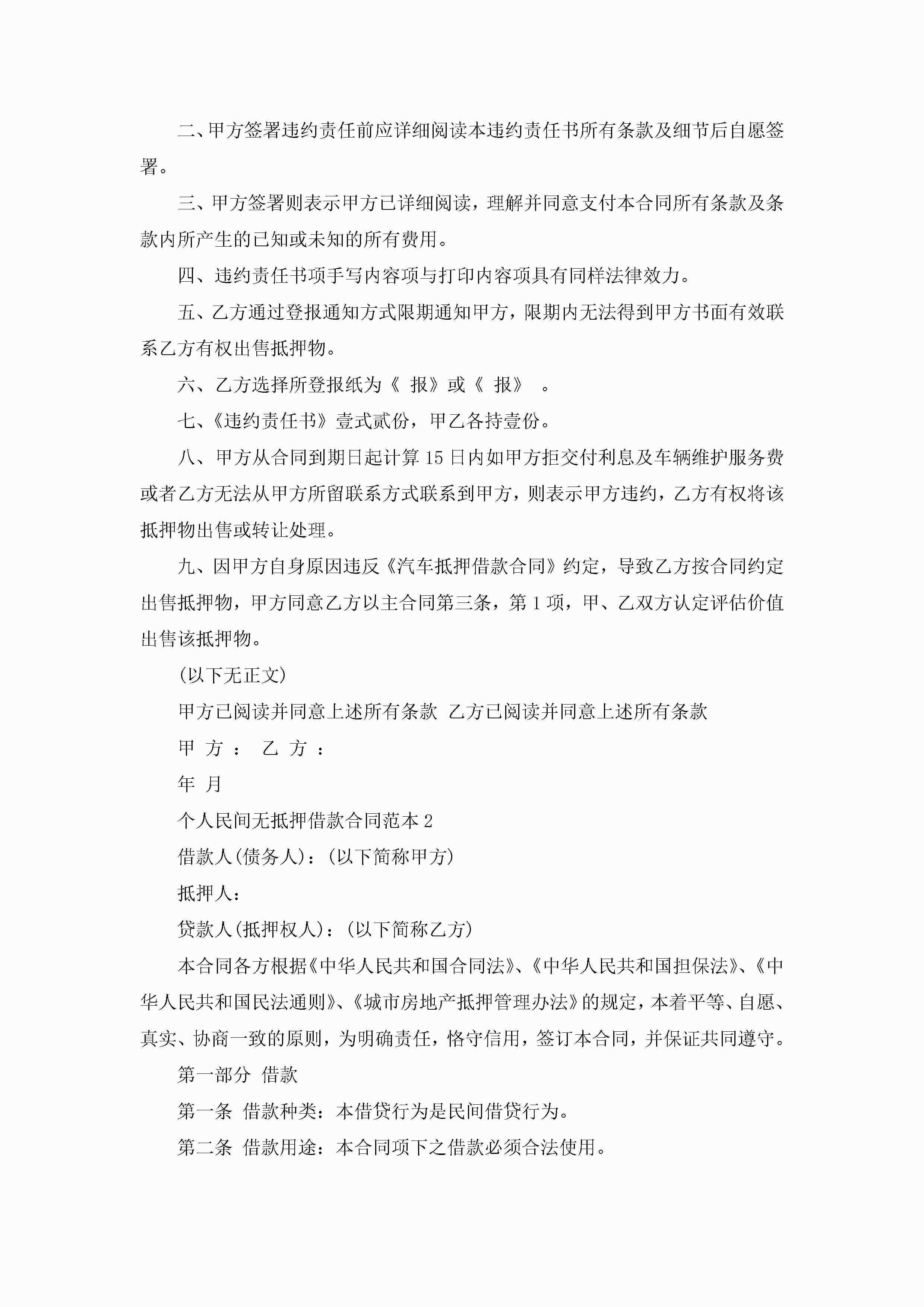 个人民间无抵押借款合同范本5篇jugei3月23日 01:40发布关注205 个人民间无抵押借款合同范本5篇此内容为付费资源,请付费后查看¥10.9 单篇文档限时特惠¥15个人会员开通企业会员开通立即下载无需登陆!可直接快捷下载单个模板付费资源© 版权声明THE ENDWord模板# 实用文档# 实用模板# 合同模板# 借款合同 如有问题,可点击最底部“联系我们”联系客服 分享QQ空间微博QQ好友海报分享复制链接收藏