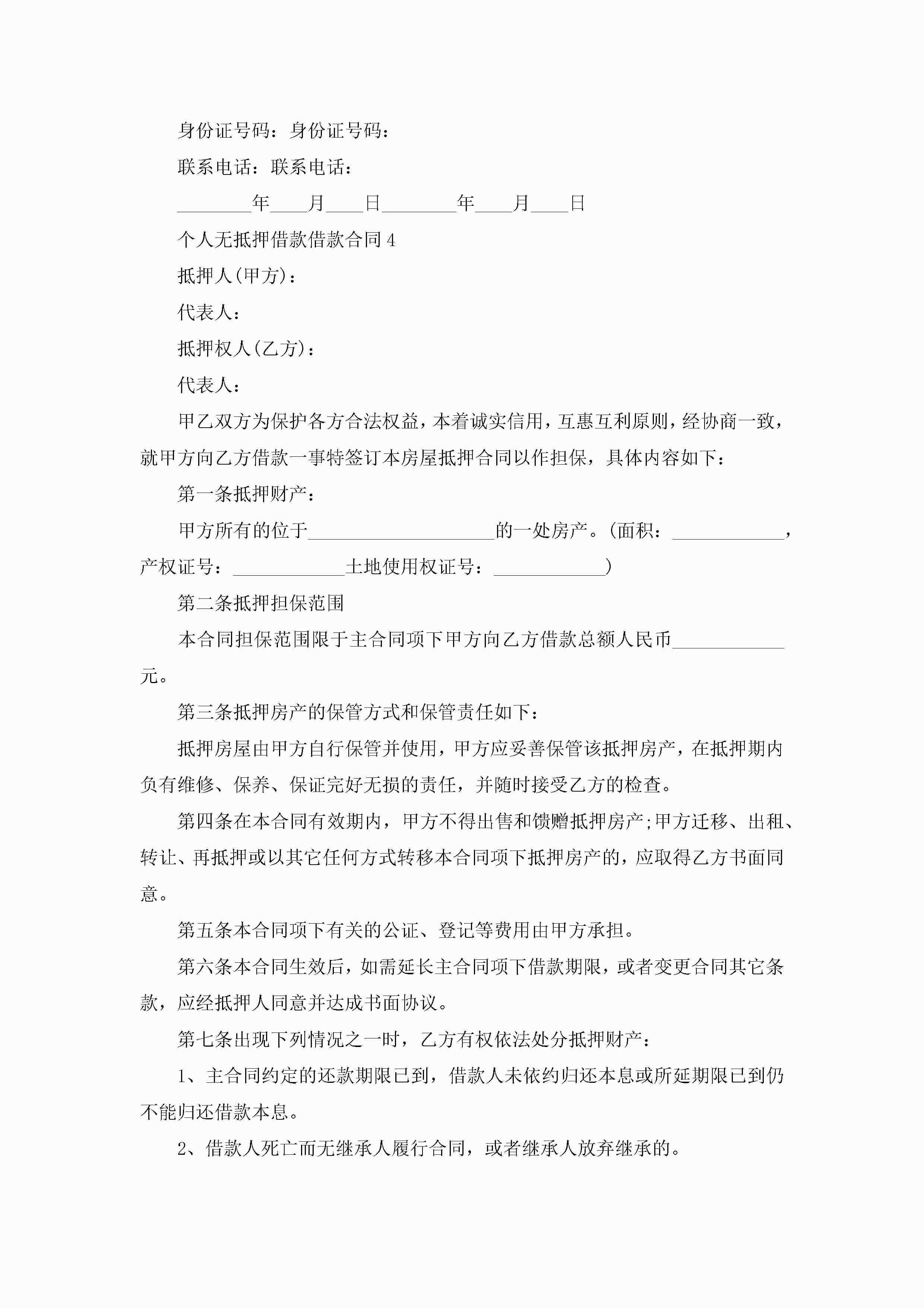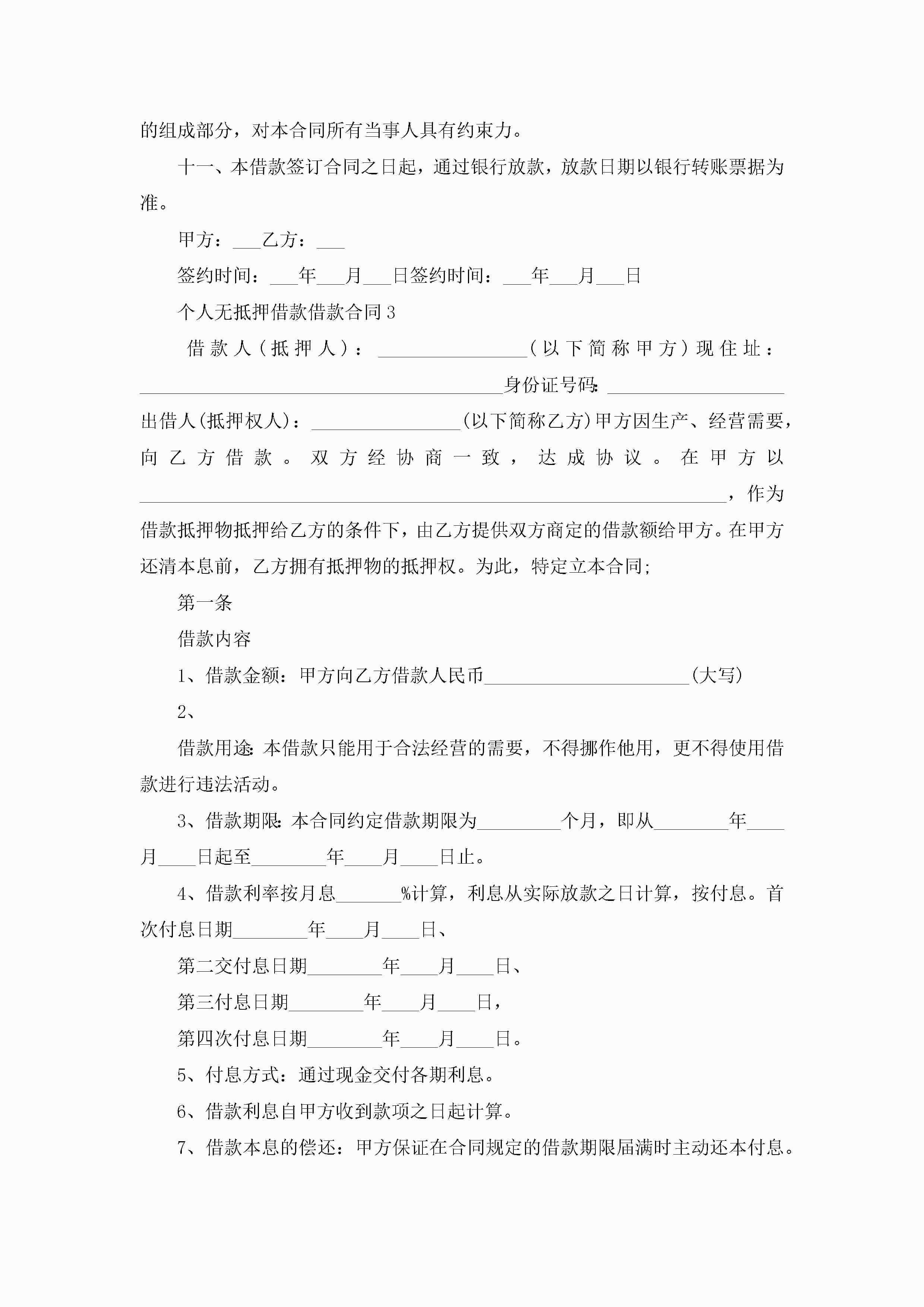 个人无抵押借款借款合同5篇jugei3月23日 01:40发布关注274 个人无抵押借款借款合同5篇此内容为付费资源,请付费后查看¥10.9 单篇文档限时特惠¥15个人会员开通企业会员开通立即下载无需登陆!可直接快捷下载单个模板付费资源© 版权声明THE ENDWord模板# 实用文档# 实用模板# 合同模板# 借款合同 如有问题,可点击最底部“联系我们”联系客服 分享QQ空间微博QQ好友海报分享复制链接收藏