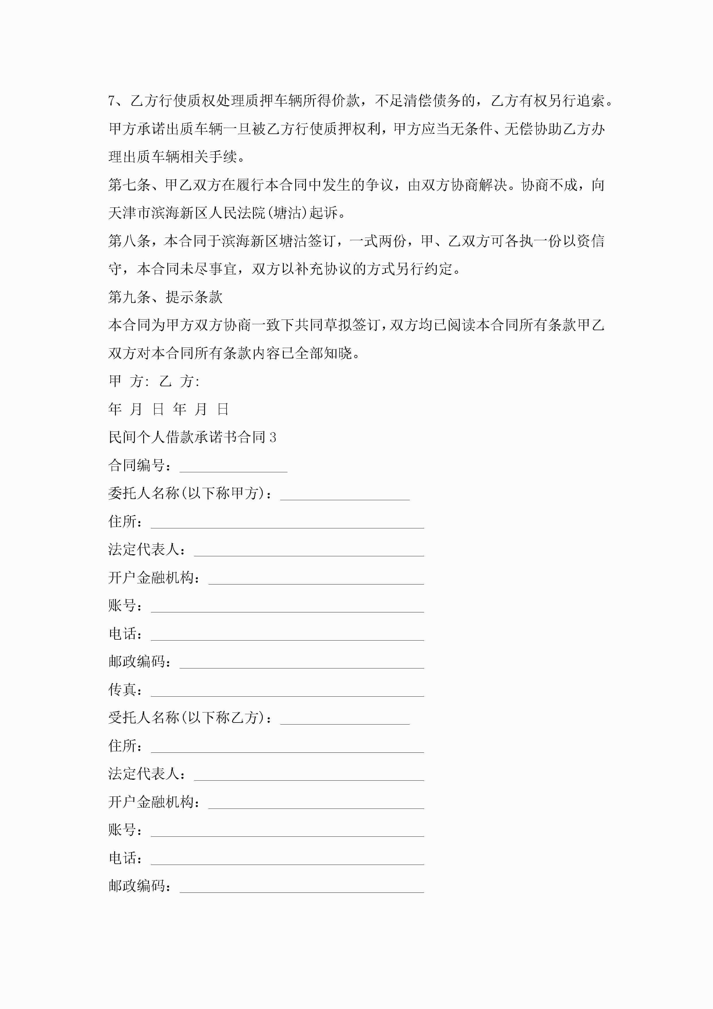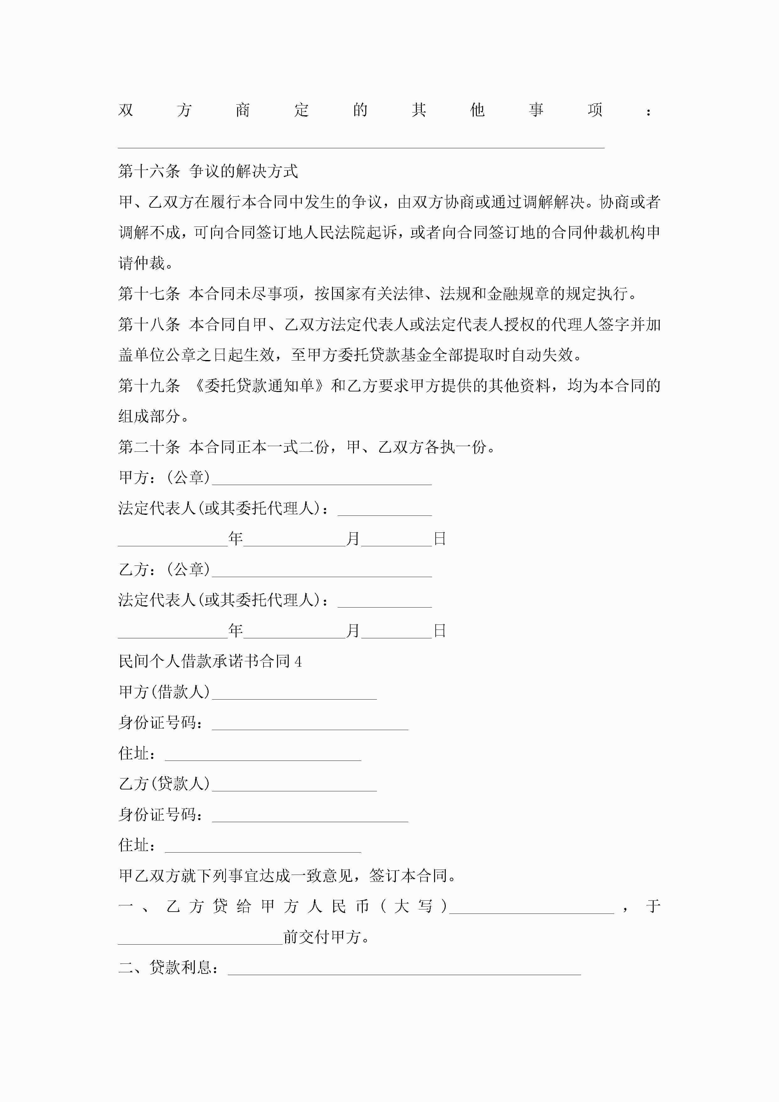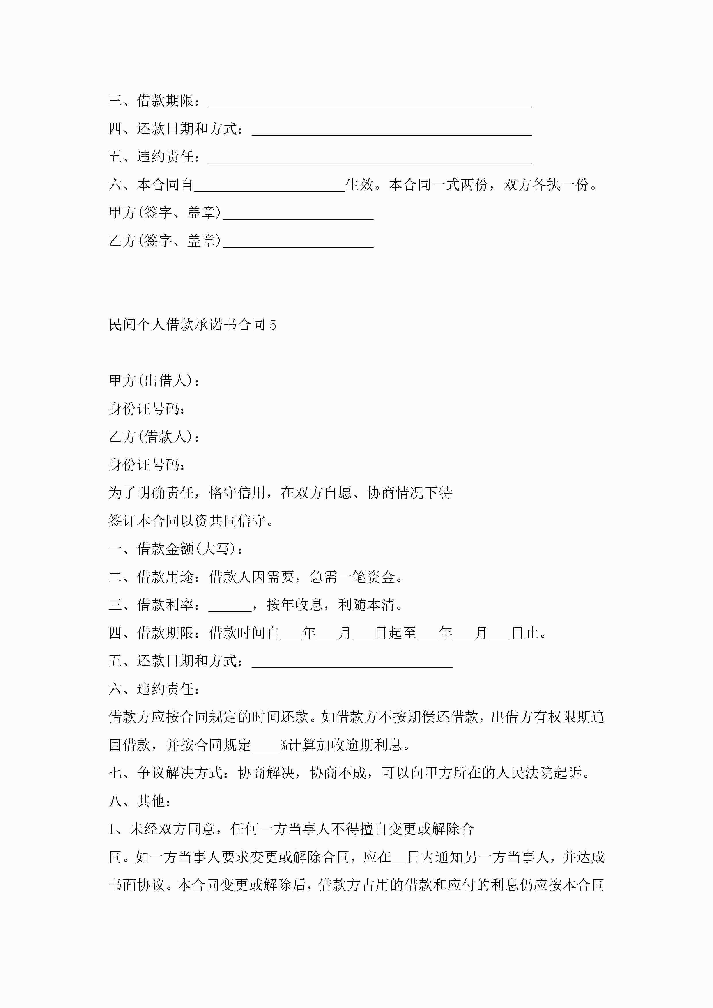 民间个人借款承诺书合同5篇jugei3月23日 01:40发布关注209 民间个人借款承诺书合同5篇此内容为付费资源,请付费后查看¥10.9 单篇文档限时特惠¥15个人会员开通企业会员开通立即下载无需登陆!可直接快捷下载单个模板付费资源© 版权声明THE ENDWord模板# 实用文档# 实用模板# 合同模板# 借款合同 如有问题,可点击最底部“联系我们”联系客服 分享QQ空间微博QQ好友海报分享复制链接收藏