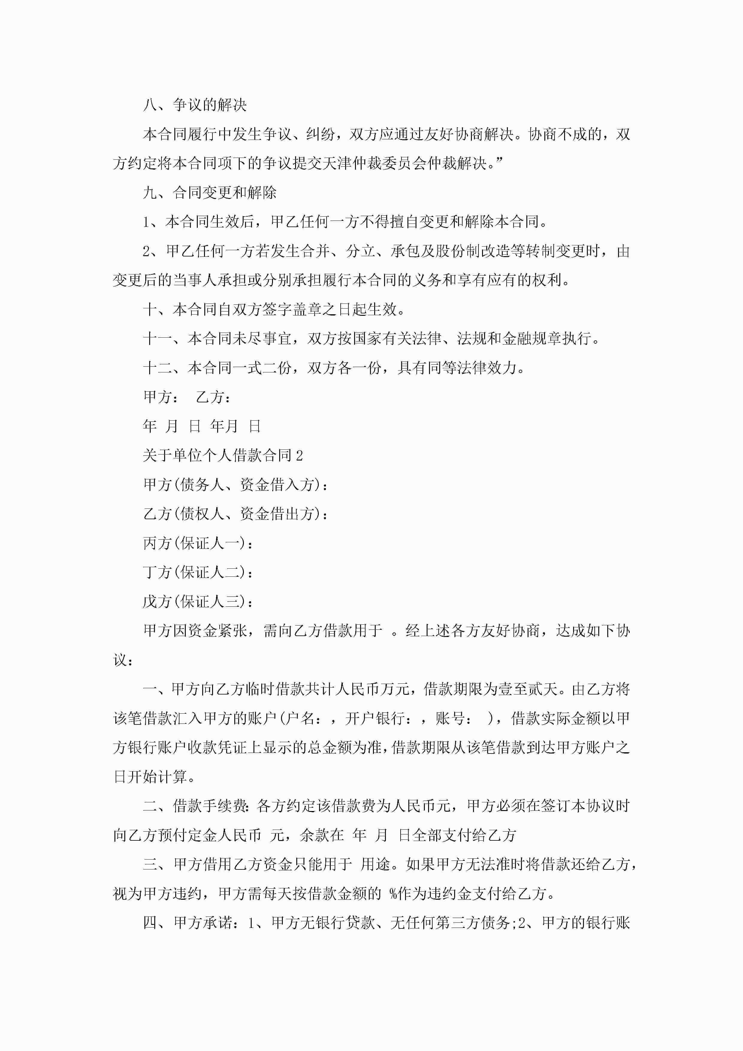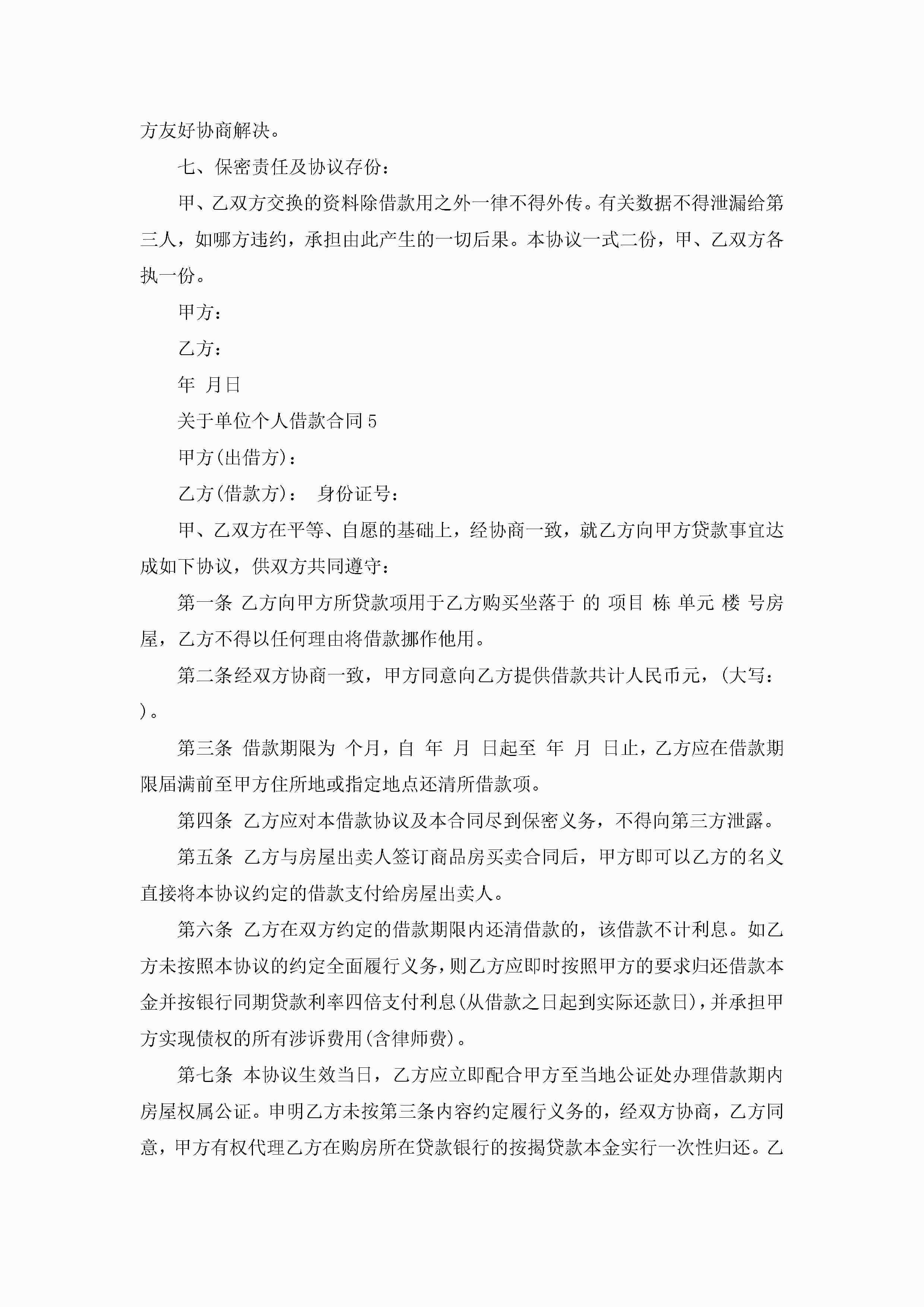 关于单位个人借款合同5篇jugei3月23日 01:40发布关注244 关于单位个人借款合同5篇此内容为付费资源,请付费后查看¥10.9 单篇文档限时特惠¥15个人会员开通企业会员开通立即下载无需登陆!可直接快捷下载单个模板付费资源© 版权声明THE ENDWord模板# 实用文档# 实用模板# 合同模板# 借款合同 如有问题,可点击最底部“联系我们”联系客服 分享QQ空间微博QQ好友海报分享复制链接收藏