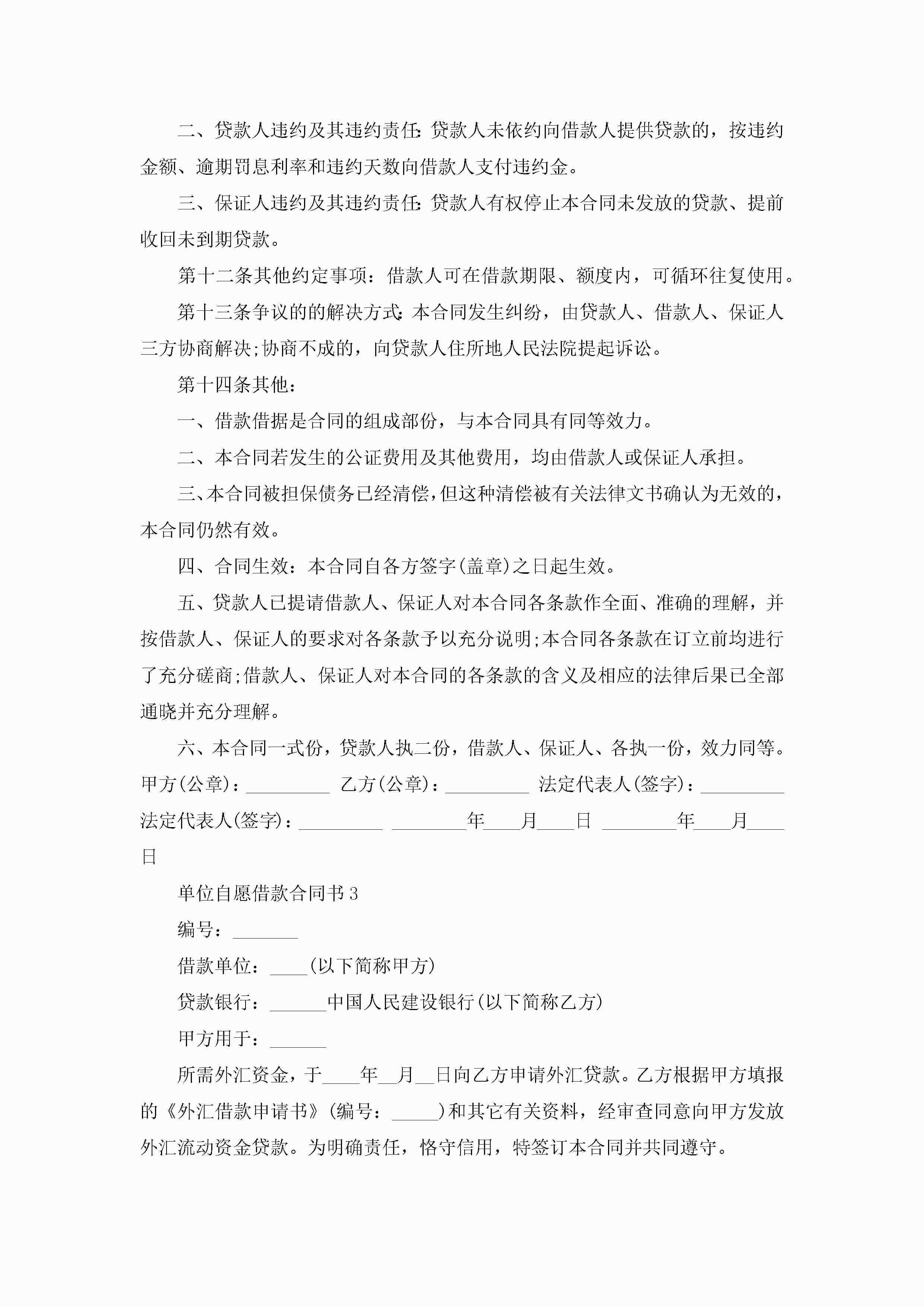 关于单位自愿借款合同书5篇jugei3月23日 01:40发布关注213 关于单位自愿借款合同书5篇此内容为付费资源,请付费后查看¥10.9 单篇文档限时特惠¥15个人会员开通企业会员开通立即下载无需登陆!可直接快捷下载单个模板付费资源© 版权声明THE ENDWord模板# 实用文档# 实用模板# 合同模板# 借款合同 如有问题,可点击最底部“联系我们”联系客服 分享QQ空间微博QQ好友海报分享复制链接收藏