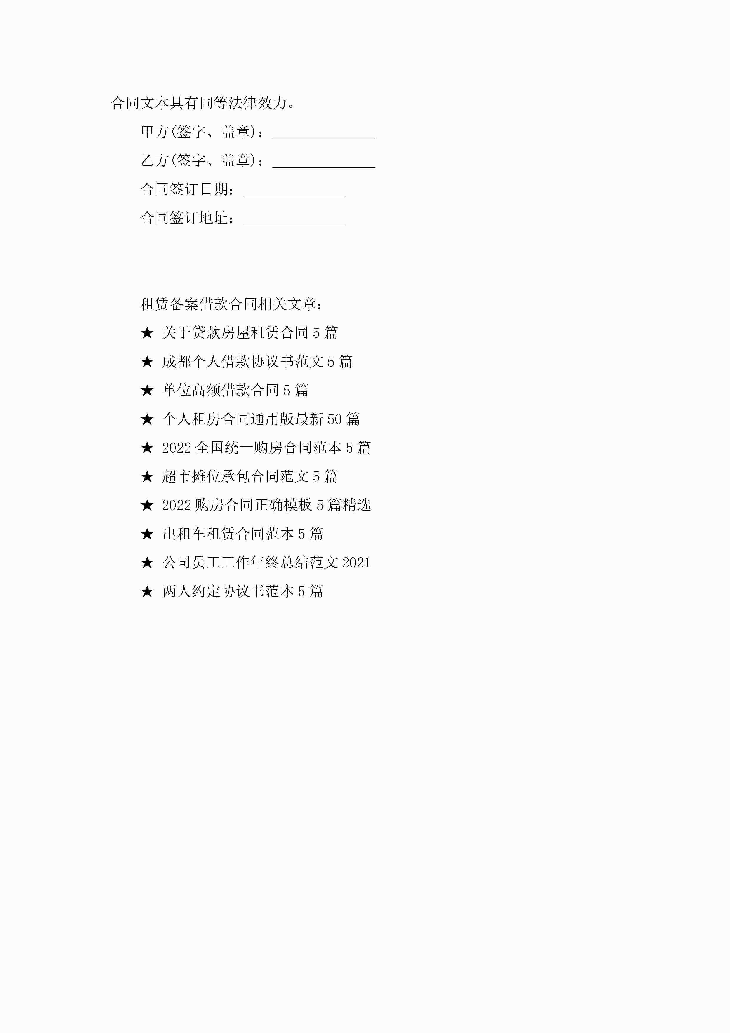 租赁备案借款合同5篇jugei3月23日 01:40发布关注196 租赁备案借款合同5篇此内容为付费资源,请付费后查看¥10.9 单篇文档限时特惠¥15个人会员开通企业会员开通立即下载无需登陆!可直接快捷下载单个模板付费资源© 版权声明THE ENDWord模板# 实用文档# 实用模板# 合同模板# 借款合同 如有问题,可点击最底部“联系我们”联系客服 分享QQ空间微博QQ好友海报分享复制链接收藏